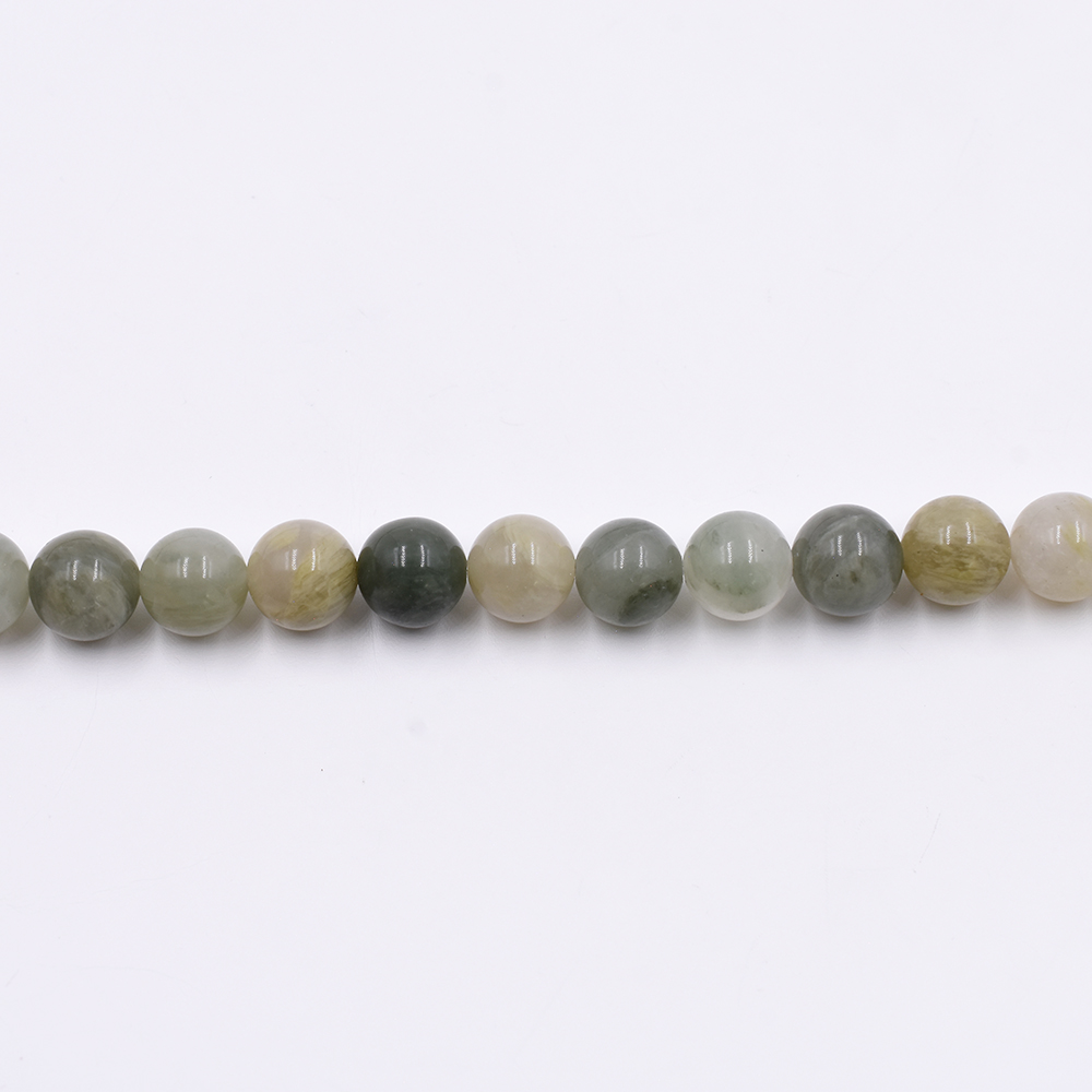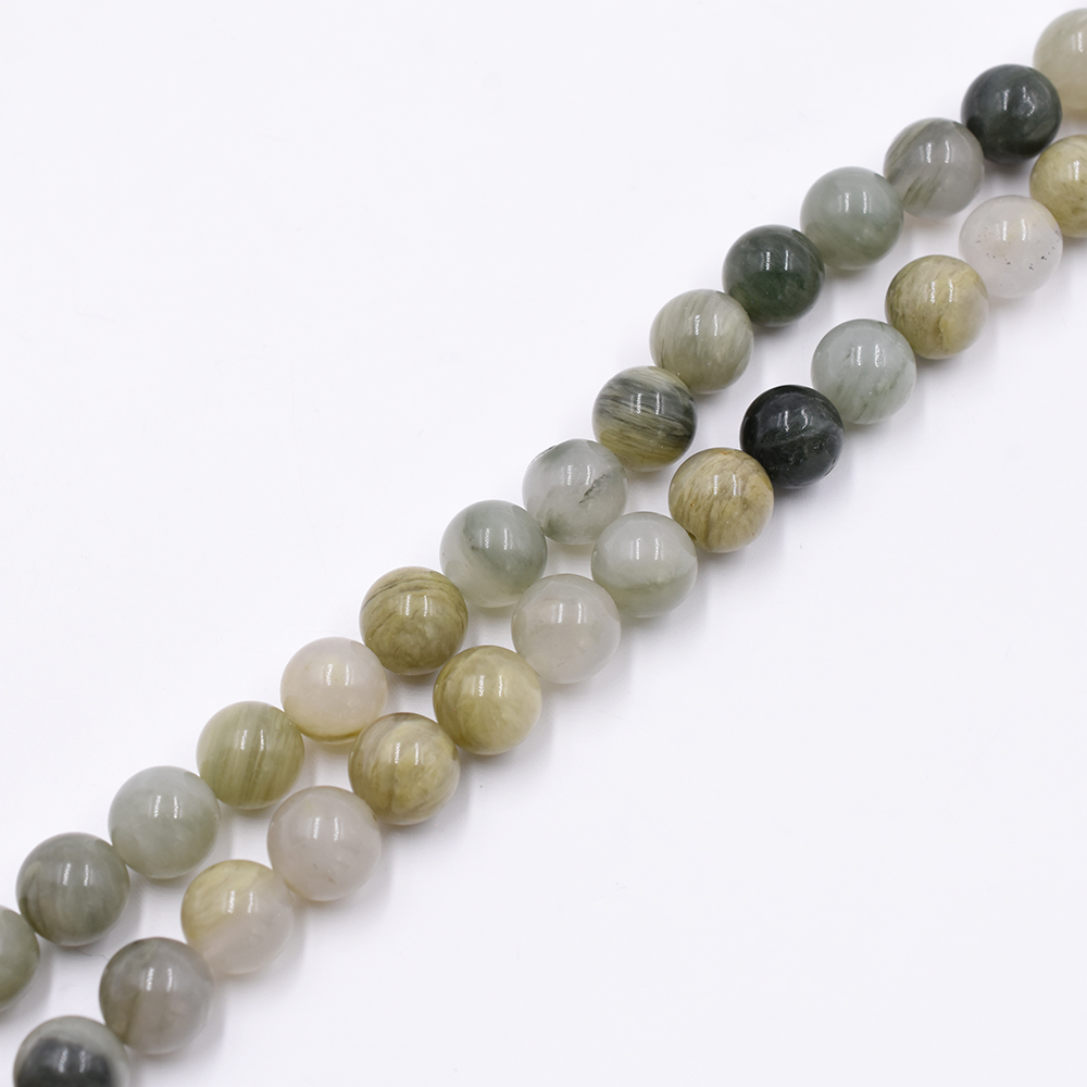 天然石ビーズ ラウンド グリーンルチルクォーツ 10mm 1連(約38ケ)