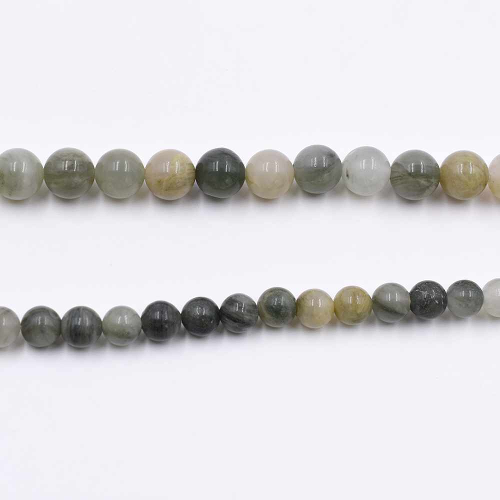 天然石ビーズ ラウンド グリーンルチルクォーツ 12mm 1連(約32ケ)