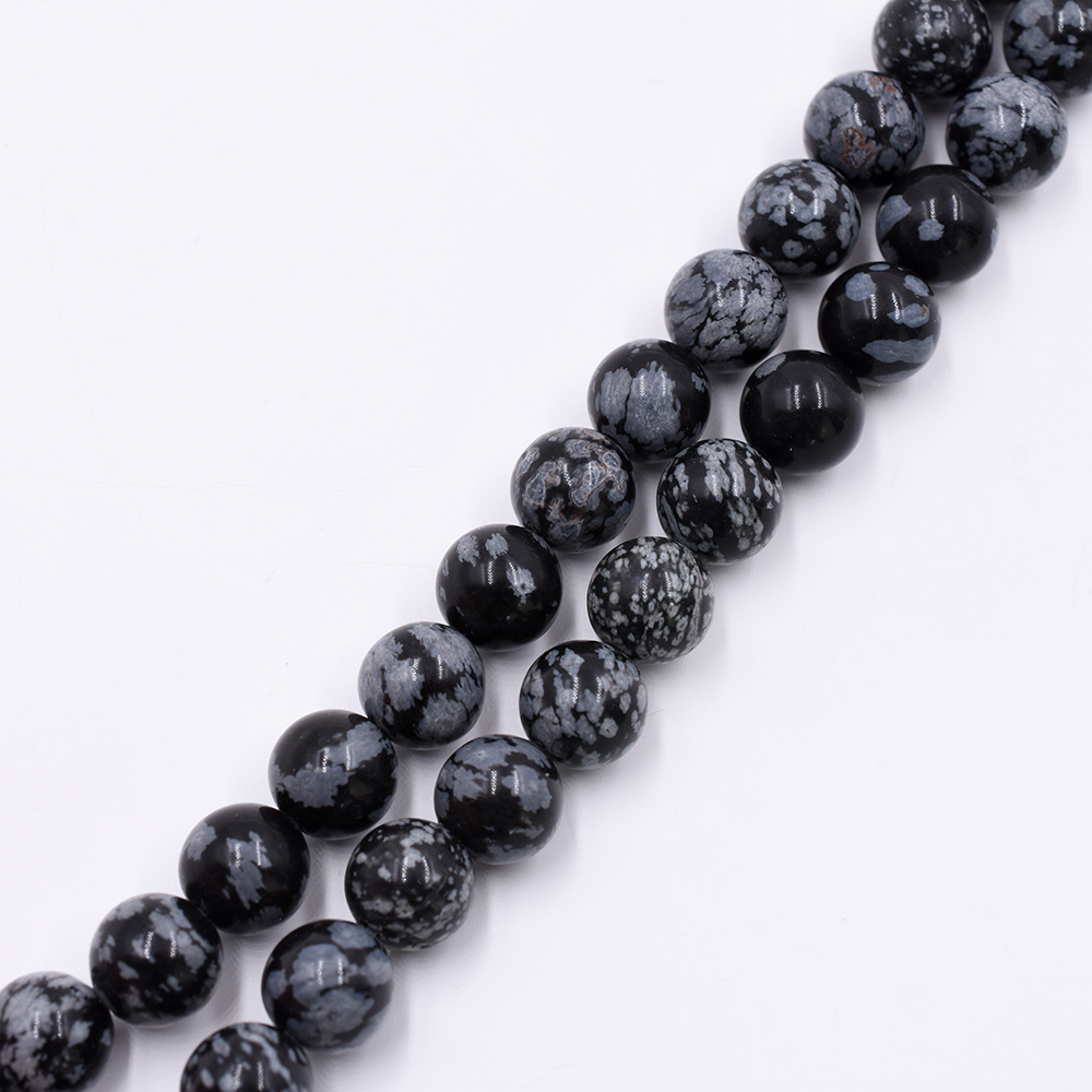 天然石ビーズ ラウンド スノーフレークオブシディアン 12mm 1連(約32ケ)