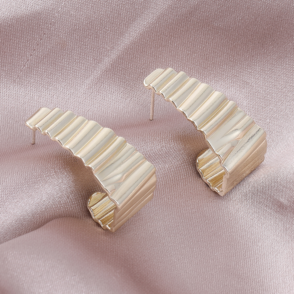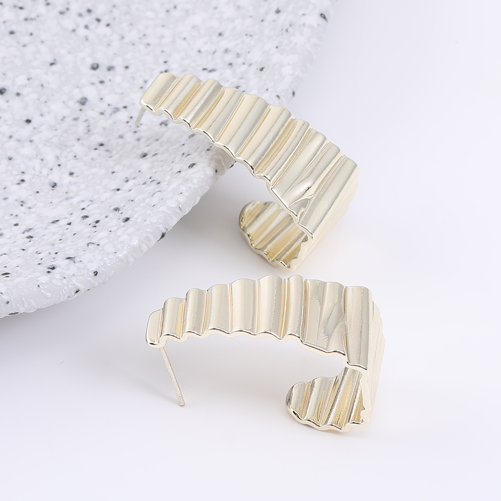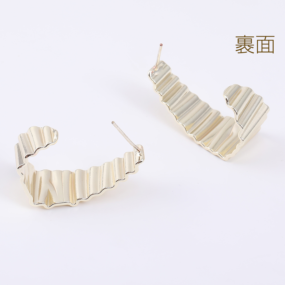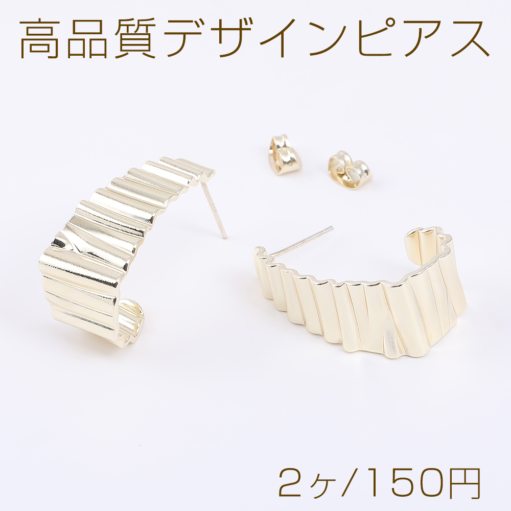 高品質デザインピアス 不規則フープ 12×28mm ライトゴールド(2ヶ)