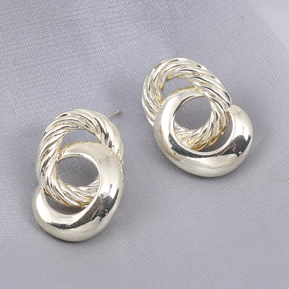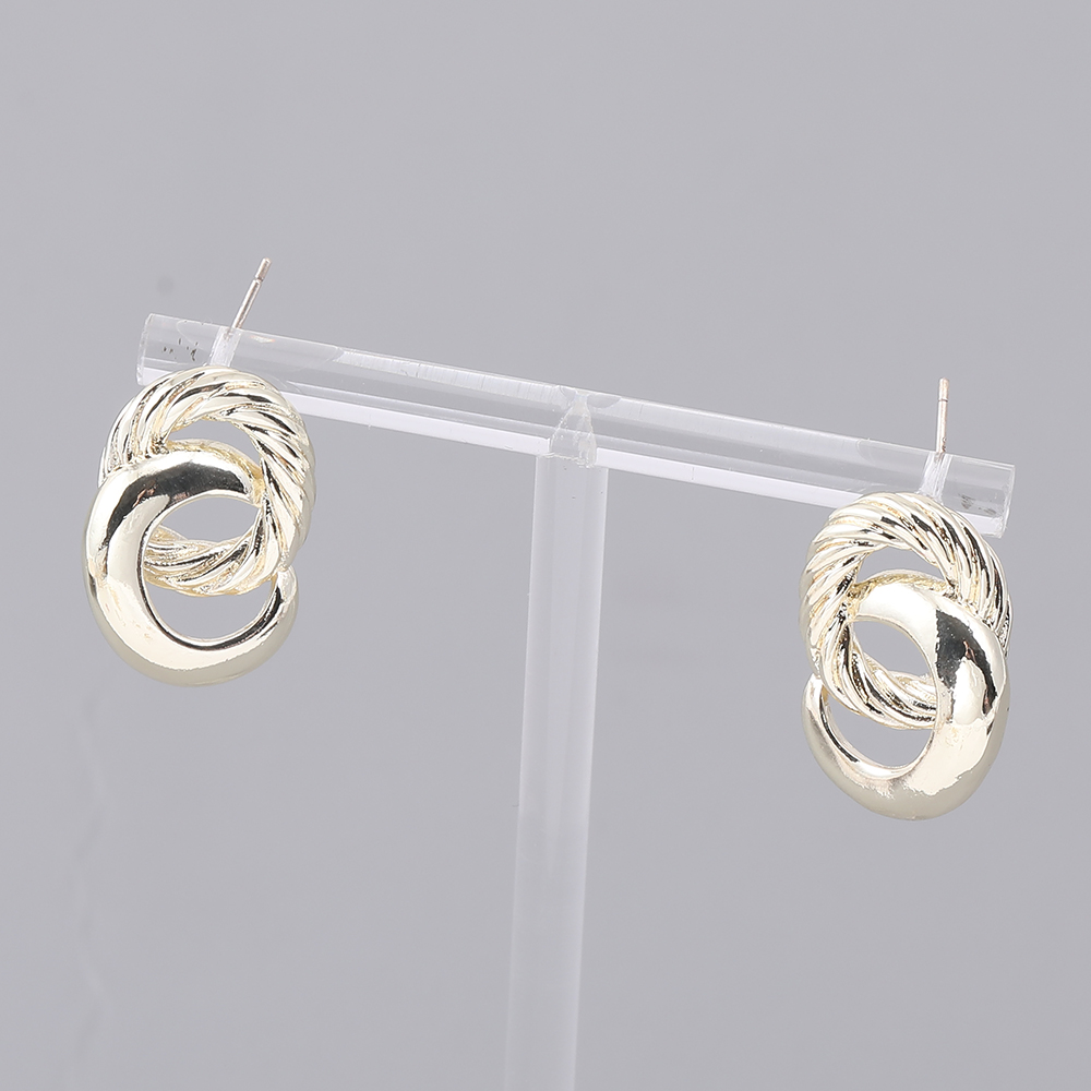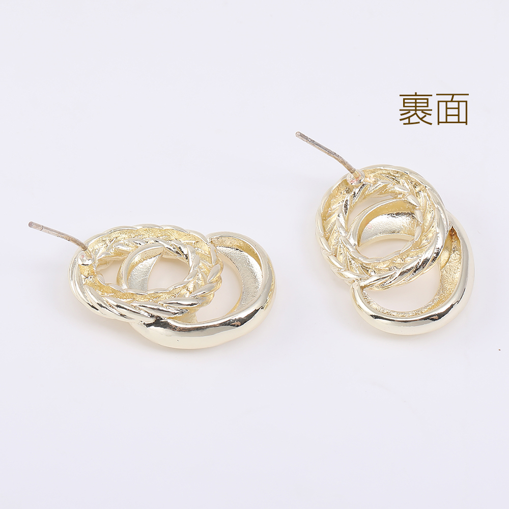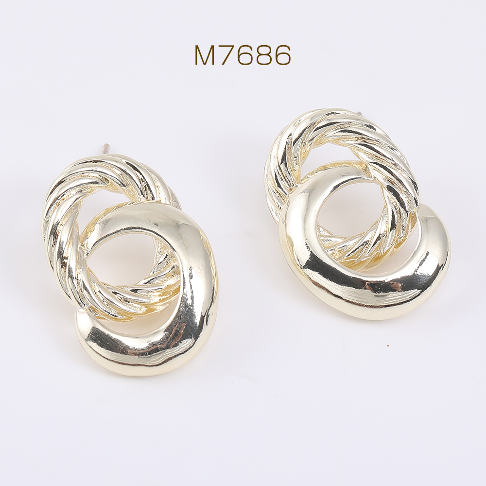 高品質デザインピアス 2連Cフープ 16×24mm ライトゴールド(2ヶ)