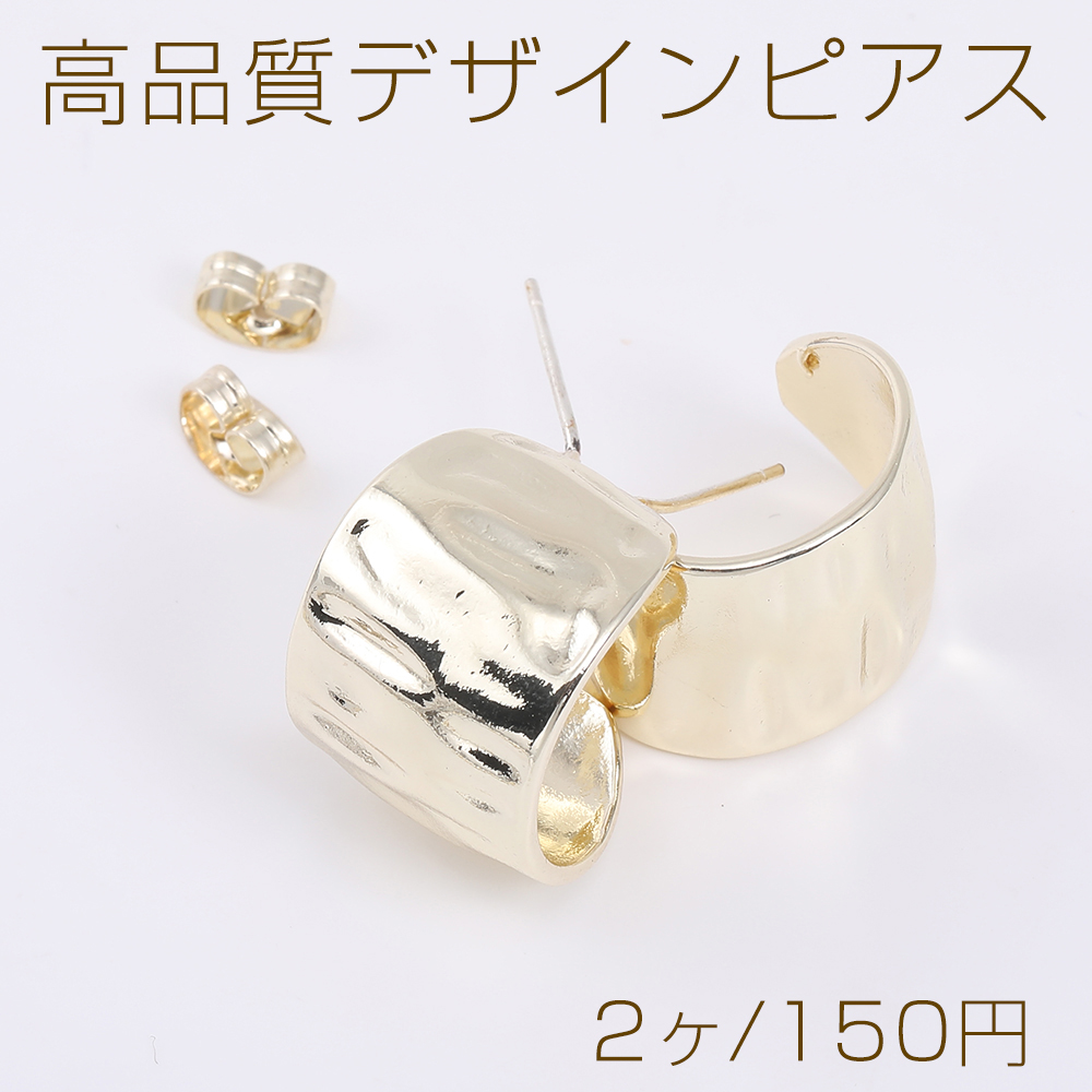 高品質デザインピアス Cフープ 14×18mm ライトゴールド(2ヶ)