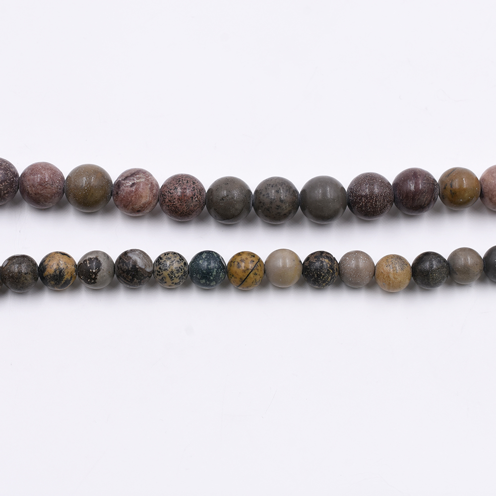 天然石ビーズ ラウンド ピクチャージャスパー 12mm 1連(約32ケ)