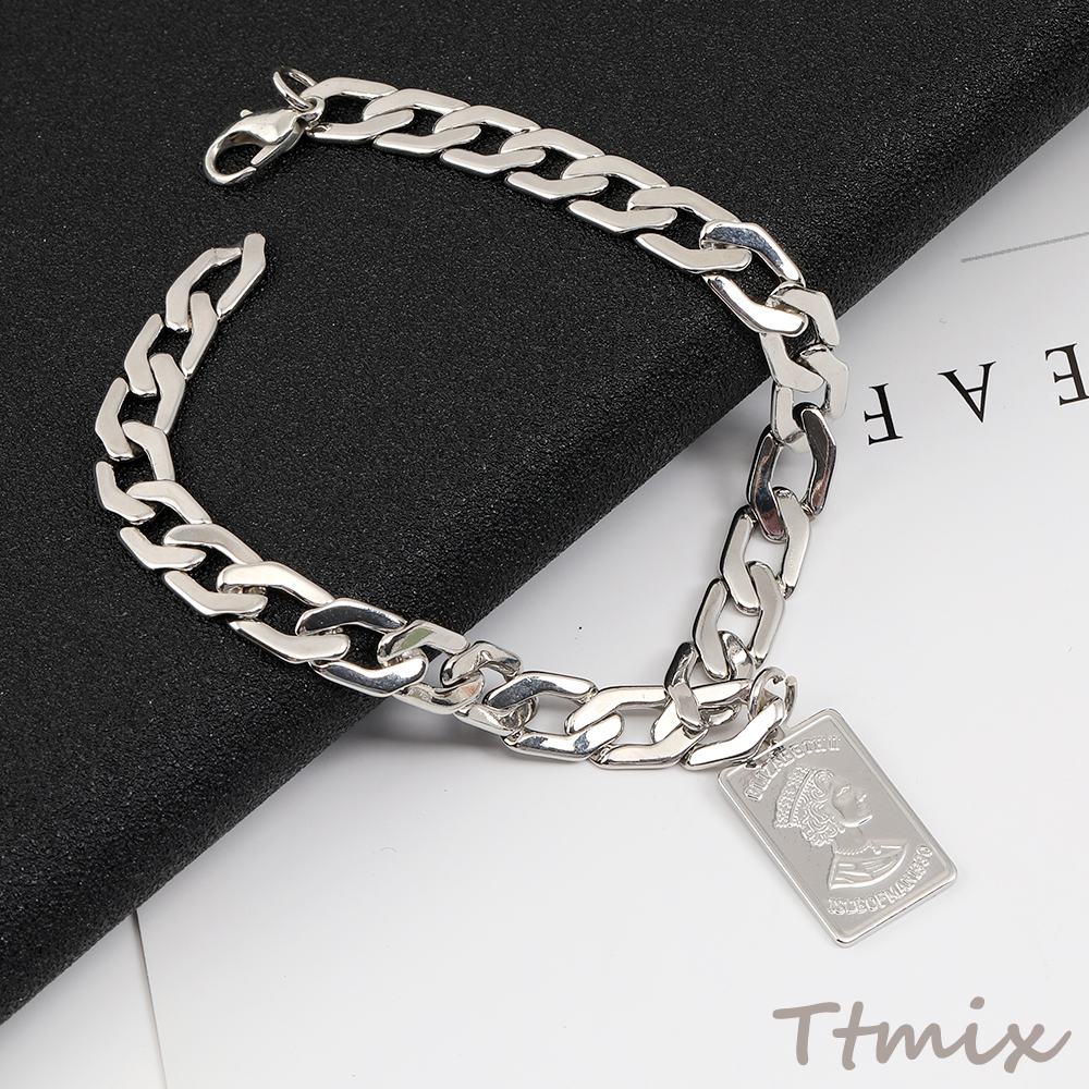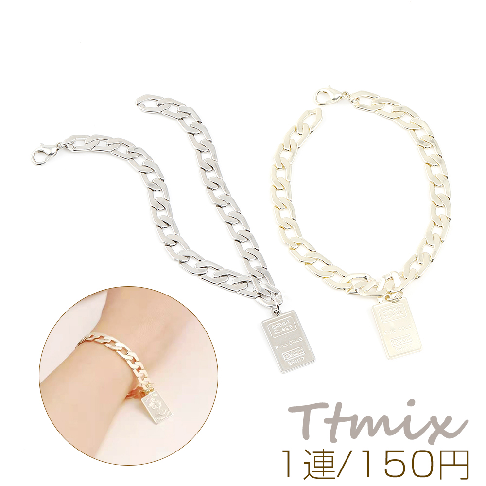 高品質メタルチェーンブレスレット キヘイチェーン 長方形型プレートチャーム(1連)