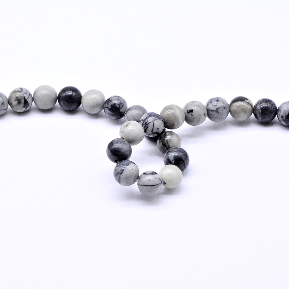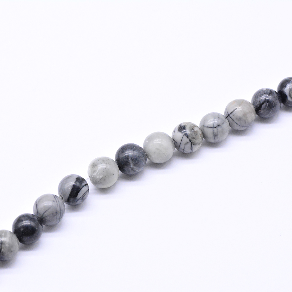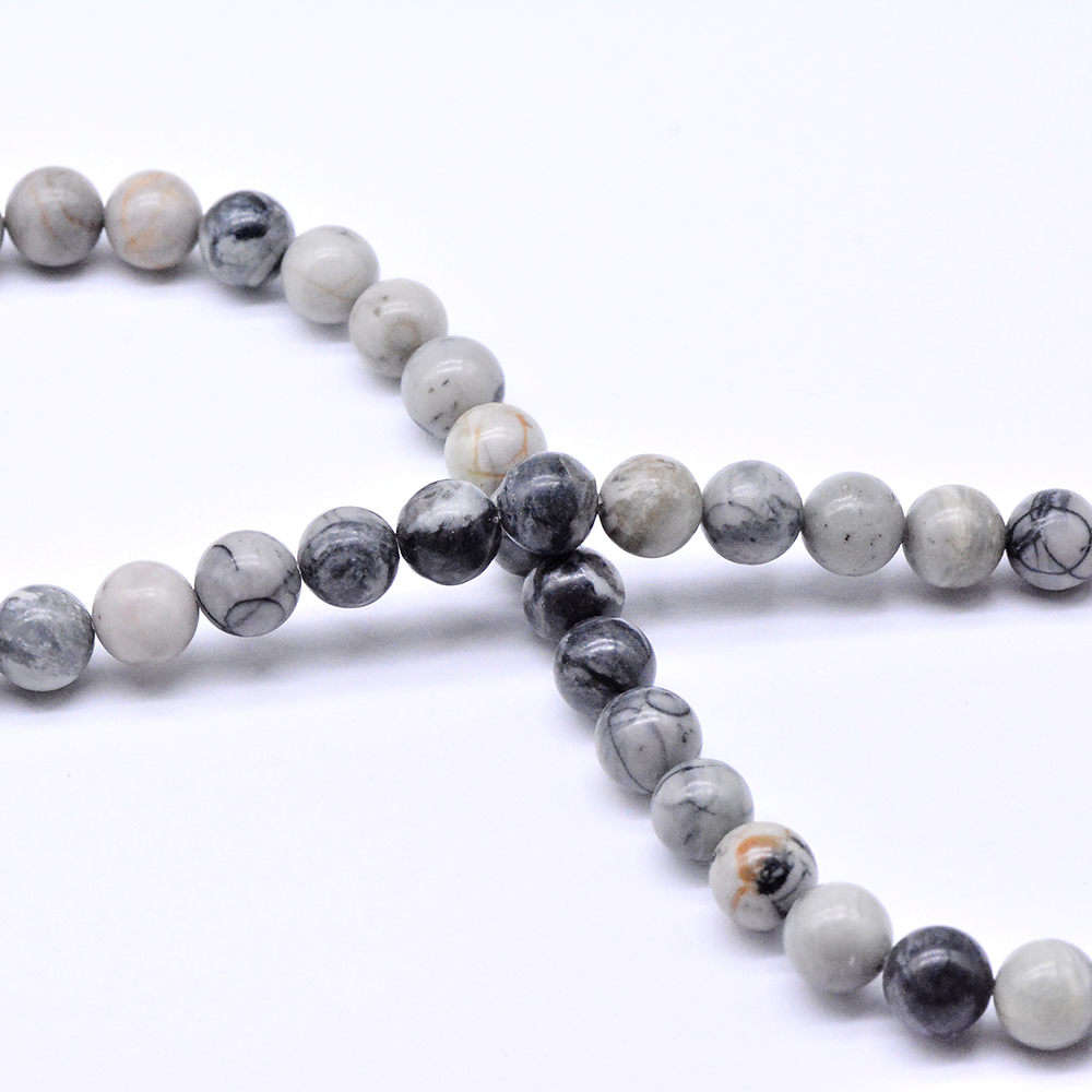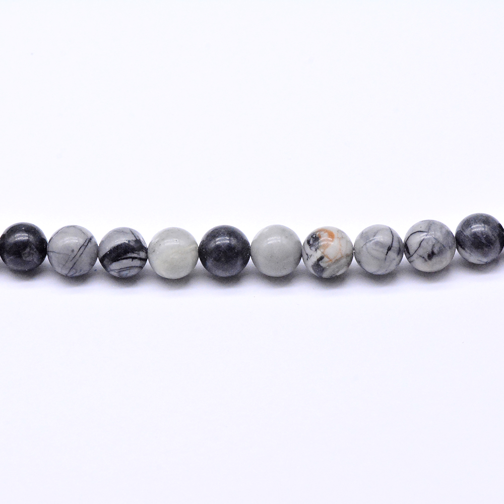 天然石ビーズ ブラックピカソジャスパー ラウンド 8mm 1連(約46ヶ)