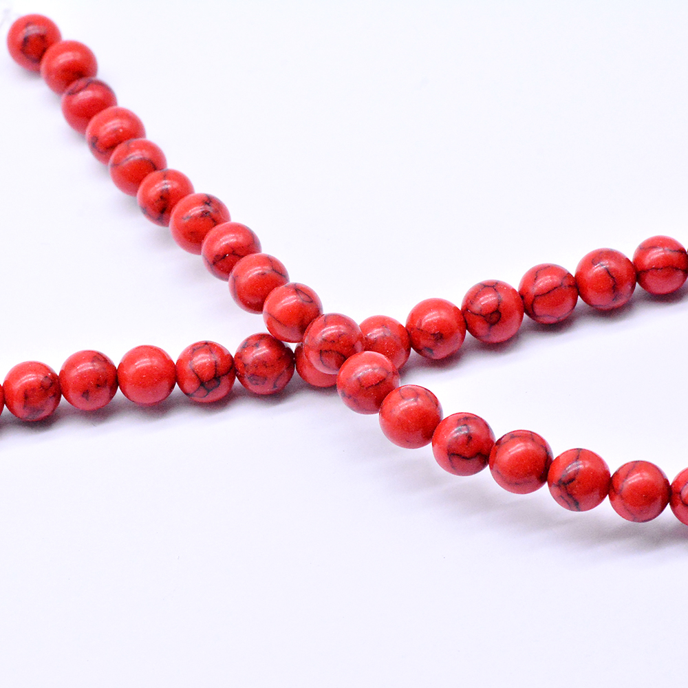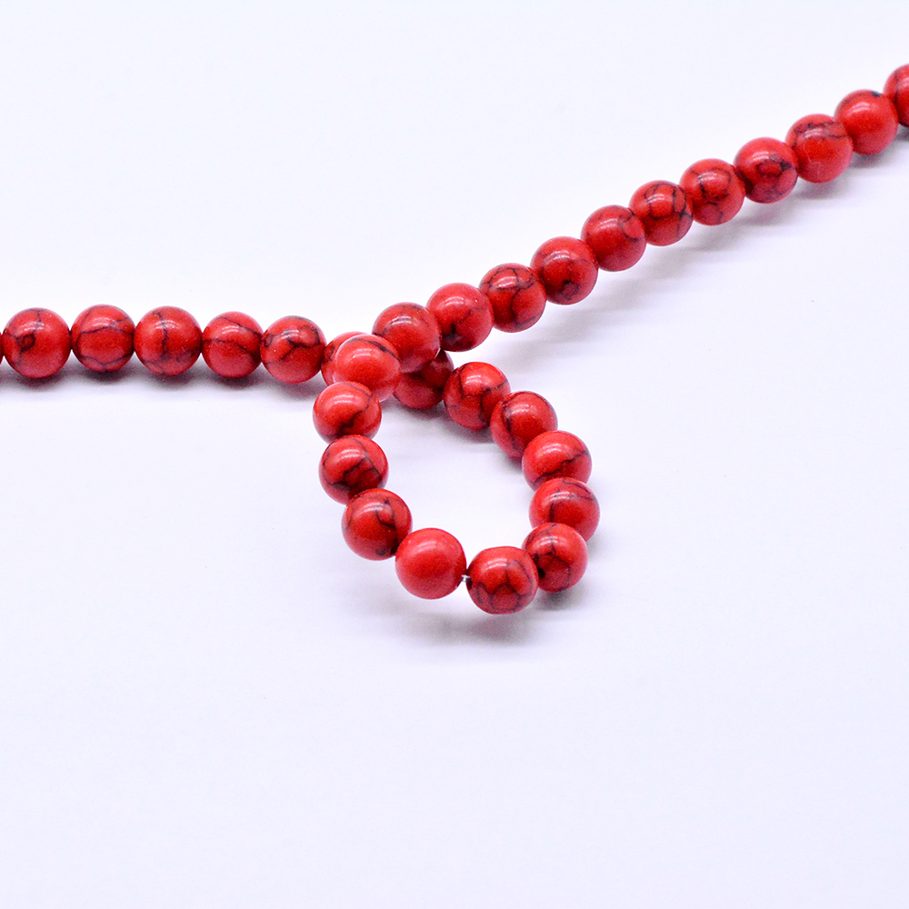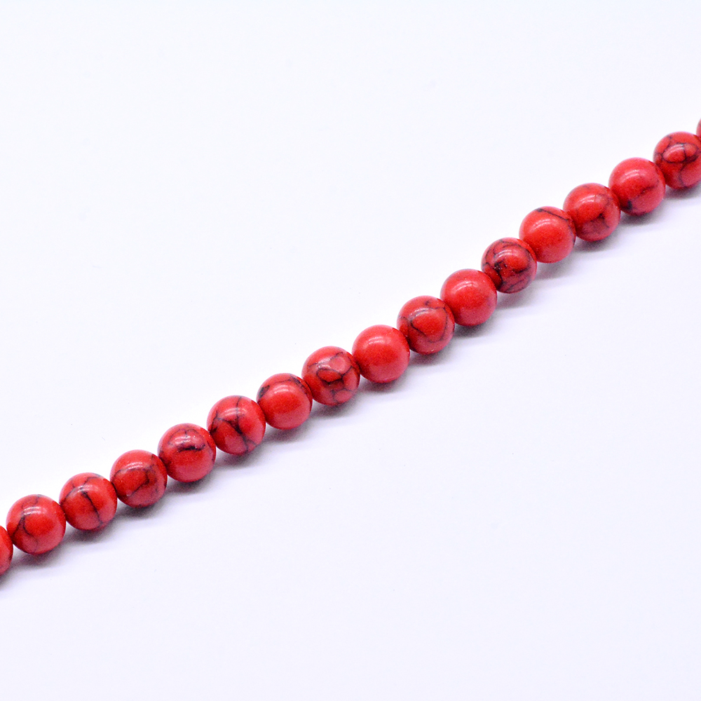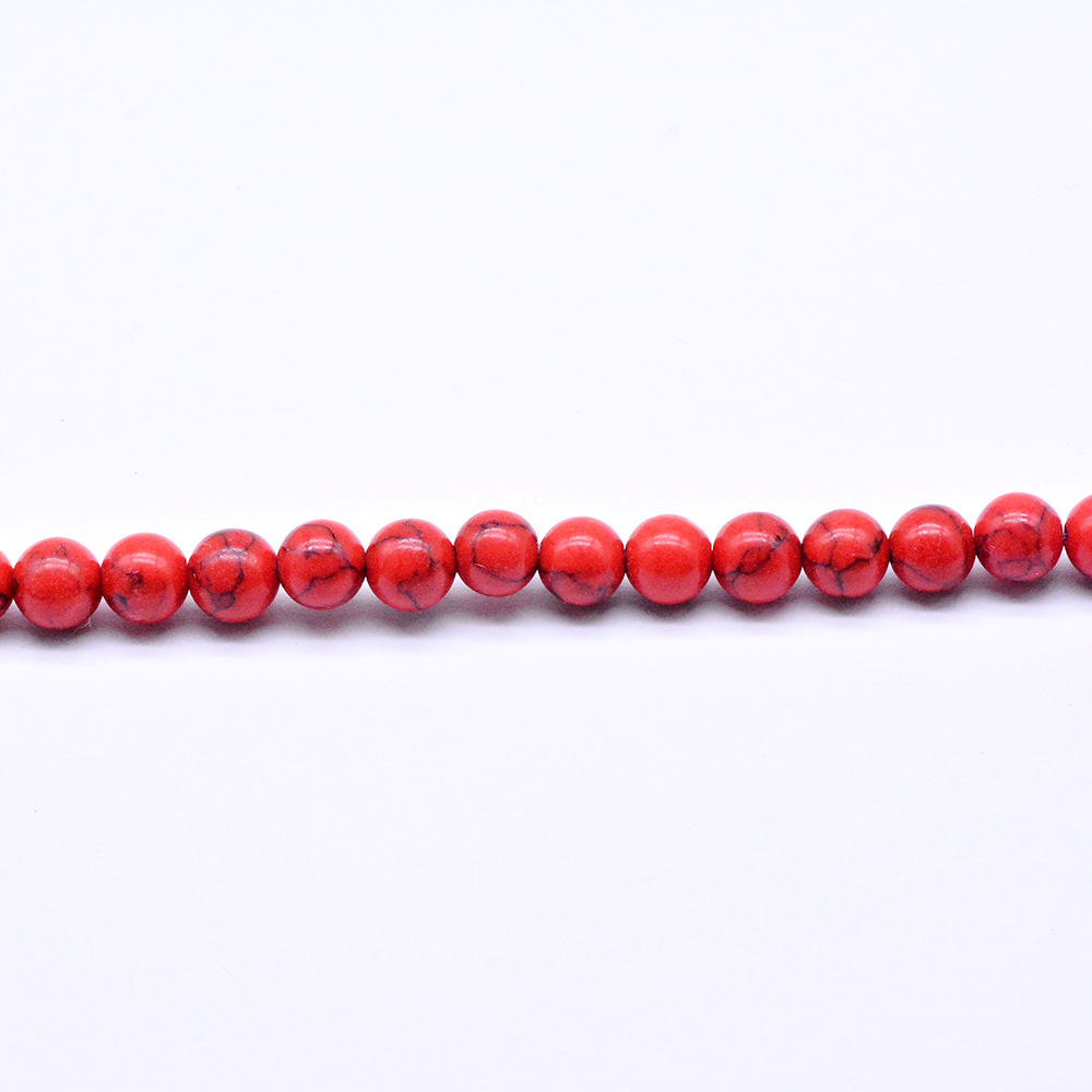 天然石ビーズ ターコイズ レッド ラウンド 8mm 1連(約48ヶ)