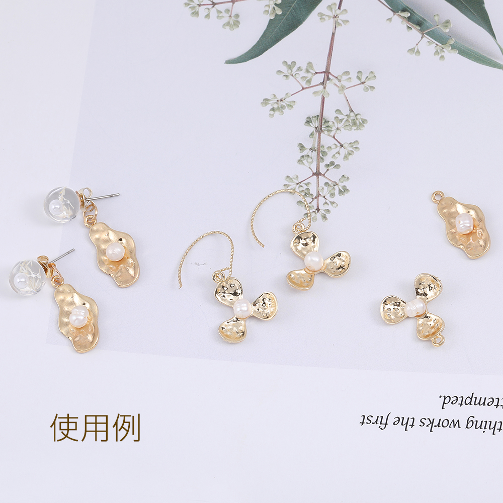 淡水パールチャーム 不規則型/三弁花 1カン ゴールド(6ヶ)