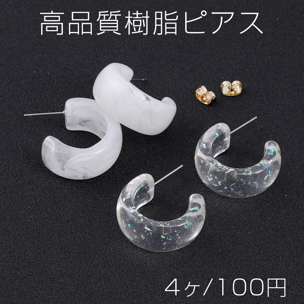 高品質樹脂ピアス Cフープ 12×26mm(4ヶ)