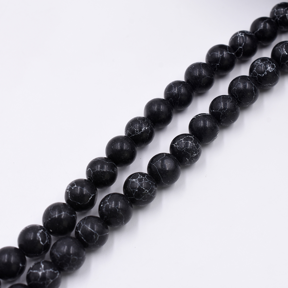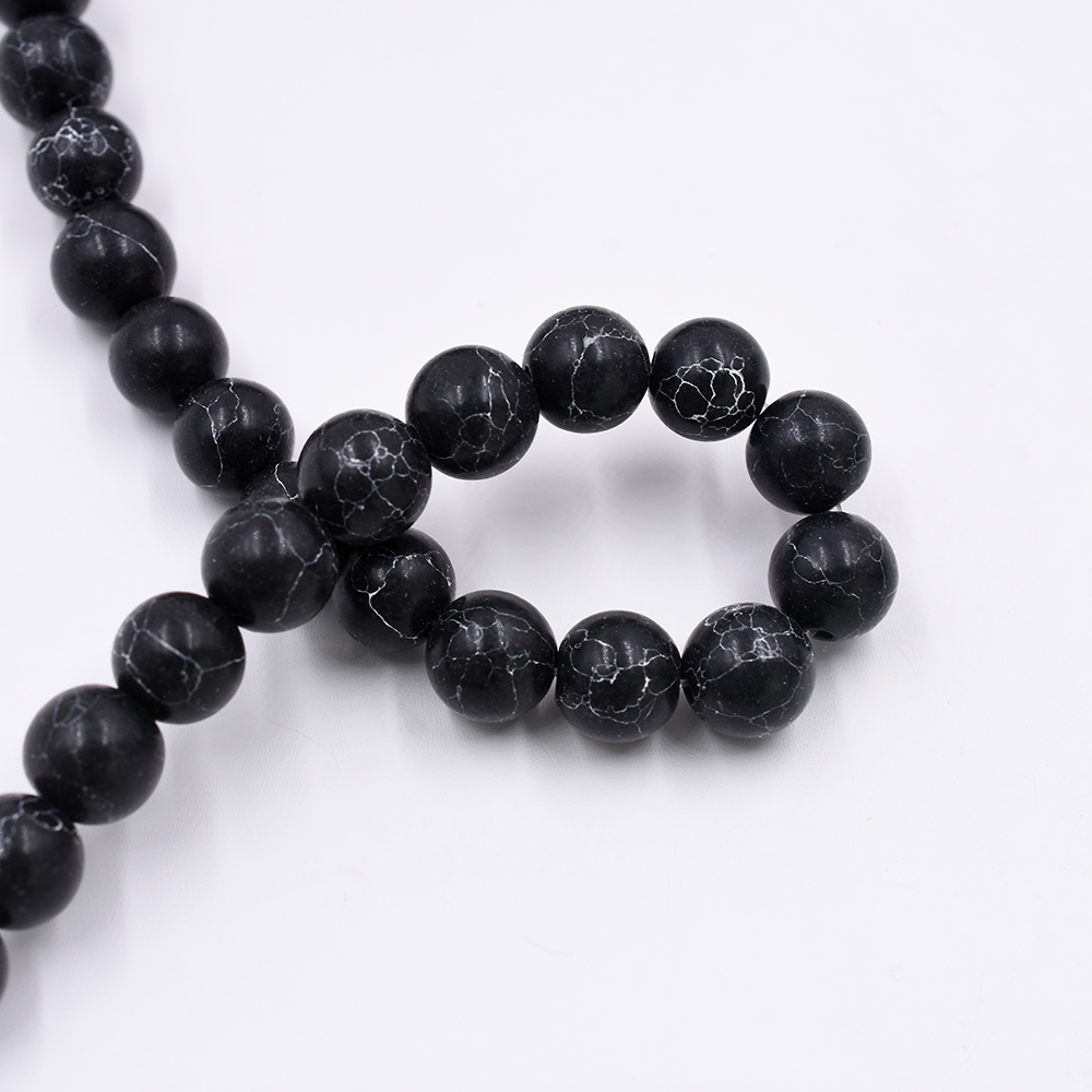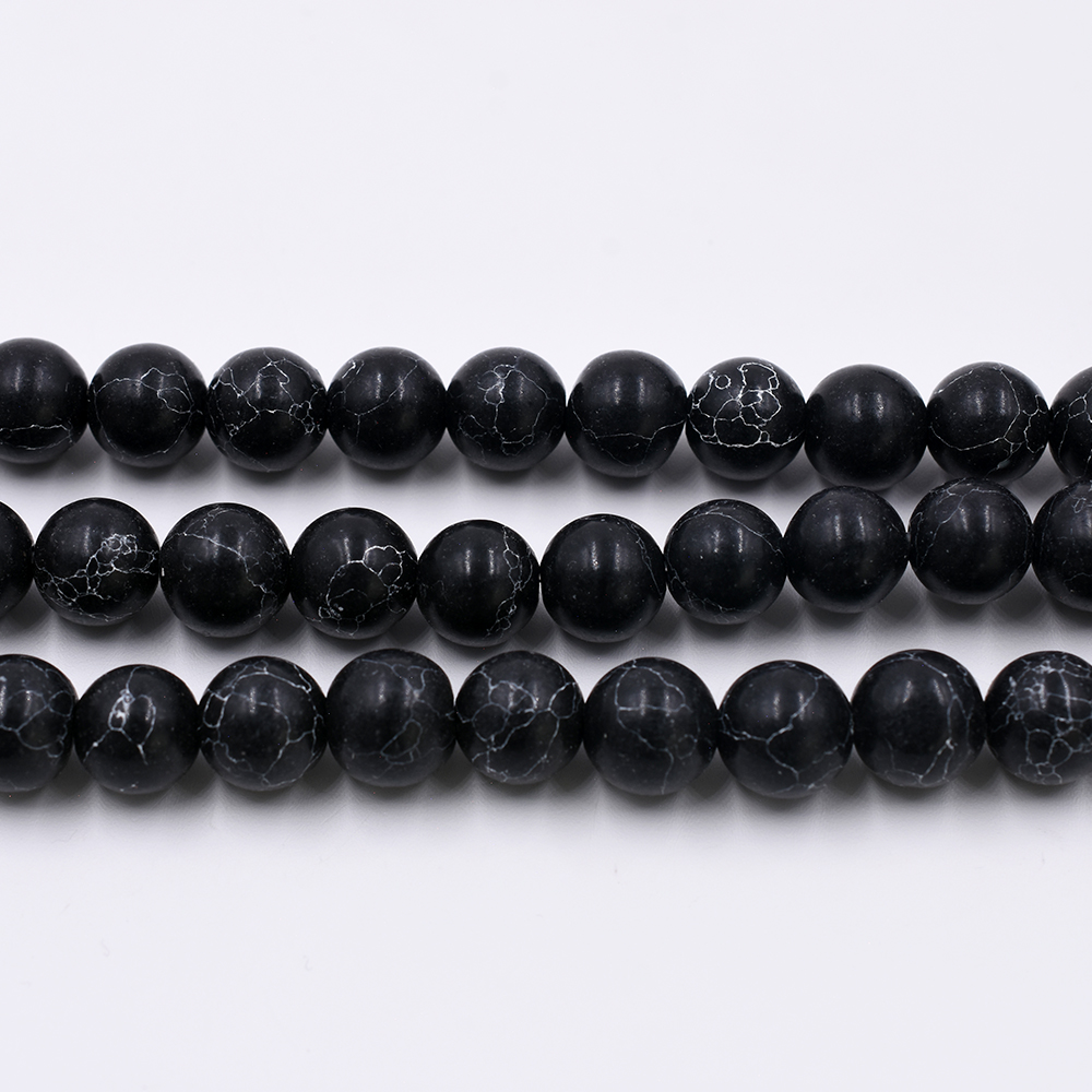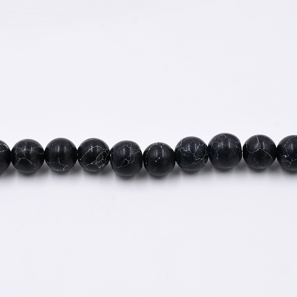 天然石ビーズ ラウンド ブラックターコイズ 6mm 1連(約60ケ)