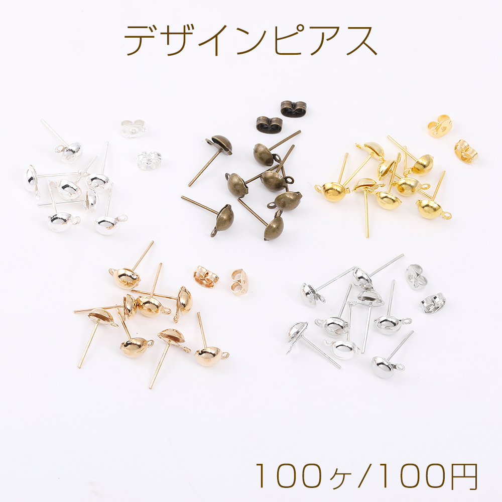 最安値挑戦中!デザインピアス 半球 6mm カン付き(100ヶ)