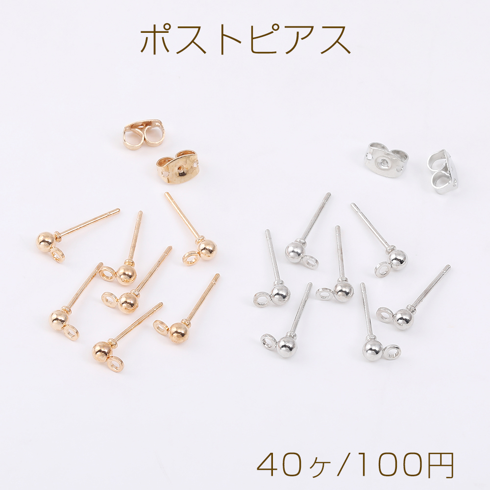 最安値挑戦中!ポストピアス ボール 3mm カン付き(40ヶ)