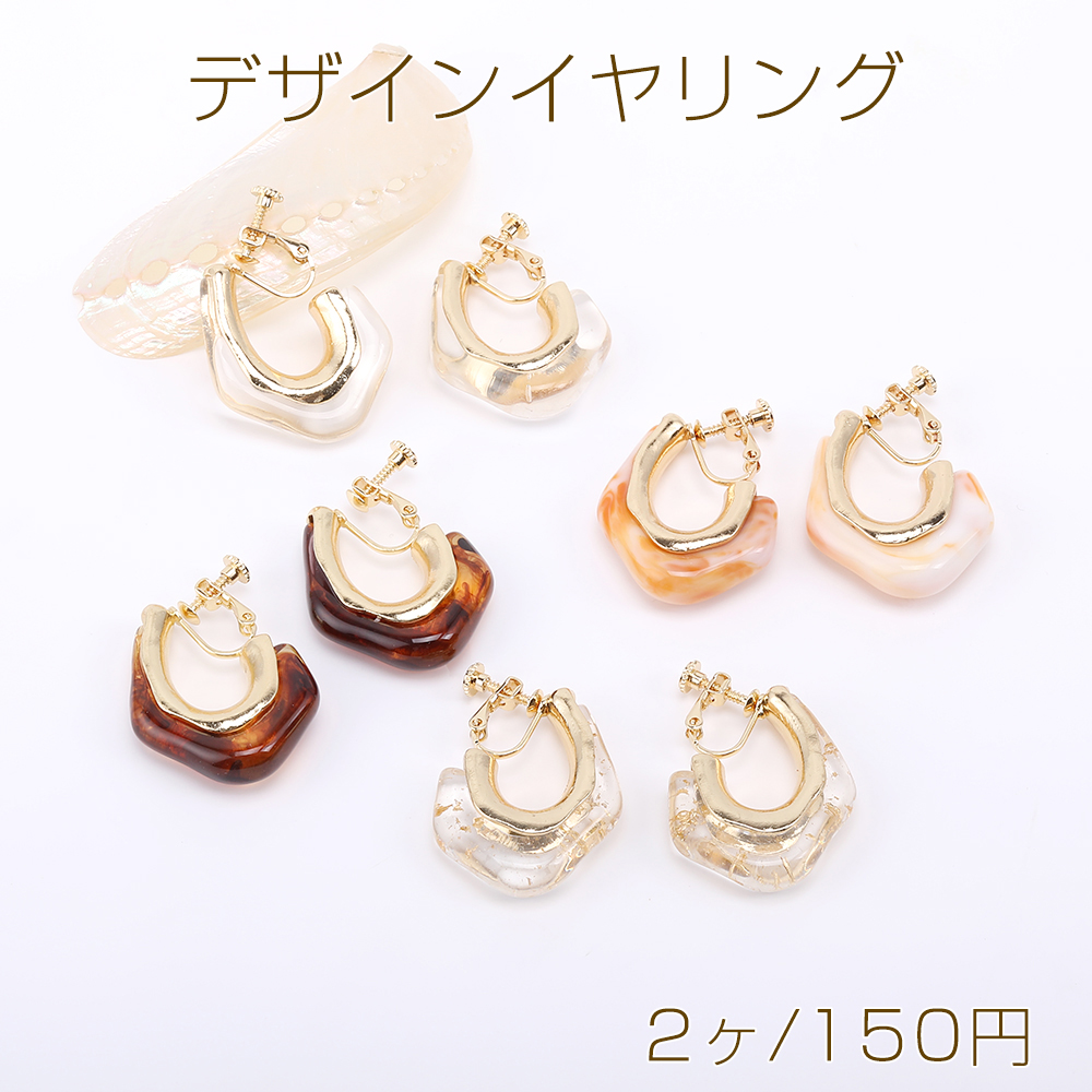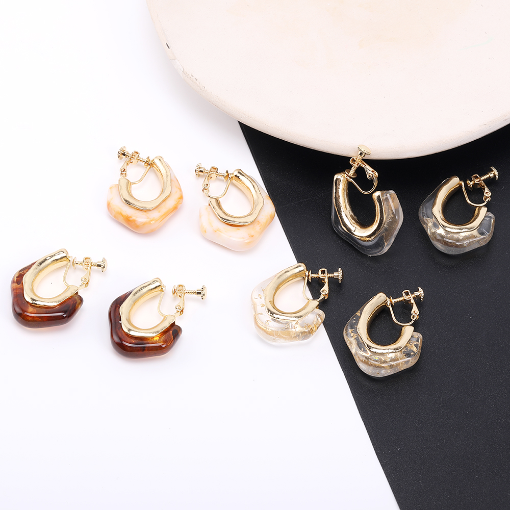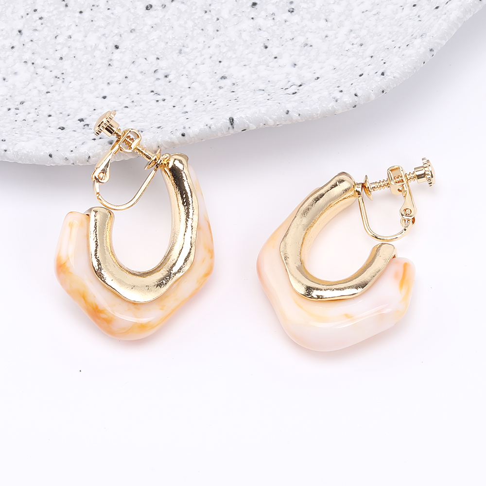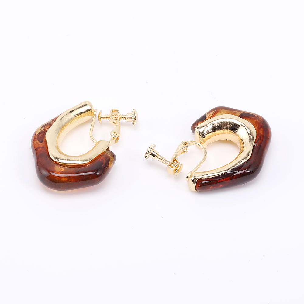 マーブルフープイヤリング 上質デザインイヤリング ネジバネ式イヤリング 26×34mm ゴールド(2ヶ)