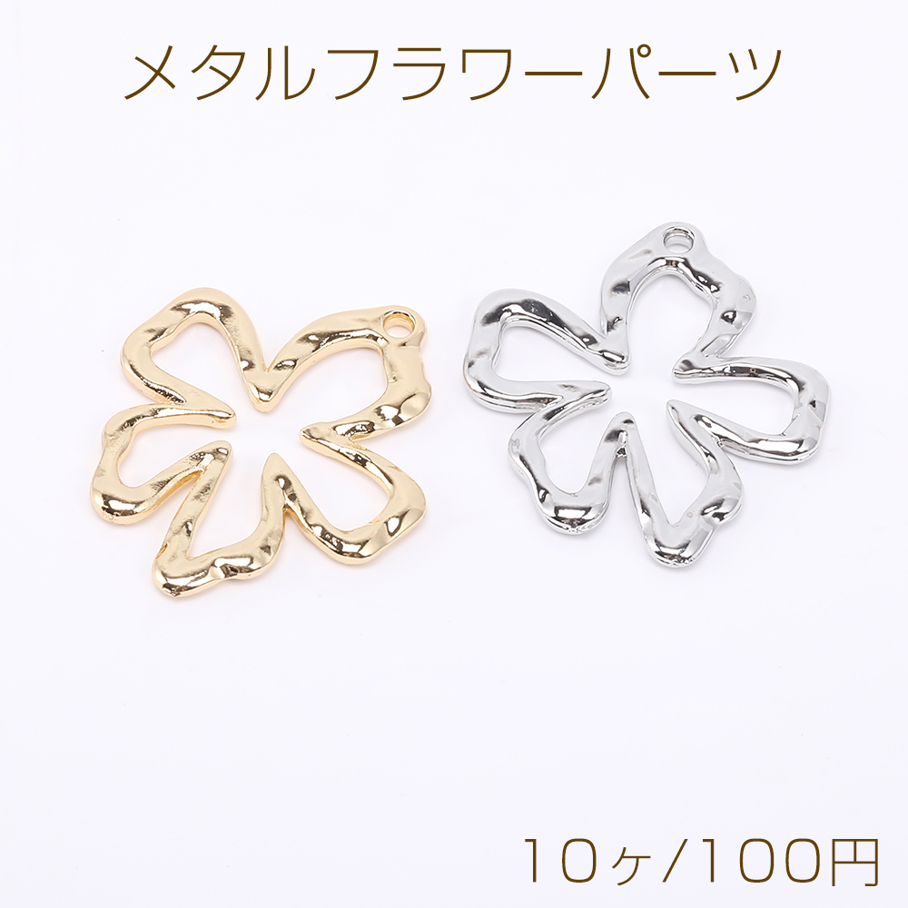 メタルフラワーパーツ メタルチャーム メタルフレームチャーム 5弁花 1穴 29×34mm(10ヶ)