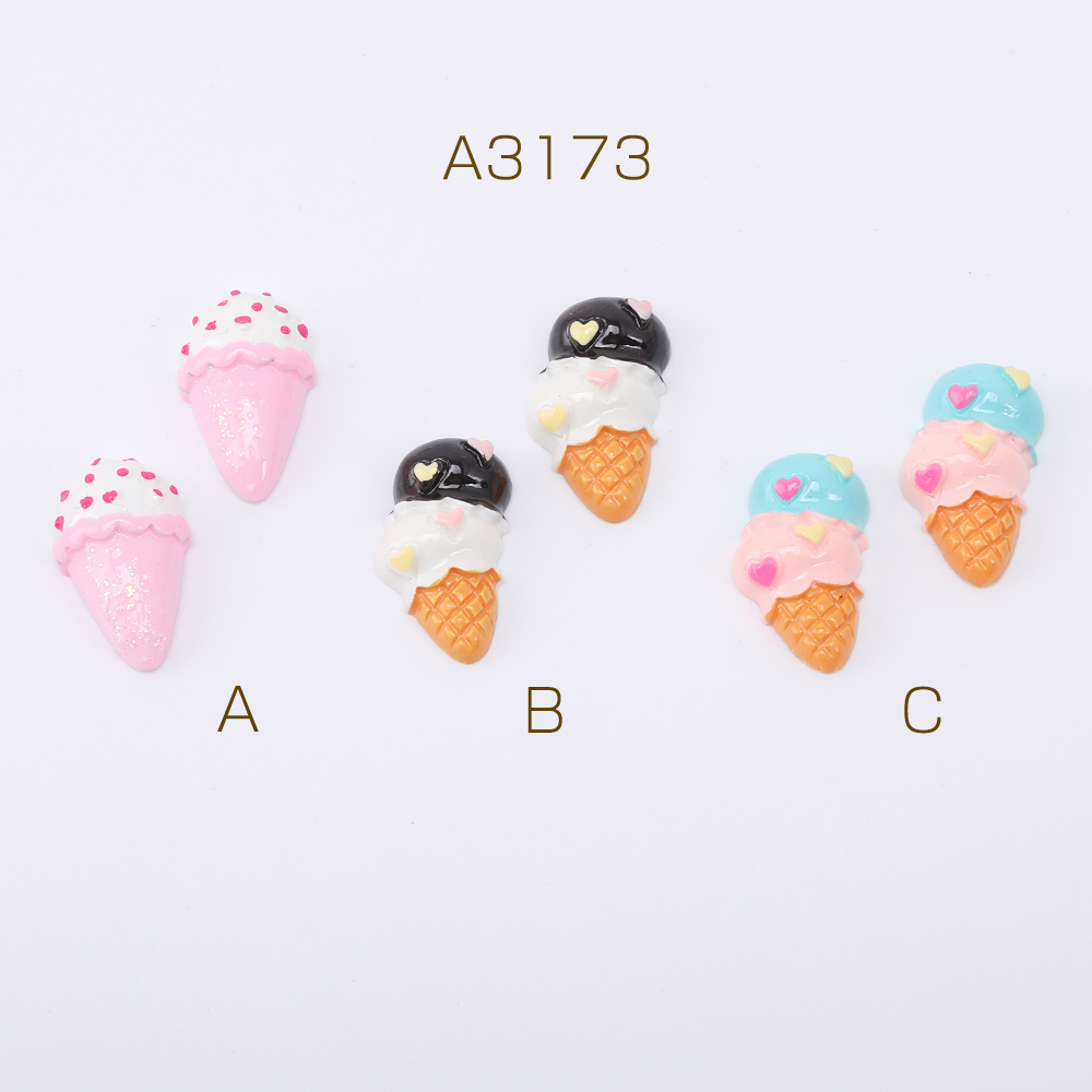 貼付けパーツ 樹脂貼付けパーツ 樹脂カボション アイスクリーム 全3種(10ヶ)