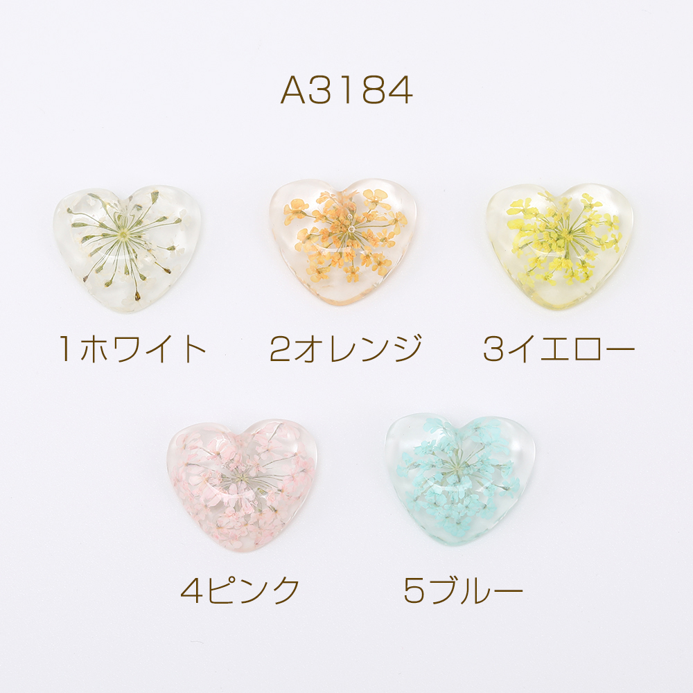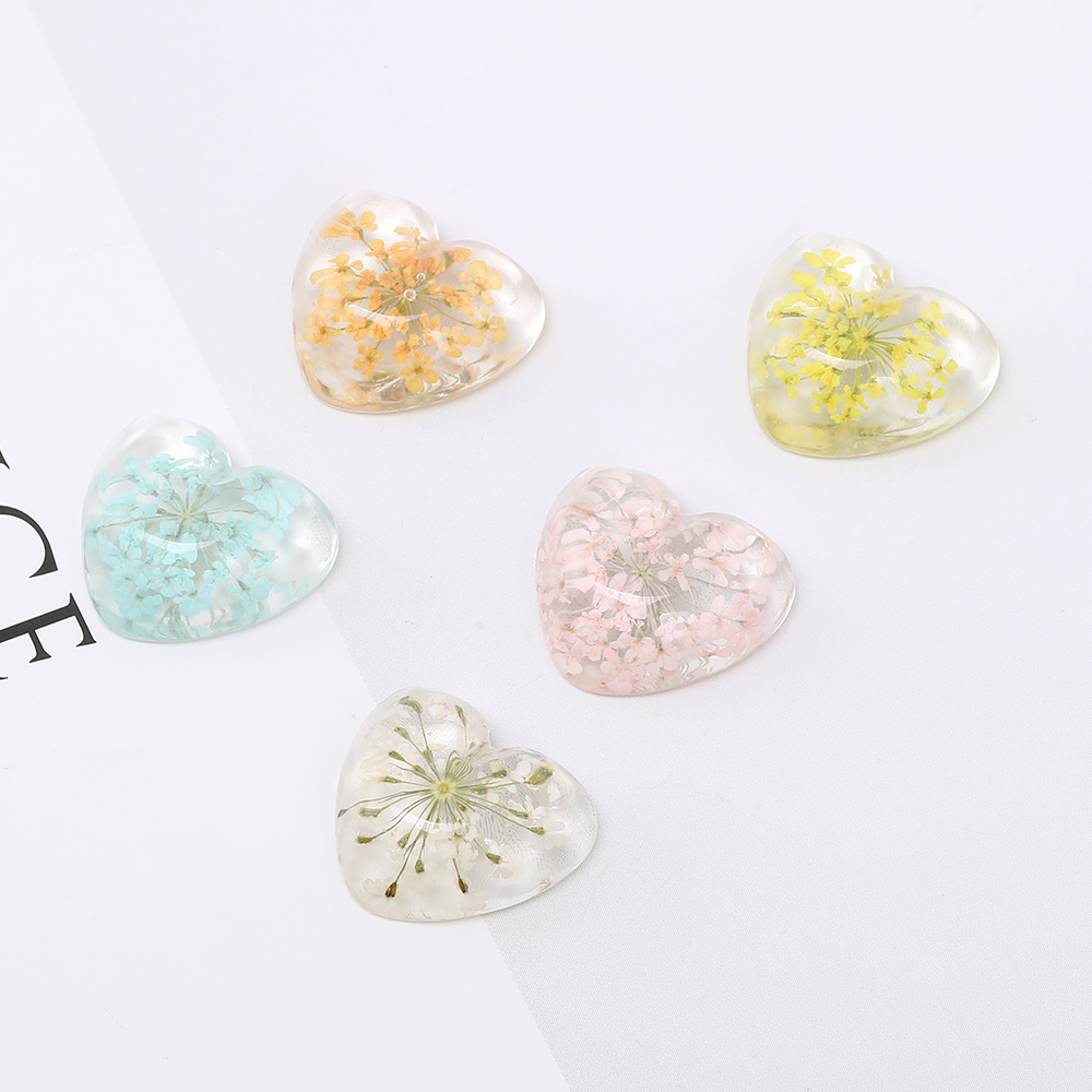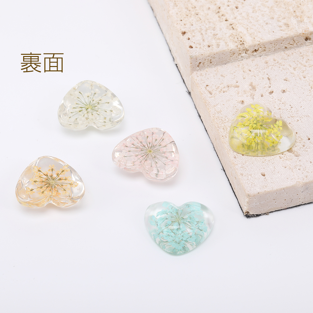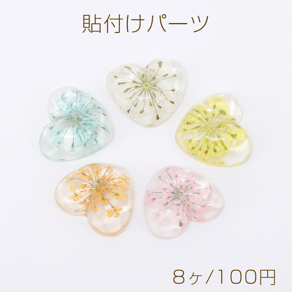 高品質貼付けパーツ 樹脂貼付けパーツ 樹脂カボション ハート型 ドライフラワー入り 17×19mm(8ヶ)
