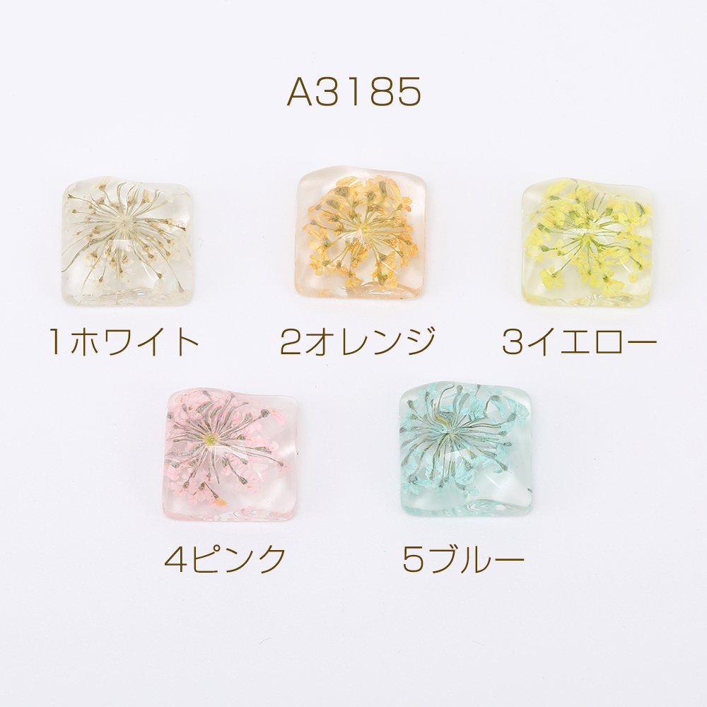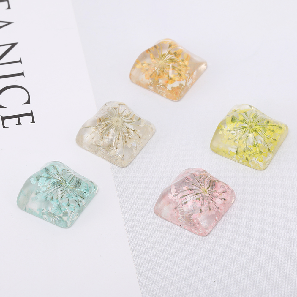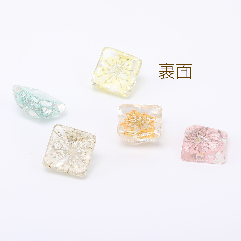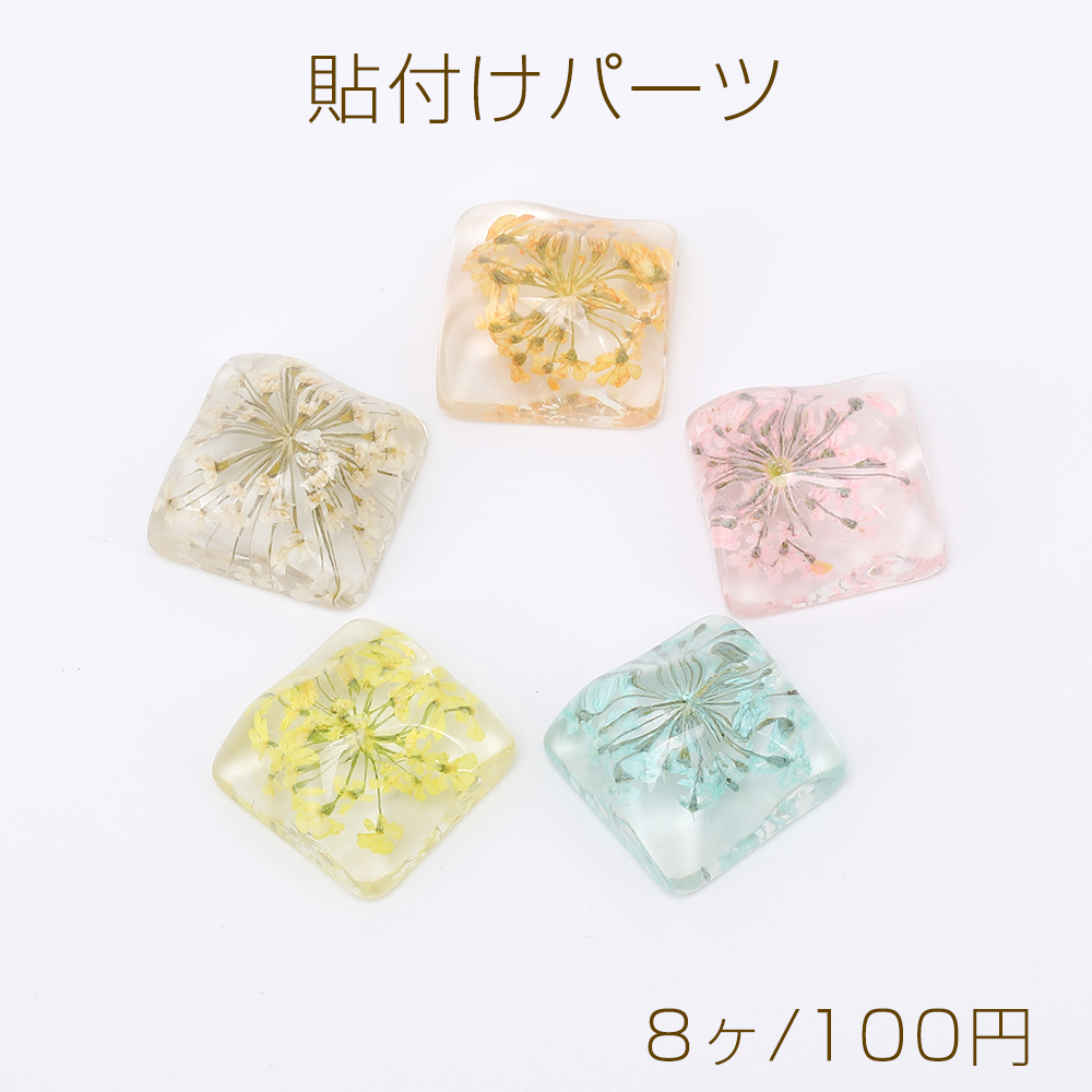 高品質貼付けパーツ 樹脂貼付けパーツ 樹脂カボション スクエア型カット ドライフラワー入り 15×15mm(8ヶ)