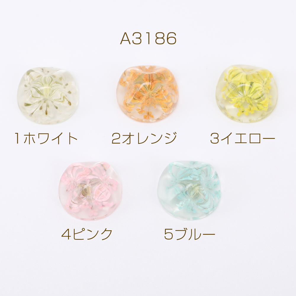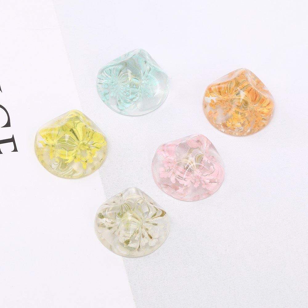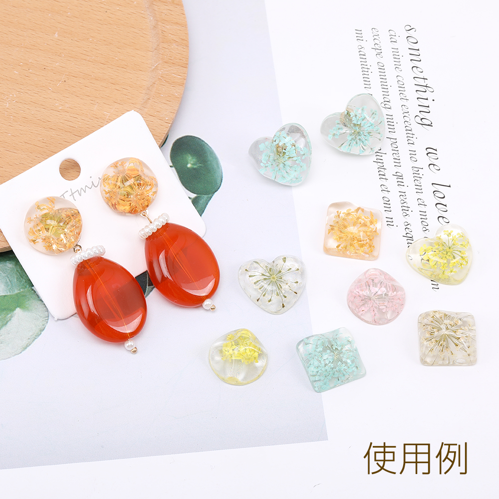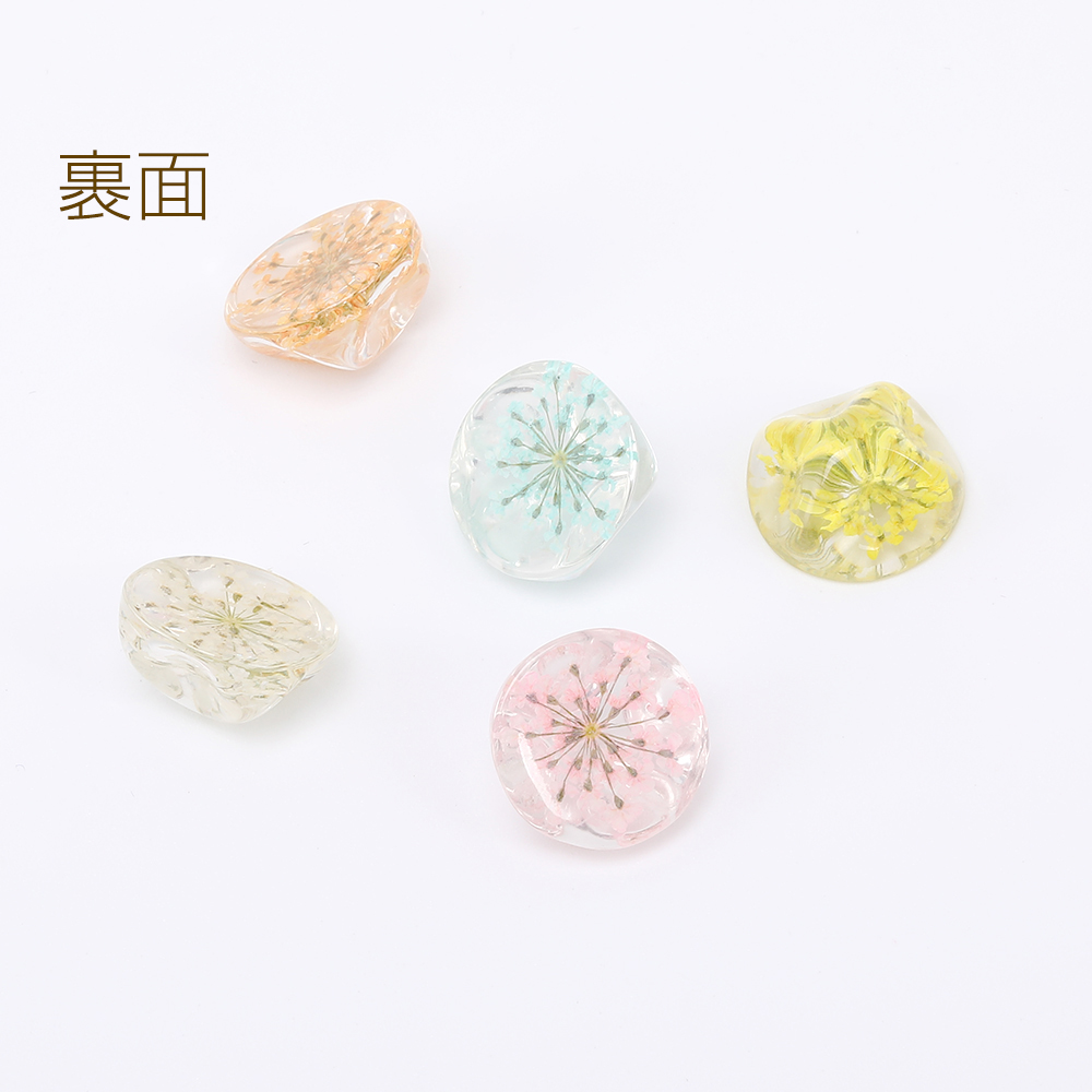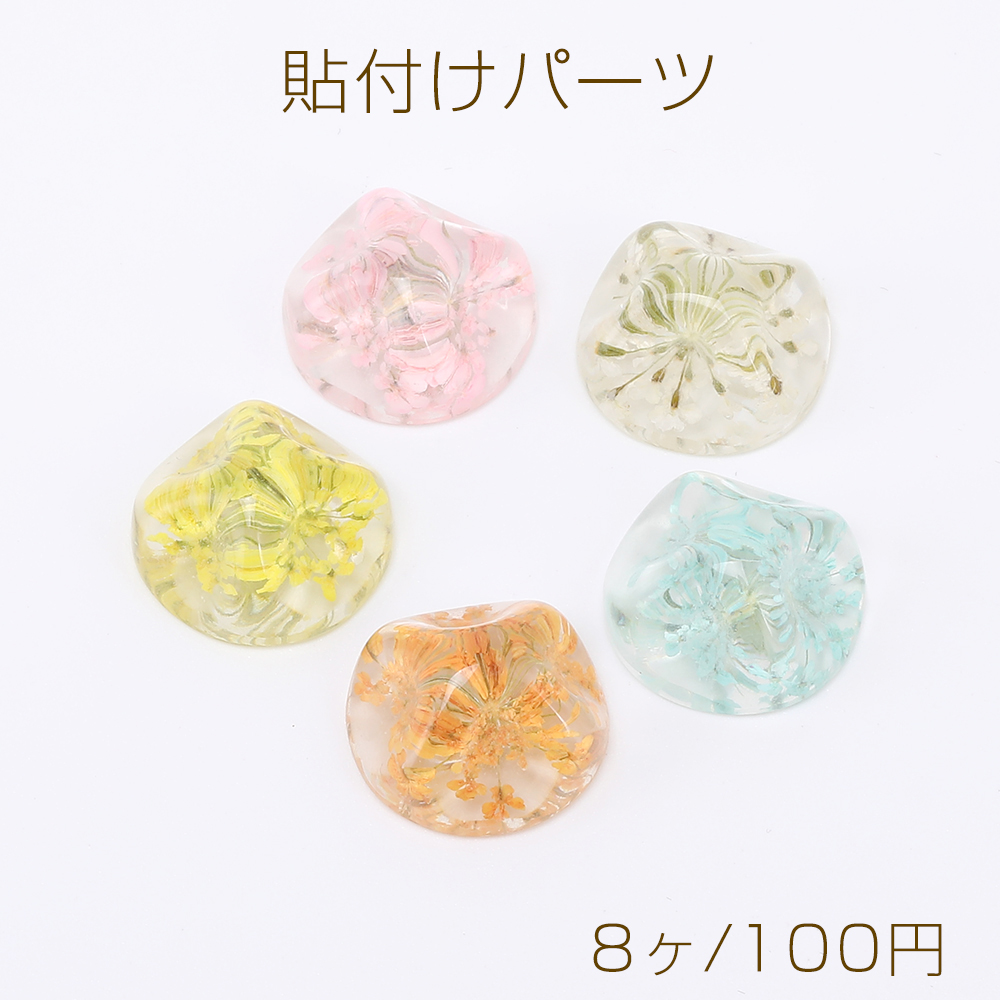 レジン調貼付けパーツ 樹脂製 樹脂カボション 半円 ドライフラワー入り 16×16mm(8ヶ)