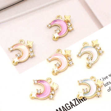 高品質ガラスストーンチャーム スクエア型/ラウンド 1カン/2カン ゴールド/ABカラー(2ヶ)