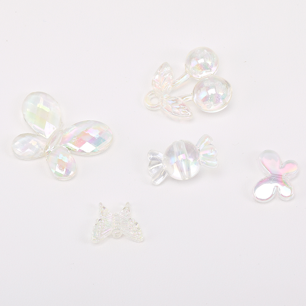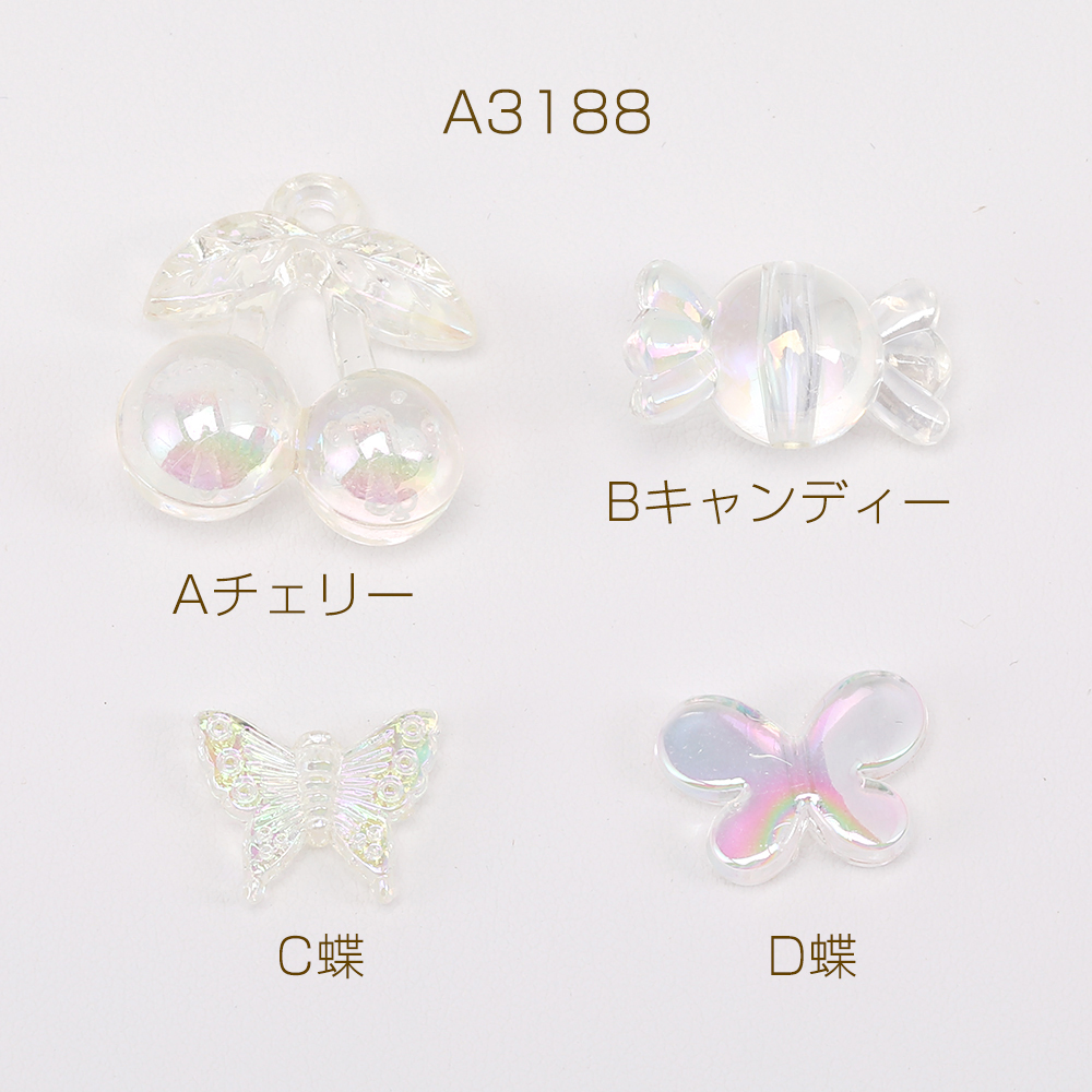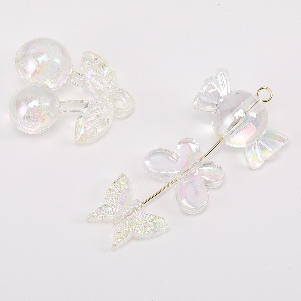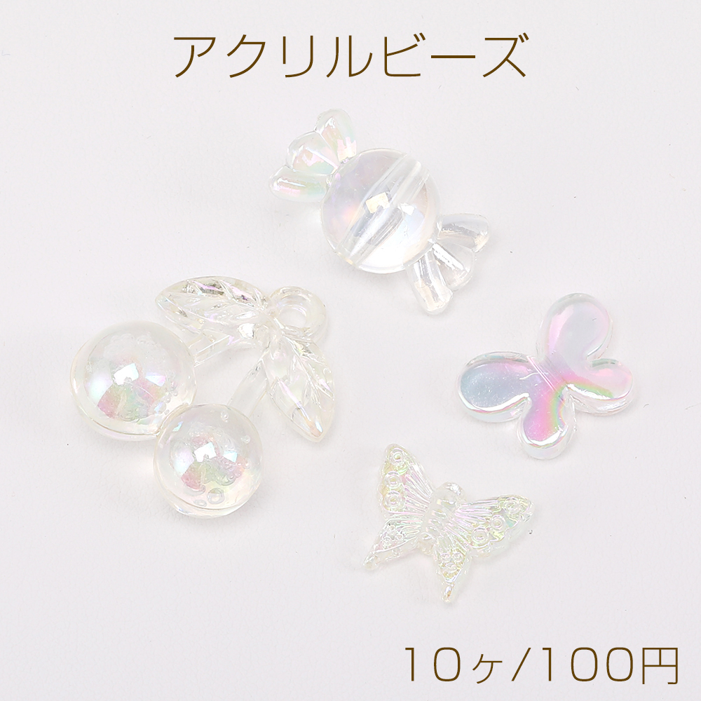 高品質アクリルビーズ チェリー/キャンディー/蝶 クリアABカラー オーロラカラー(10ヶ)