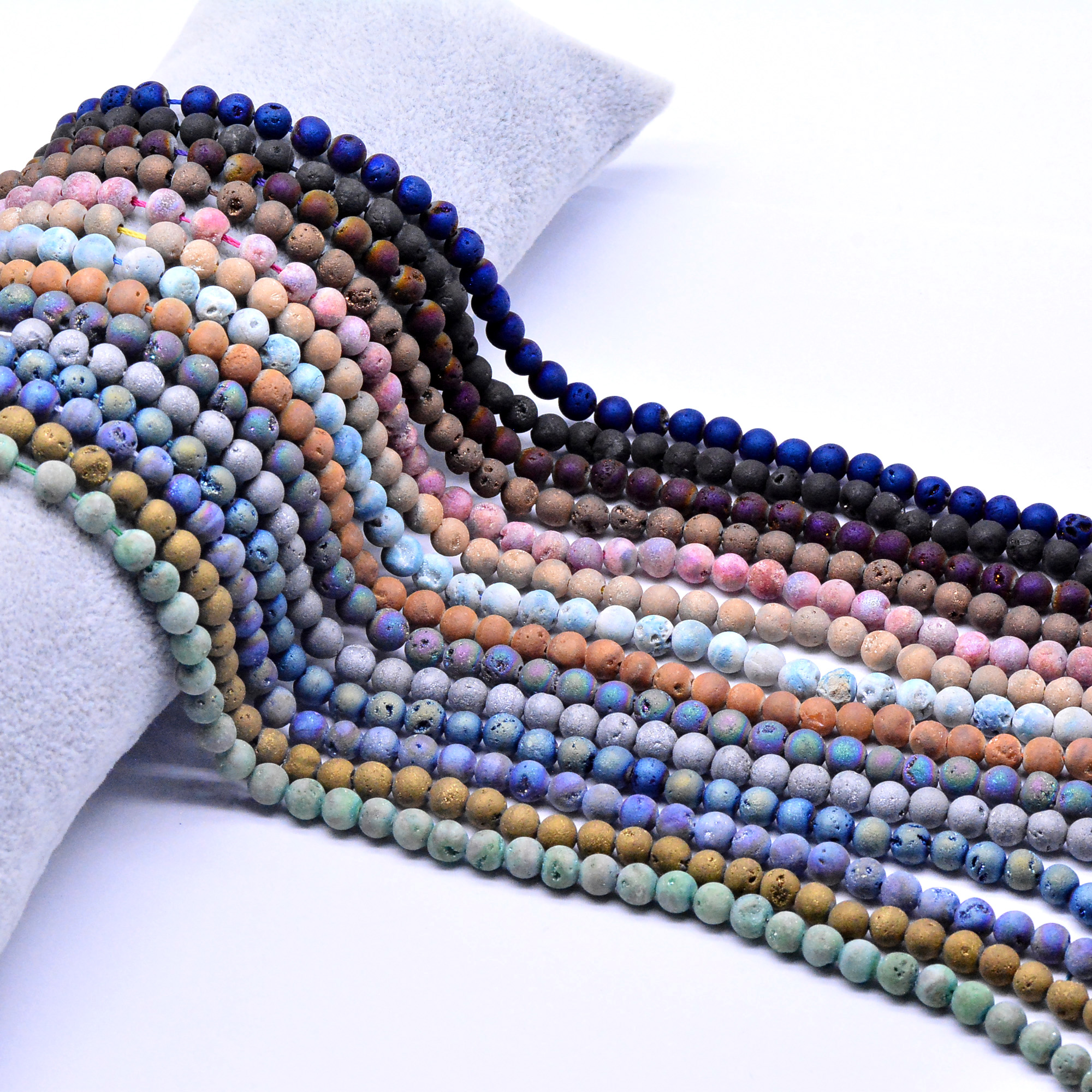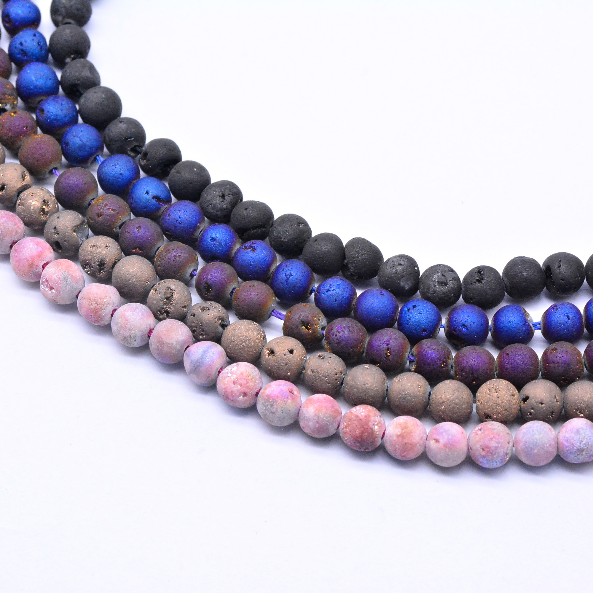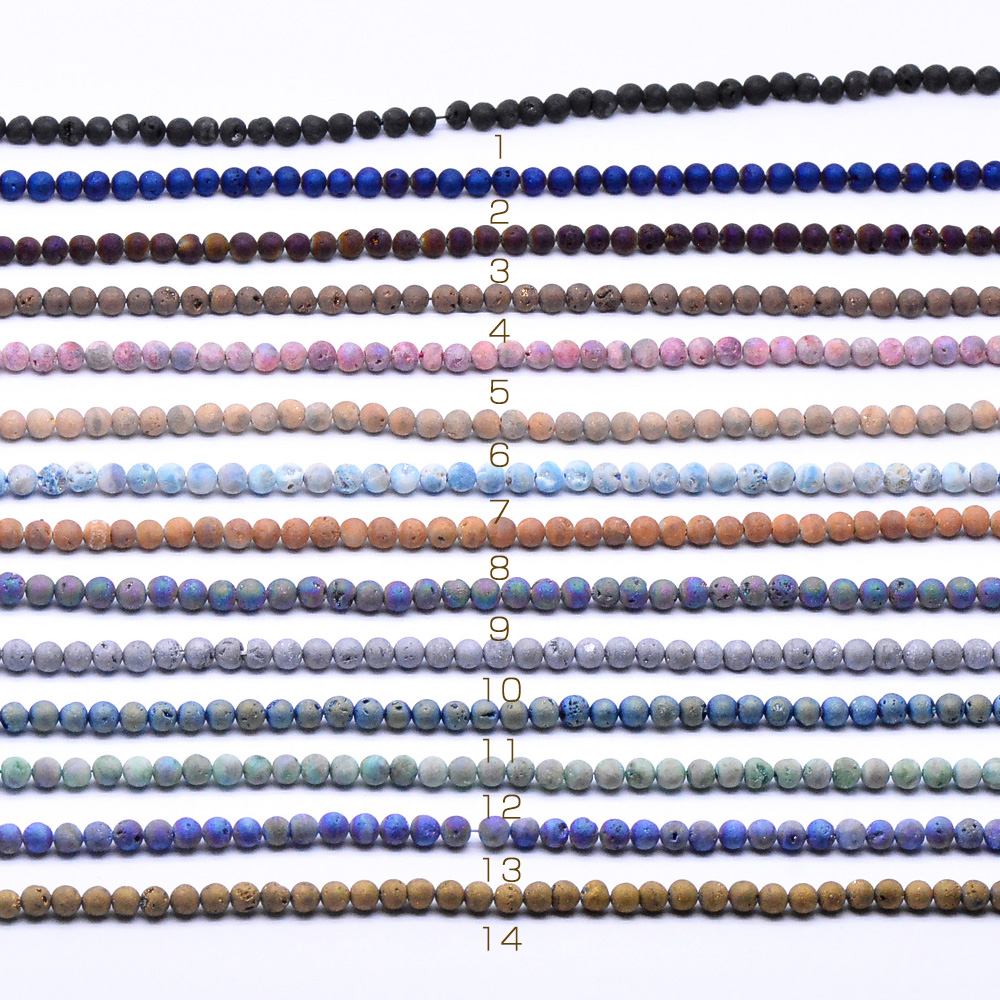 天然石ビーズ 火山岩 ラウンド バンピー ミックスカラー 6mm 【1連(約66ヶ)】