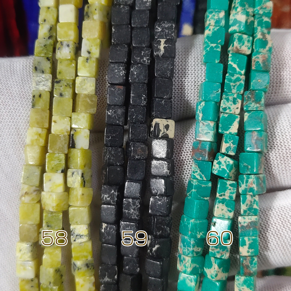天然石ビーズ 立体正方形 4×4mm (1連約38cm) 4×4mm 正方体