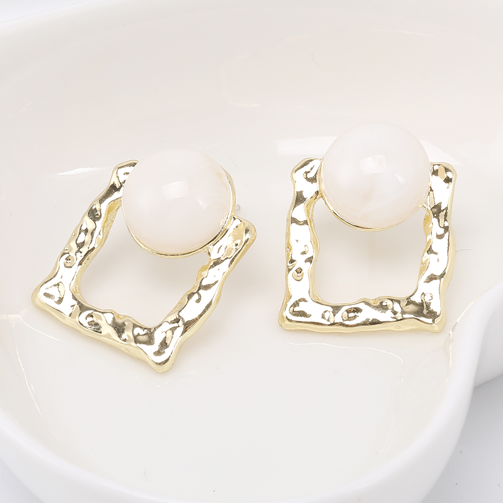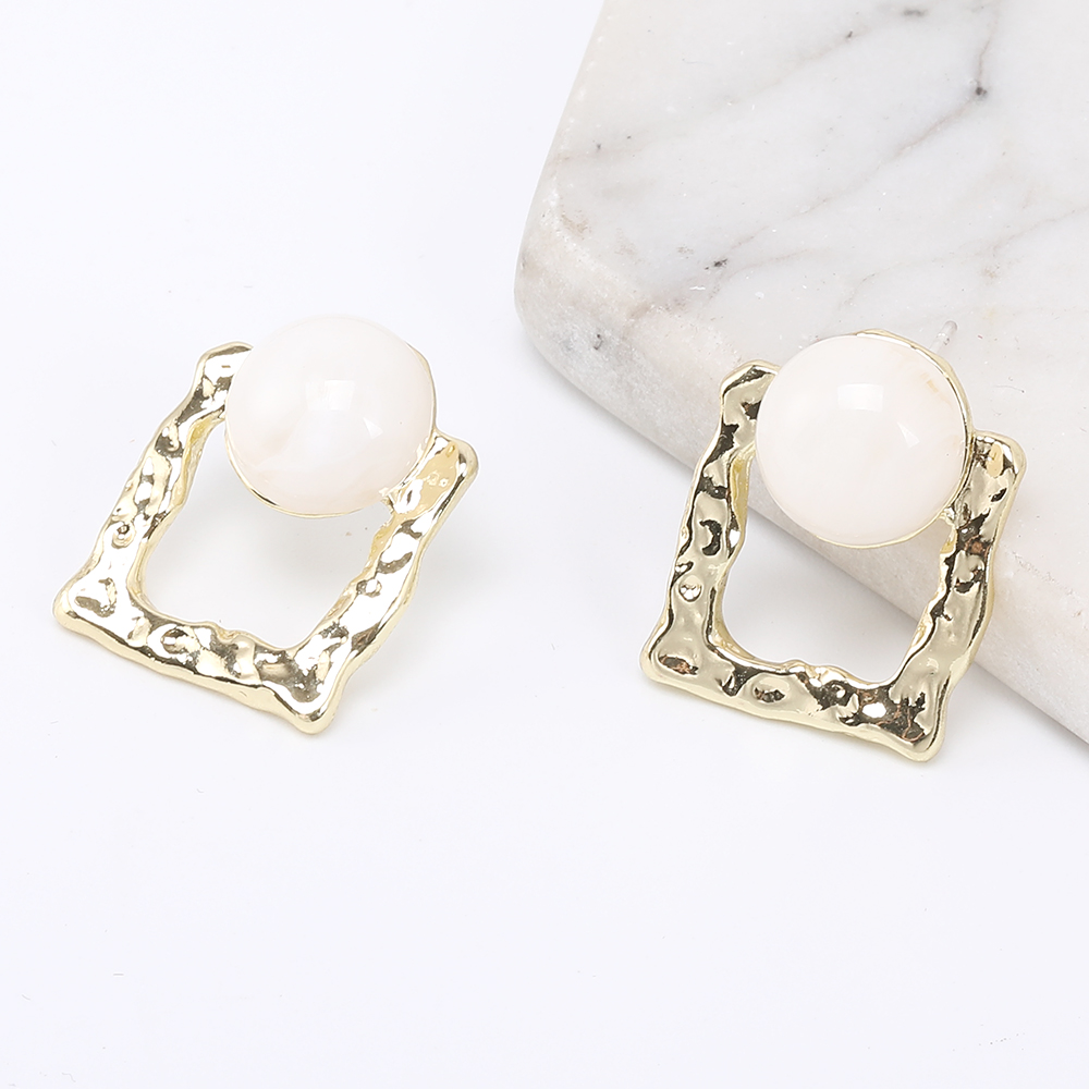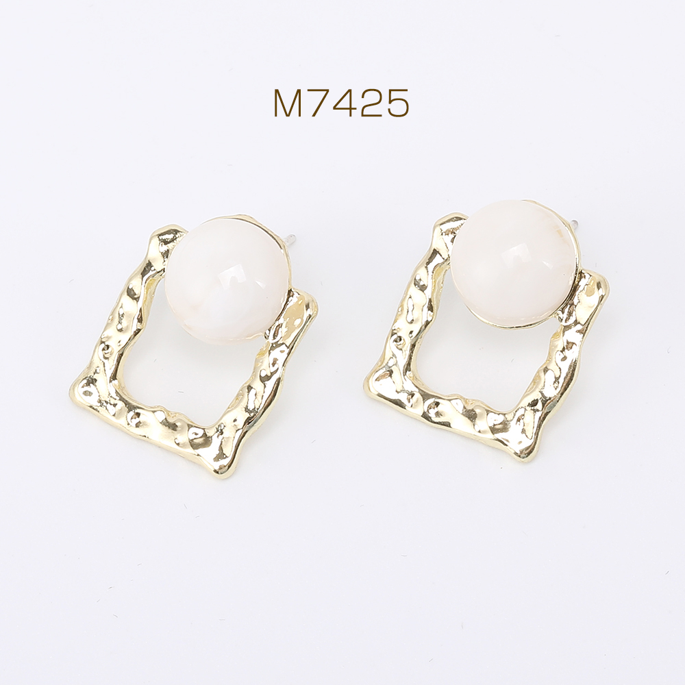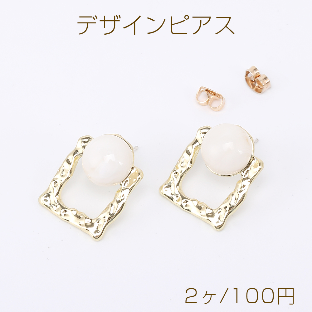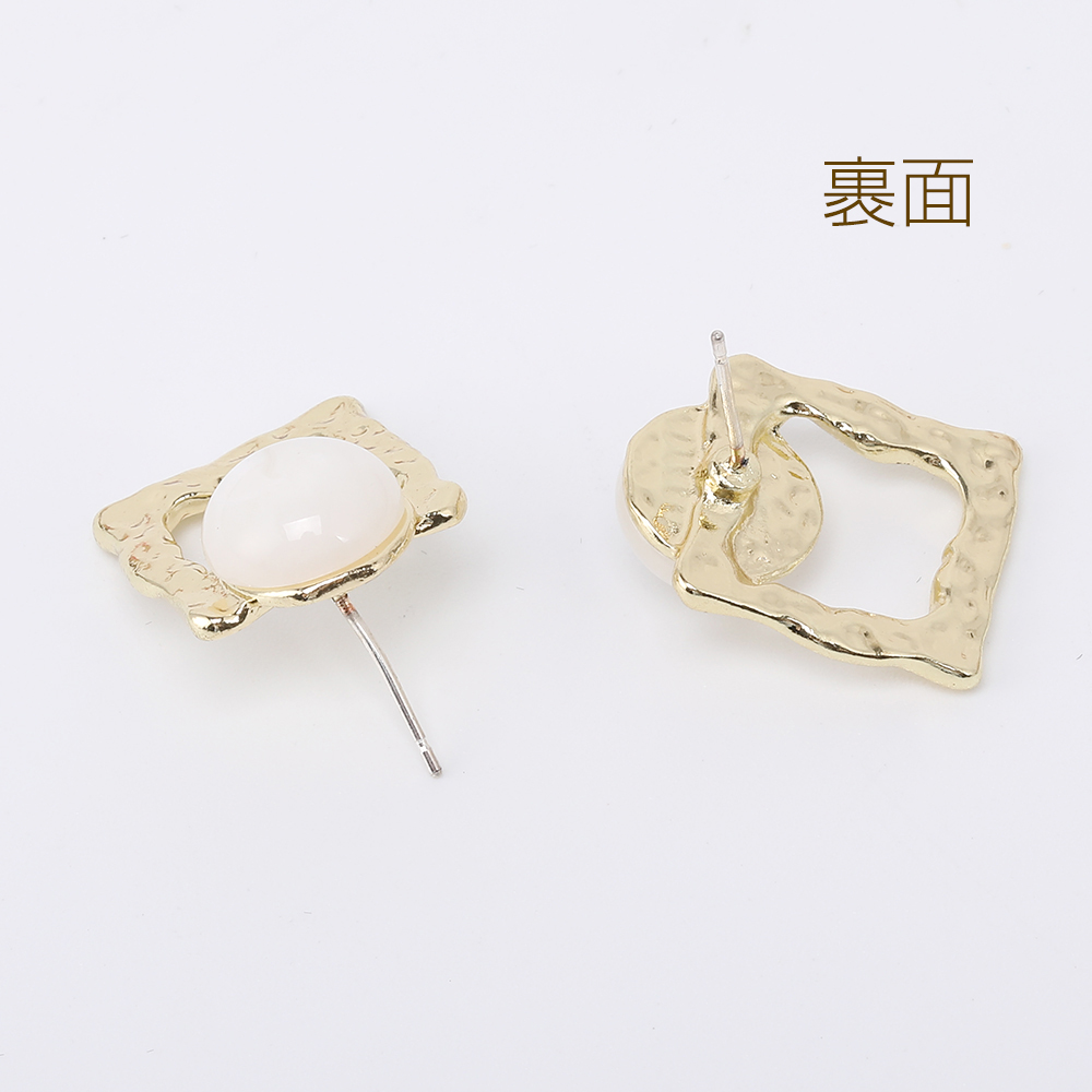 デザインピアス 長方形型 樹脂貼り 17×21mm ゴールド(2ヶ)