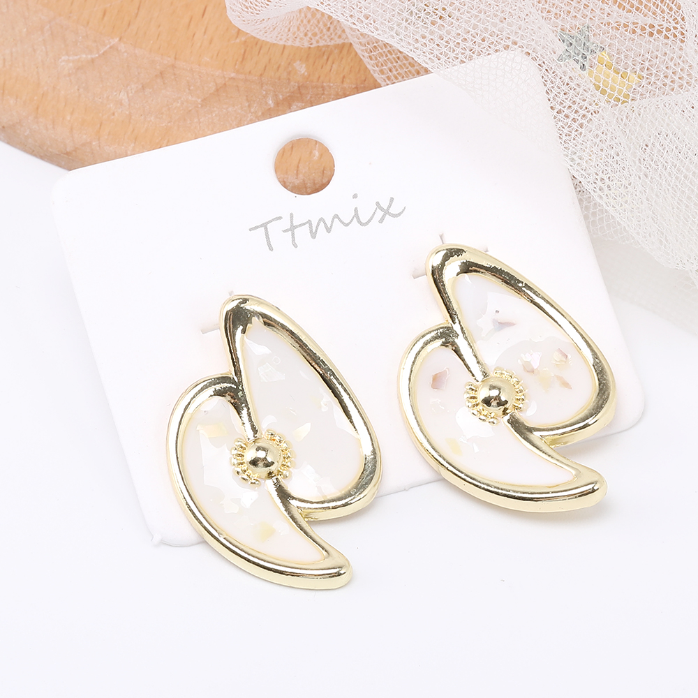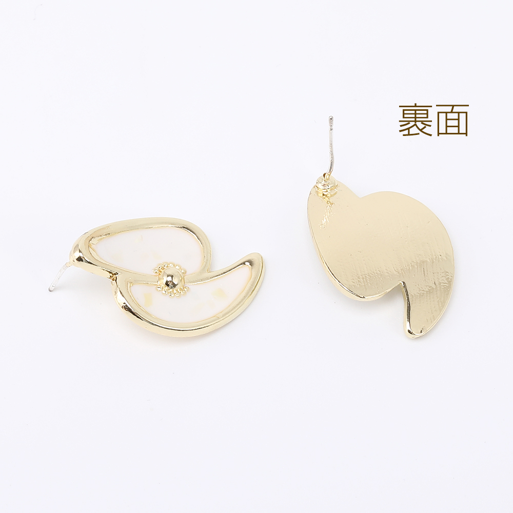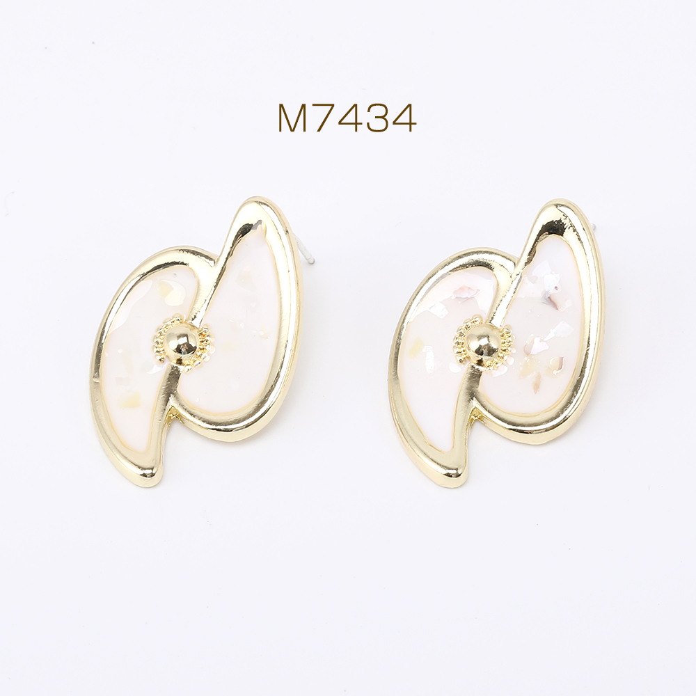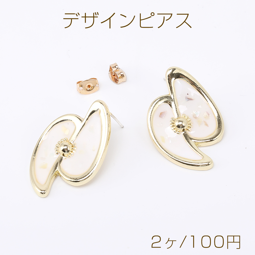 デザインピアス 不規則型 樹脂貼り シェルパウダー入り 20×30mm ゴールド(2ヶ)