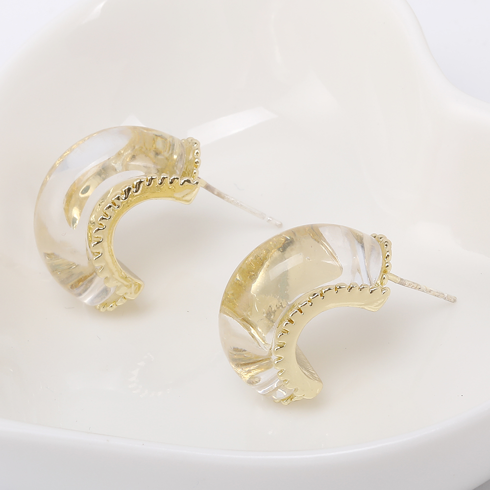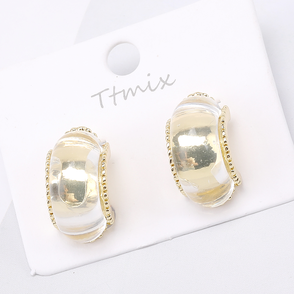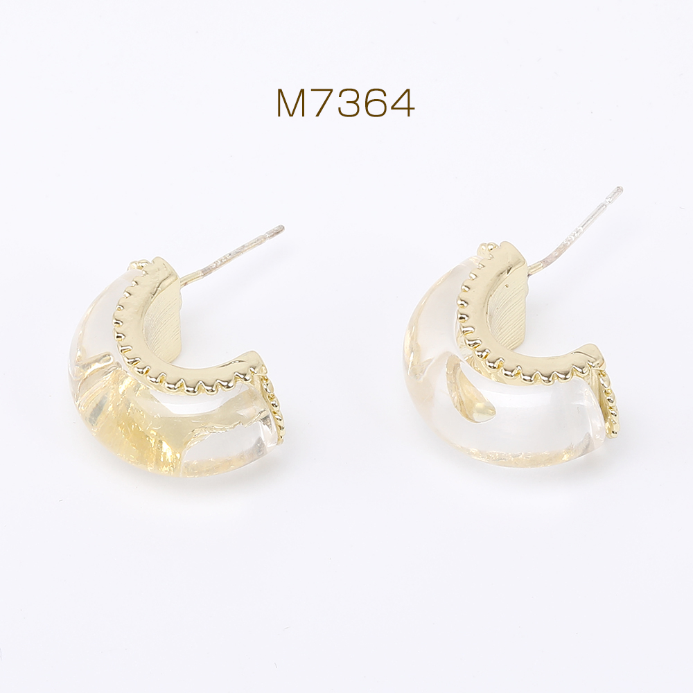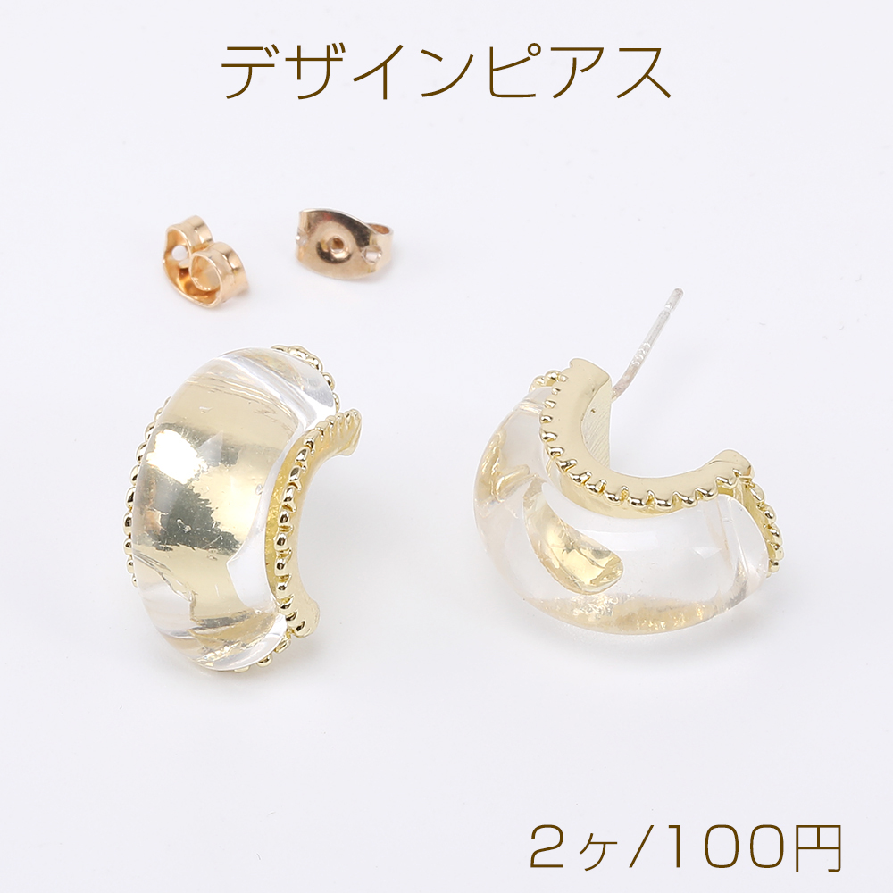デザインピアス フープ 樹脂貼り 11×20mm ゴールド/クリア(2ヶ)