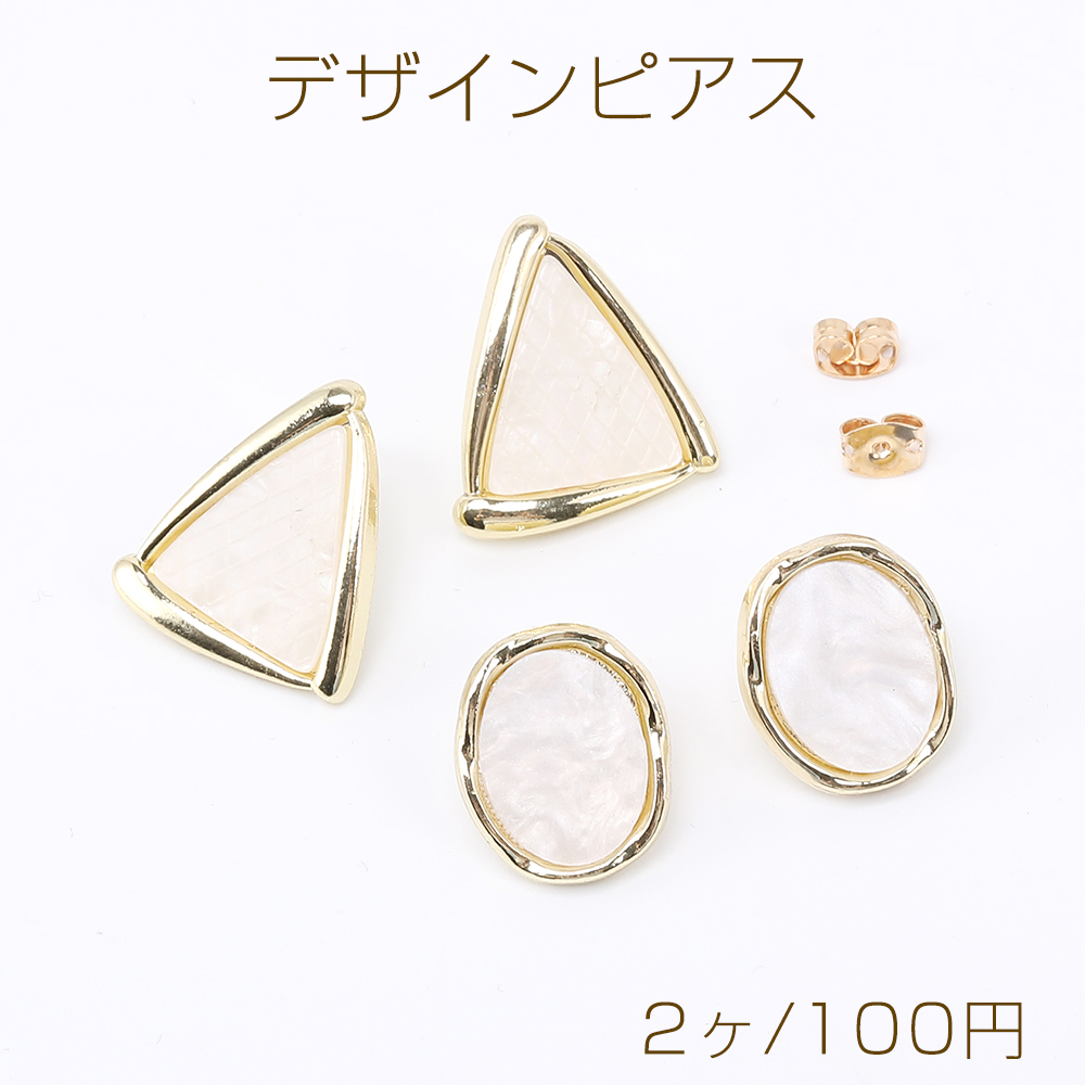 デザインピアス 三角形/オーバル アクリル貼り ゴールド(2ヶ)