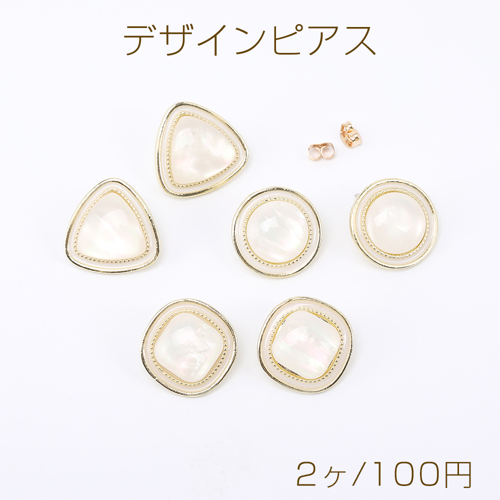 デザインピアス 三角形/ラウンド/スクエア型 樹脂貼り ゴールド(2ヶ)