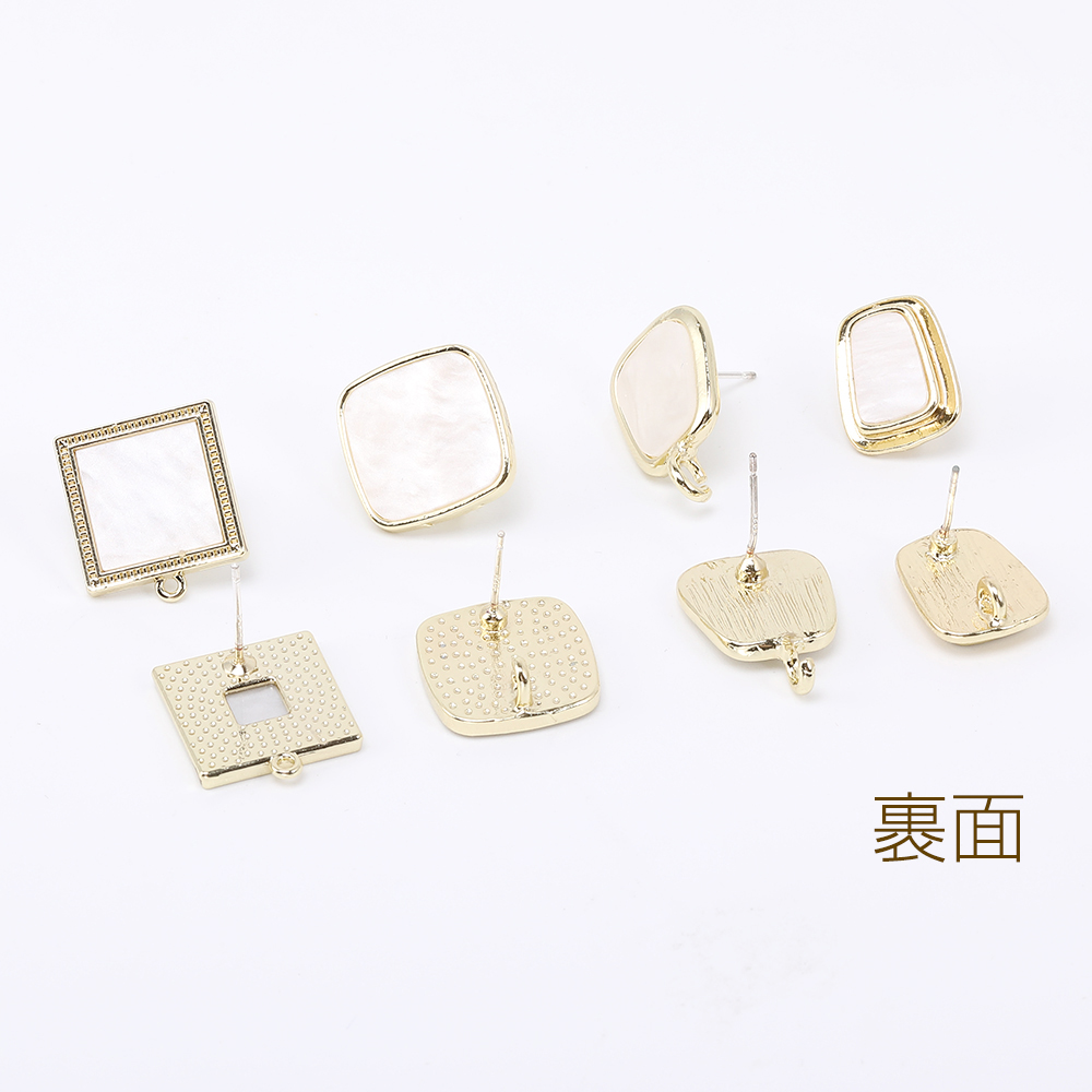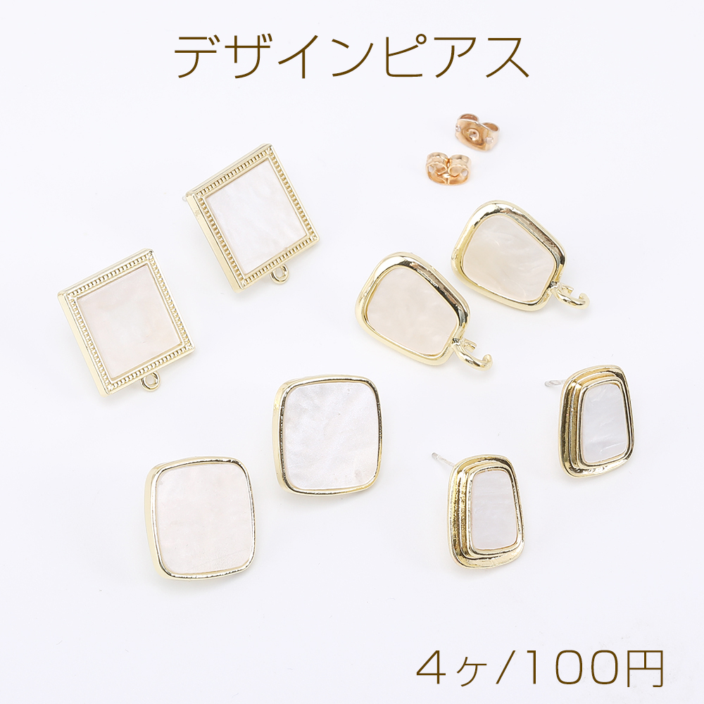 デザインピアス スクエア型/台形型 1カン アクリル貼り ゴールド(4ヶ)