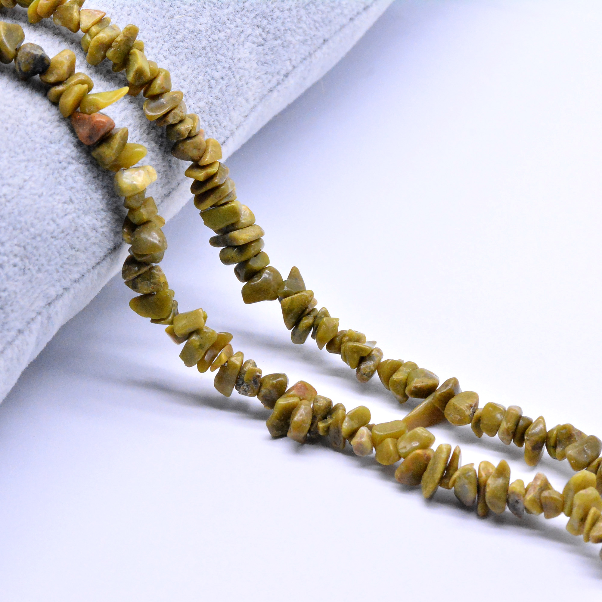 天然石ビーズチップビーズストランド不規則76cmアーミーグリーン【10連】