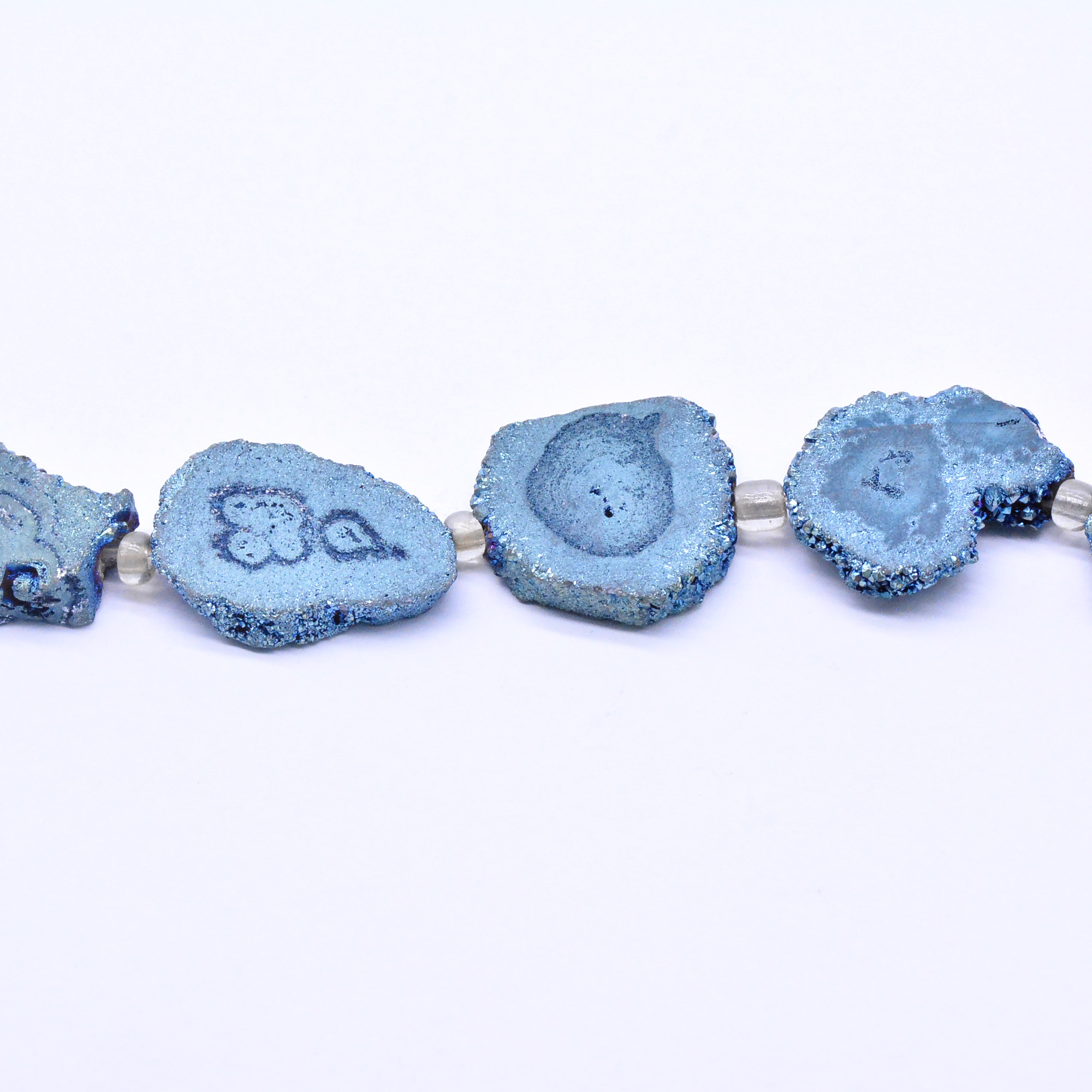 天然石ビーズスライスアゲートビーズ5-25mmライトブルー【1連(約10ヶ)】