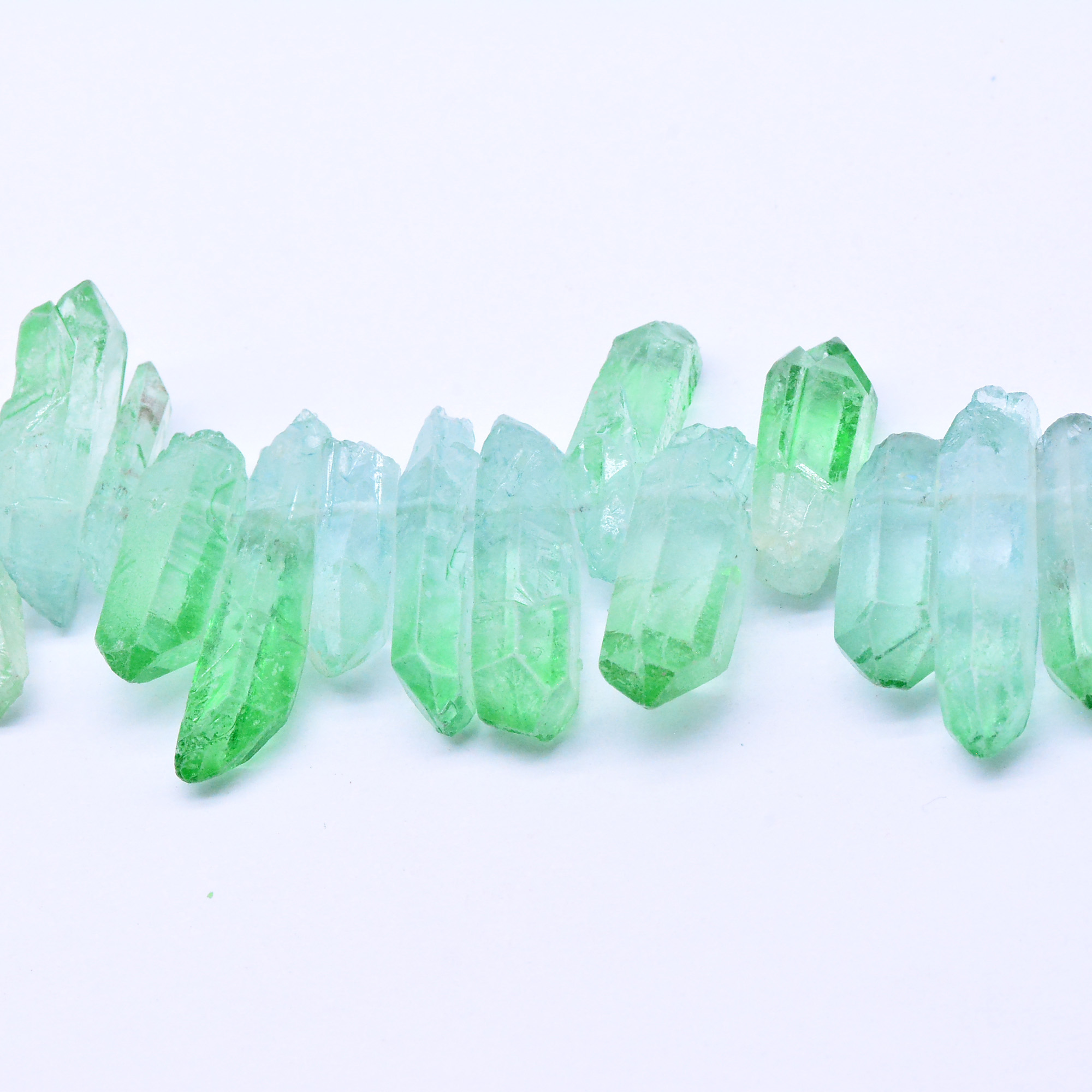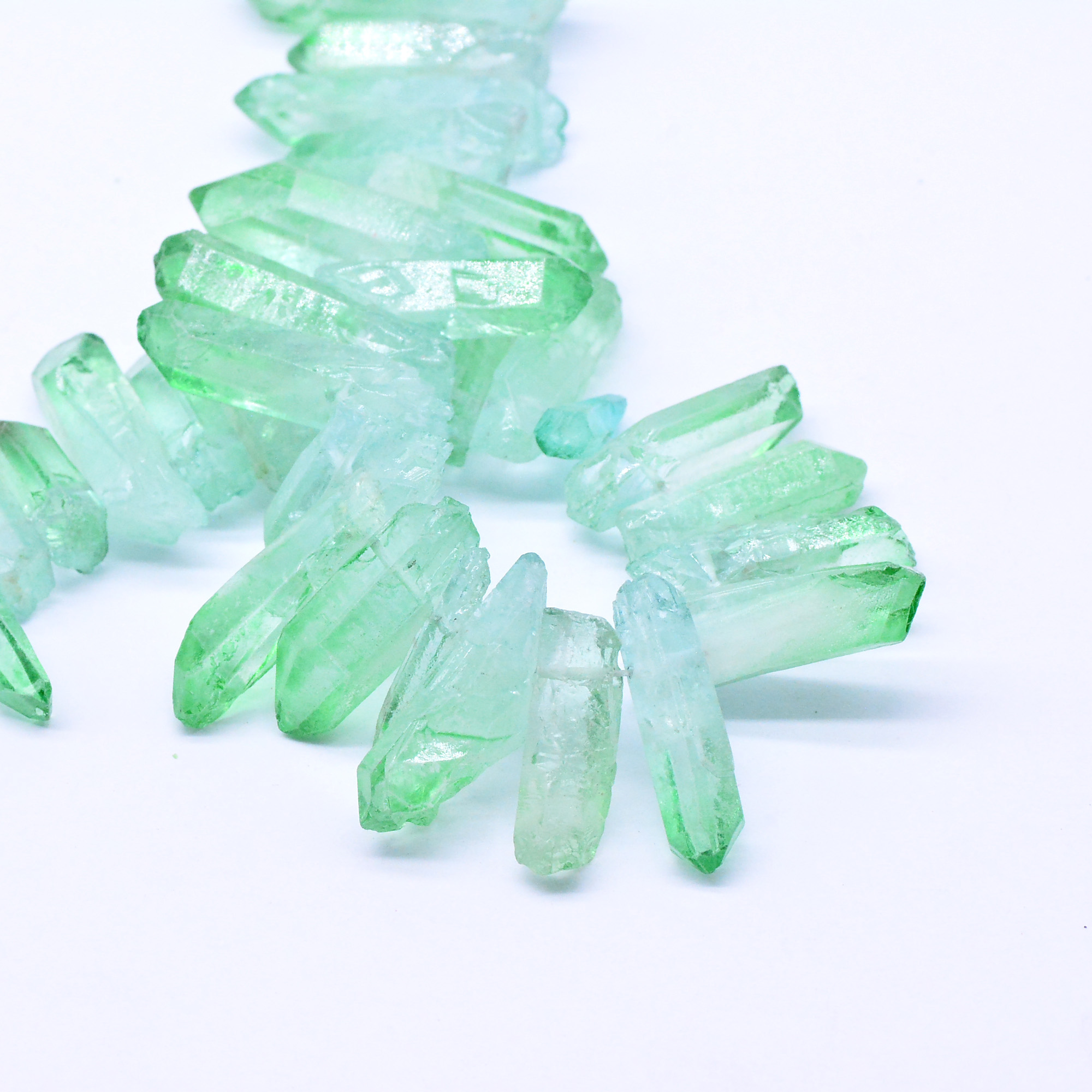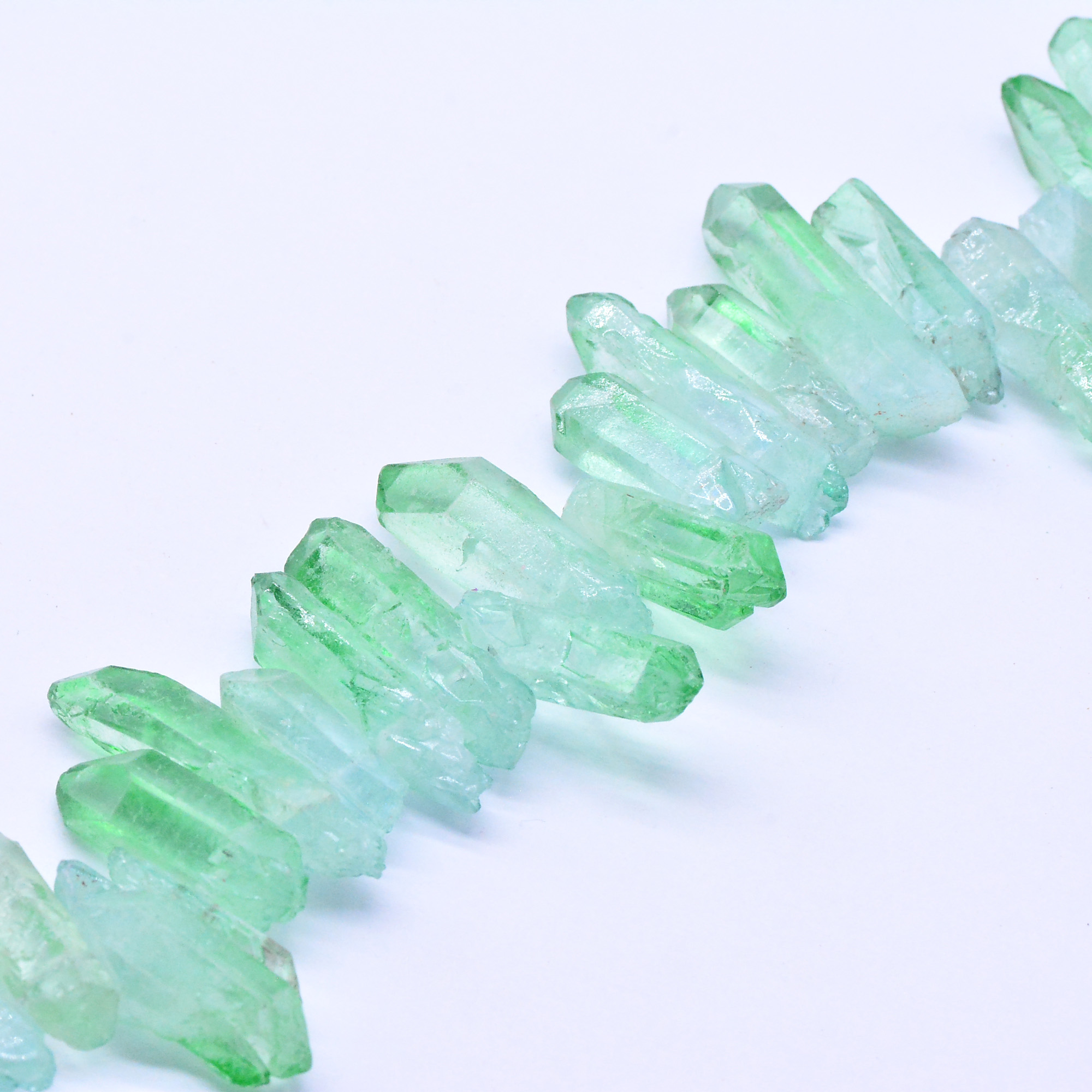 天然石ビーズクオーツクリスタルビーズ水晶氷柱カット38cmグリーン【1連(約59ヶ)】