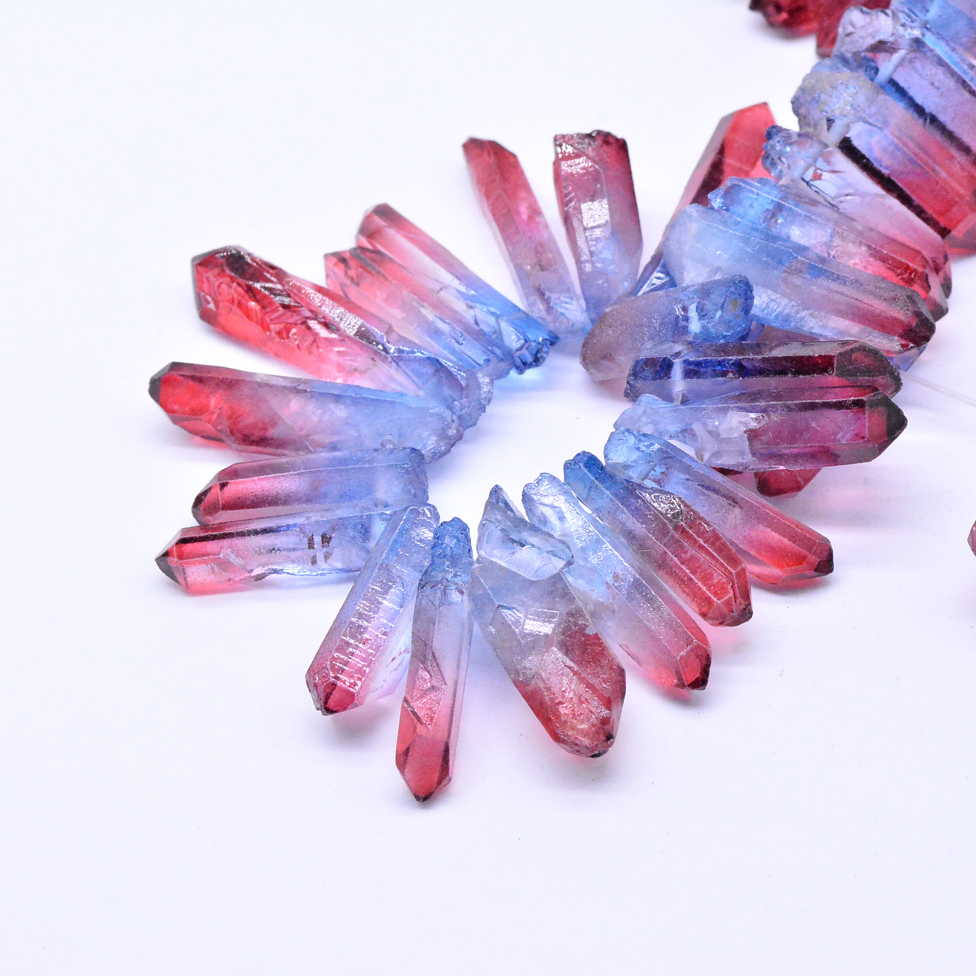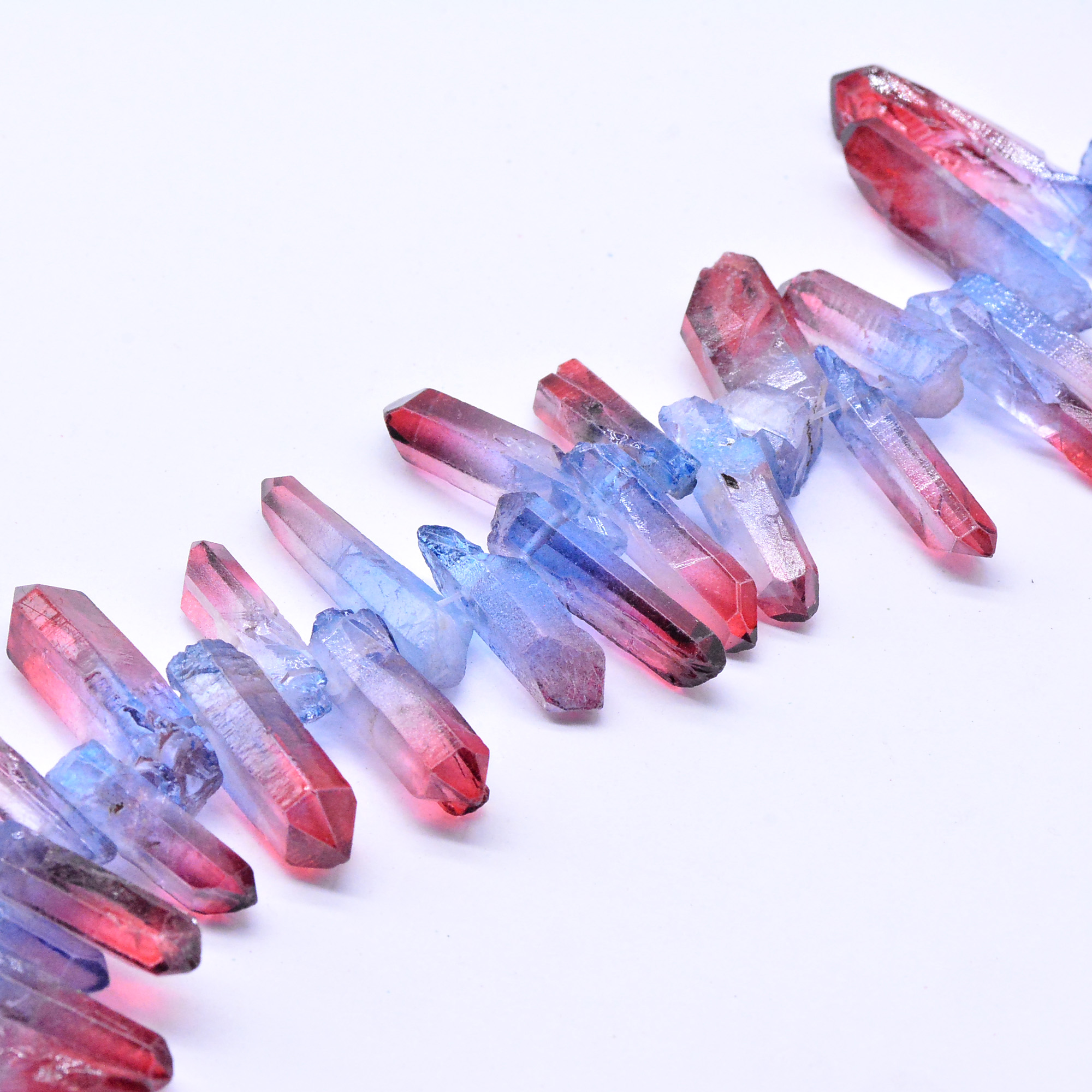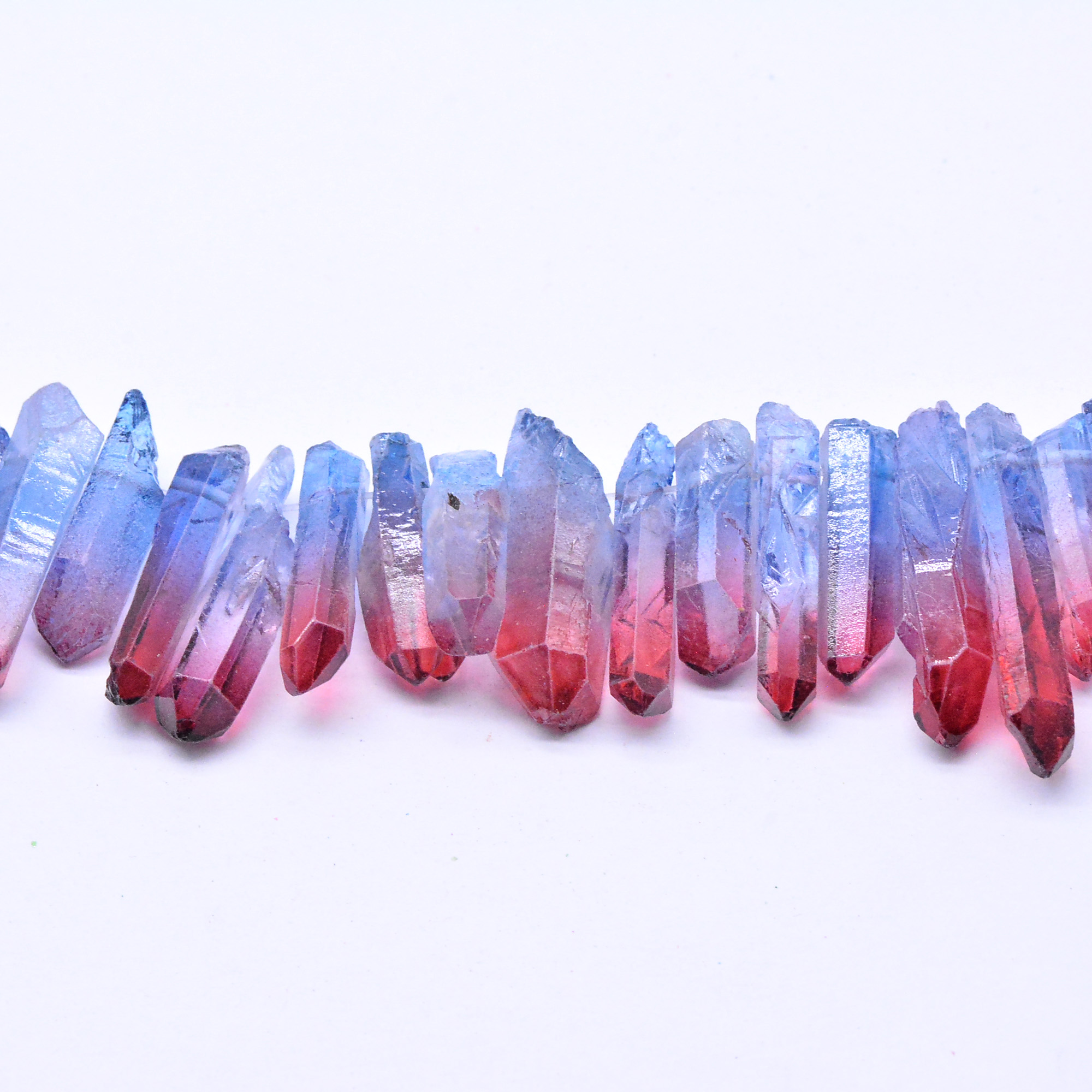 天然石ビーズクオーツクリスタルビーズ水晶氷柱カット37cmブルー/レッド【1連(約64ヶ)】
