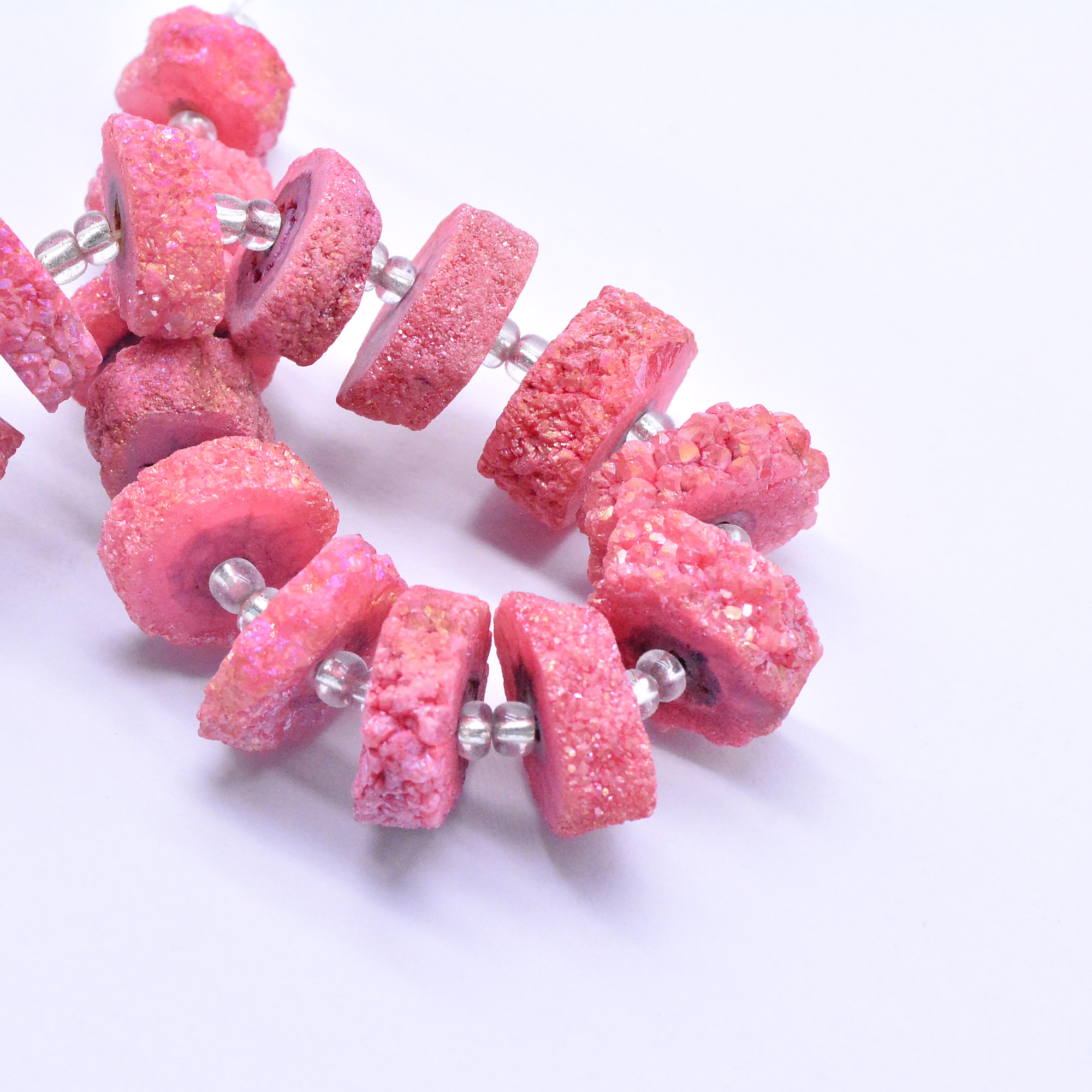 天然石ビーズスライスアゲートビーズスイカ赤【1連(約17ヶ)】