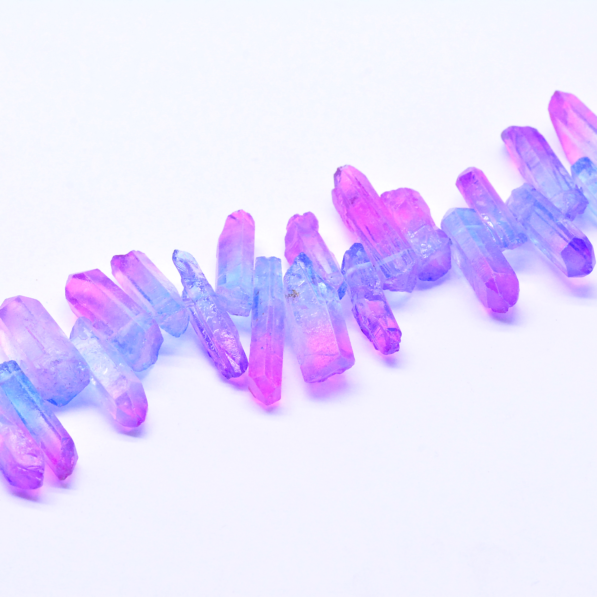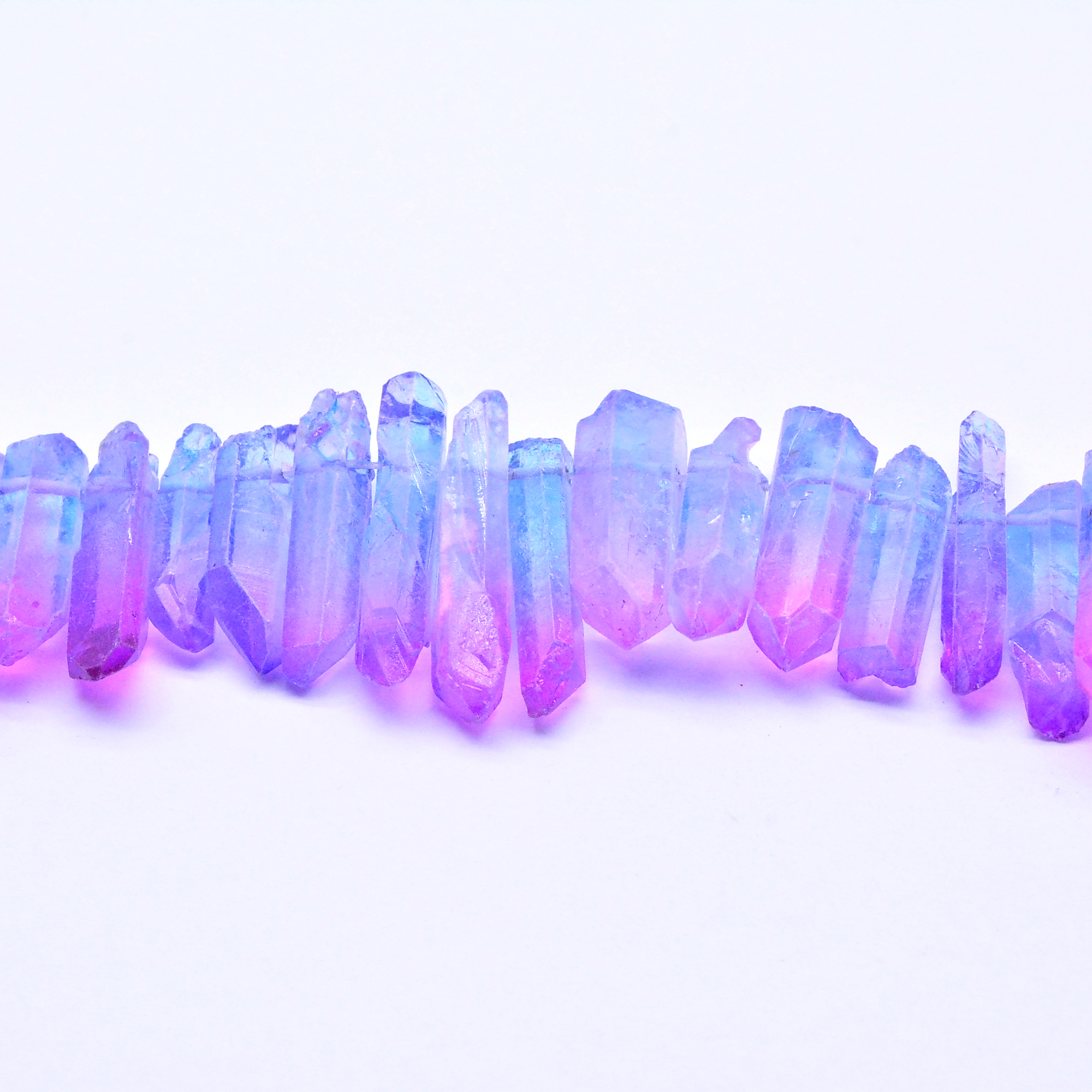 天然石ビーズクオーツクリスタルビーズ尖ったペンダント多面カット38cmパープル/ブルー【1連(約64ヶ)】
