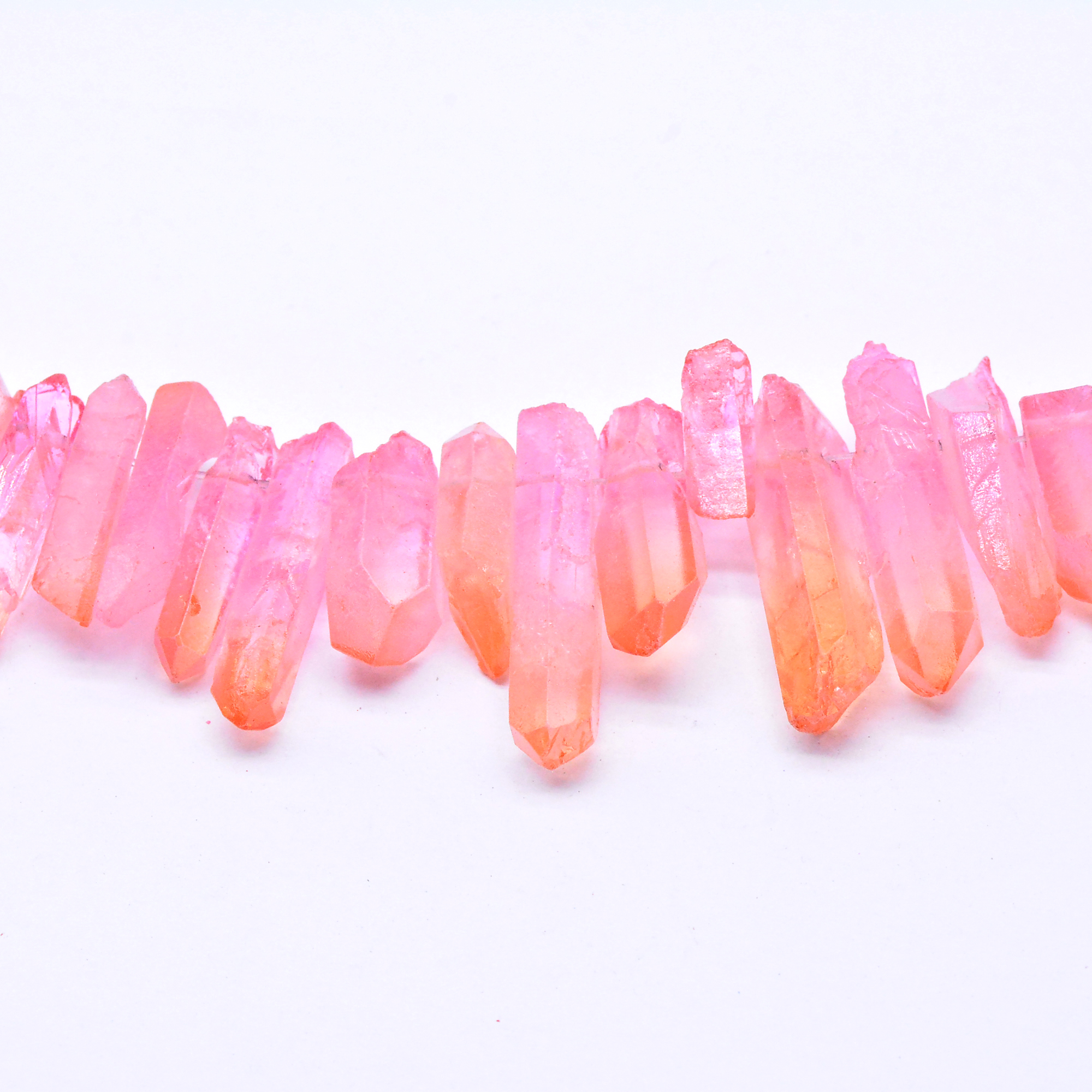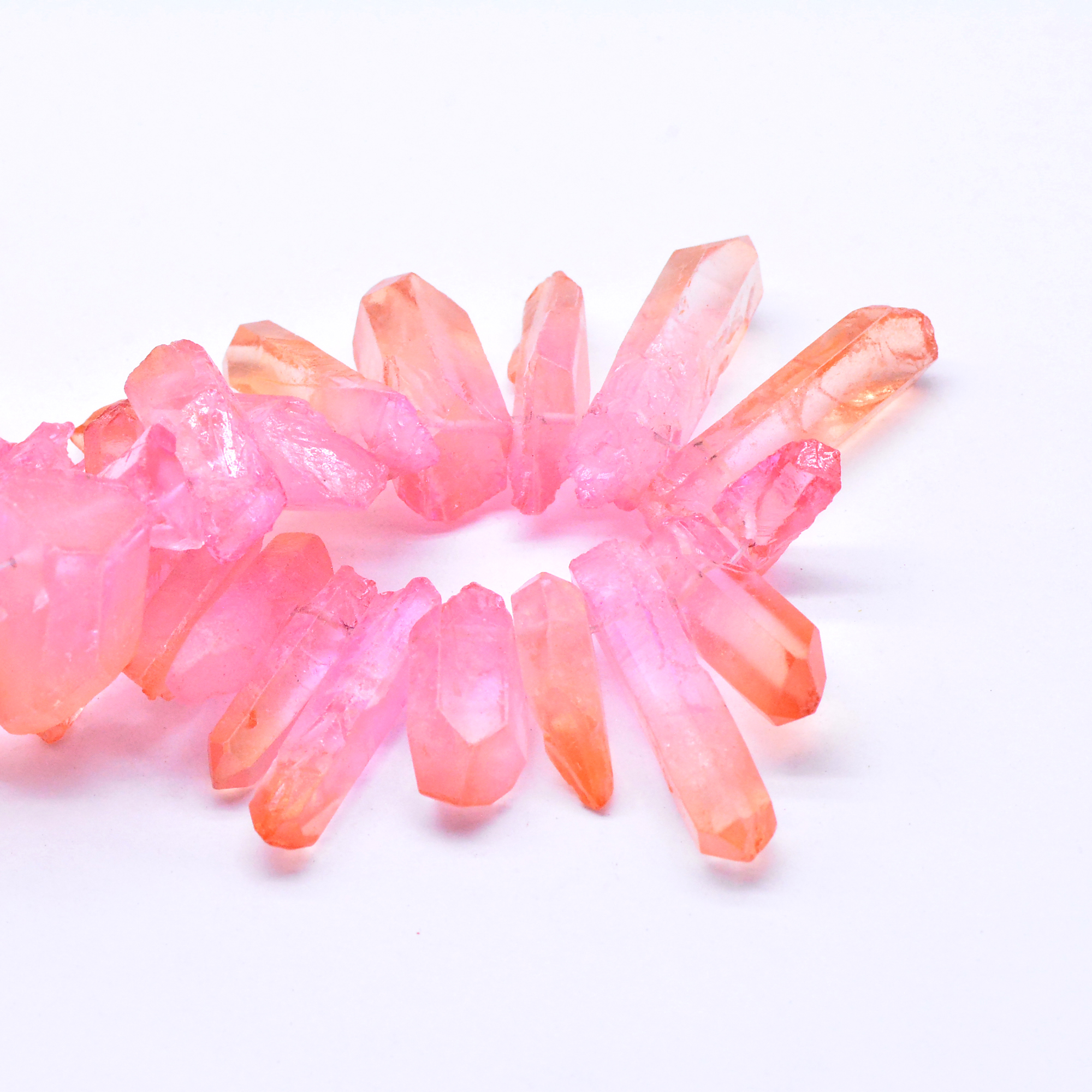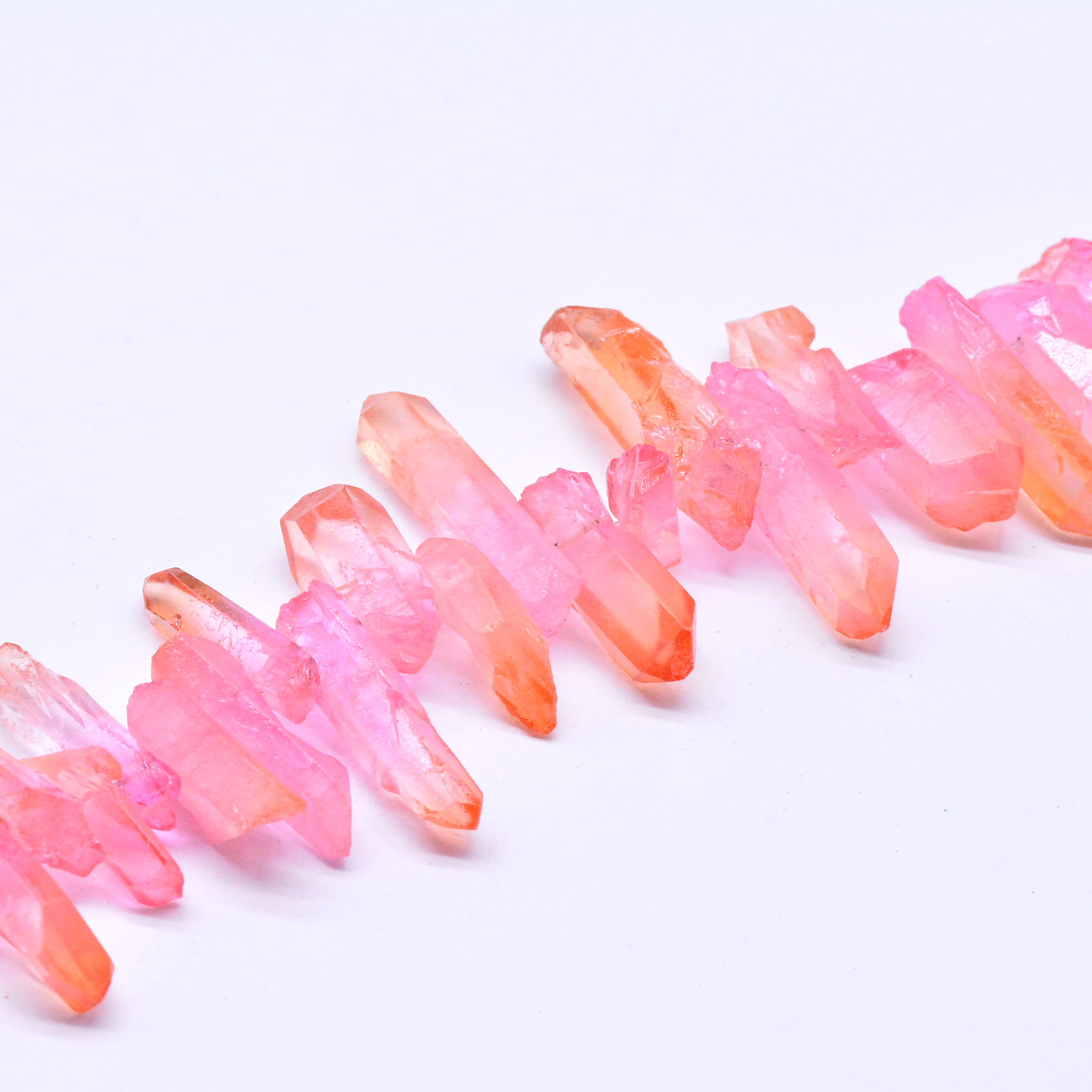 天然石ビーズクオーツクリスタルビーズ尖ったペンダント多面カット37cmピンク/オレンジ【1連(約55ヶ)】