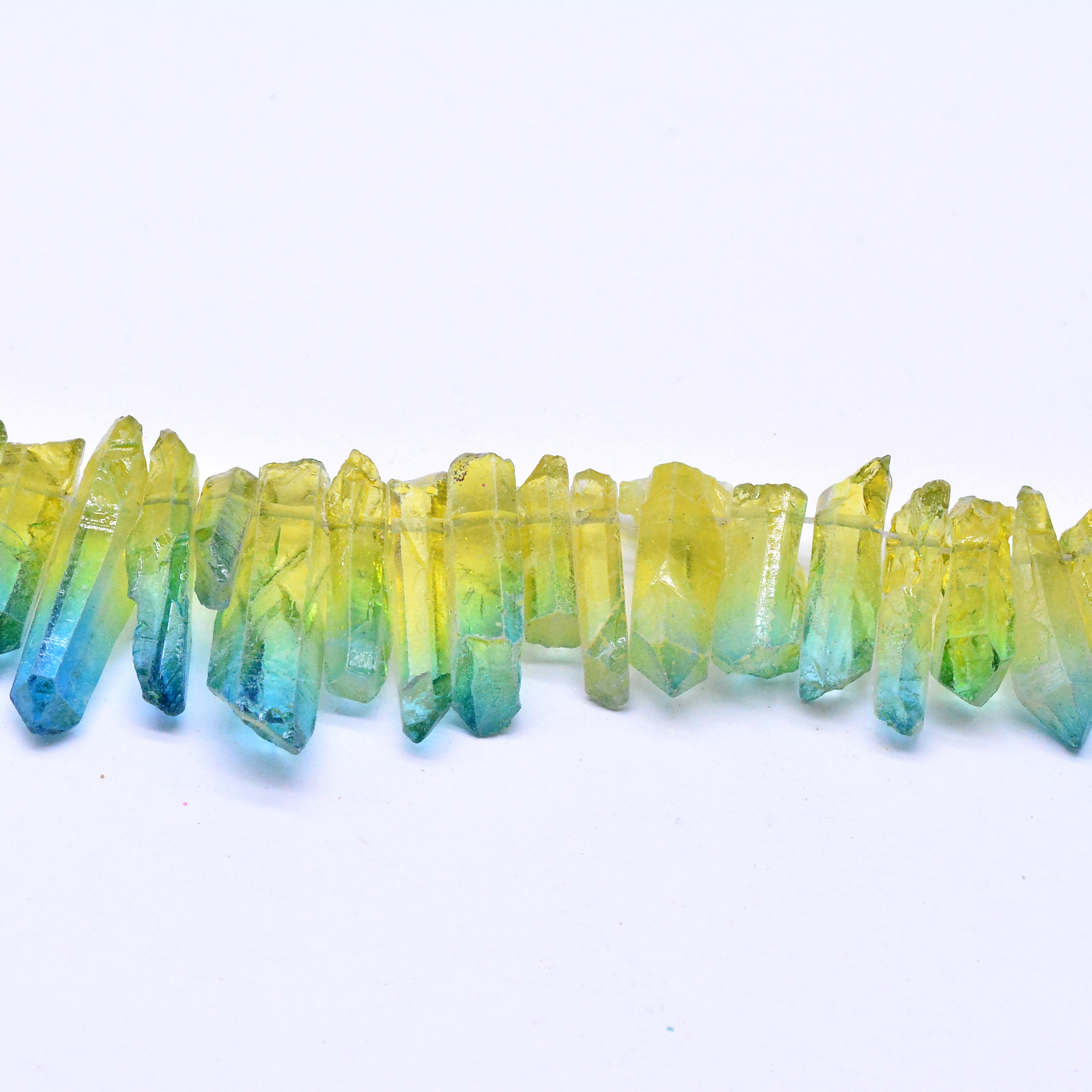 天然石ビーズクオーツクリスタルビーズ尖ったペンダント多面カット38cmライトブルー/イエロー【1連(約67ヶ)】