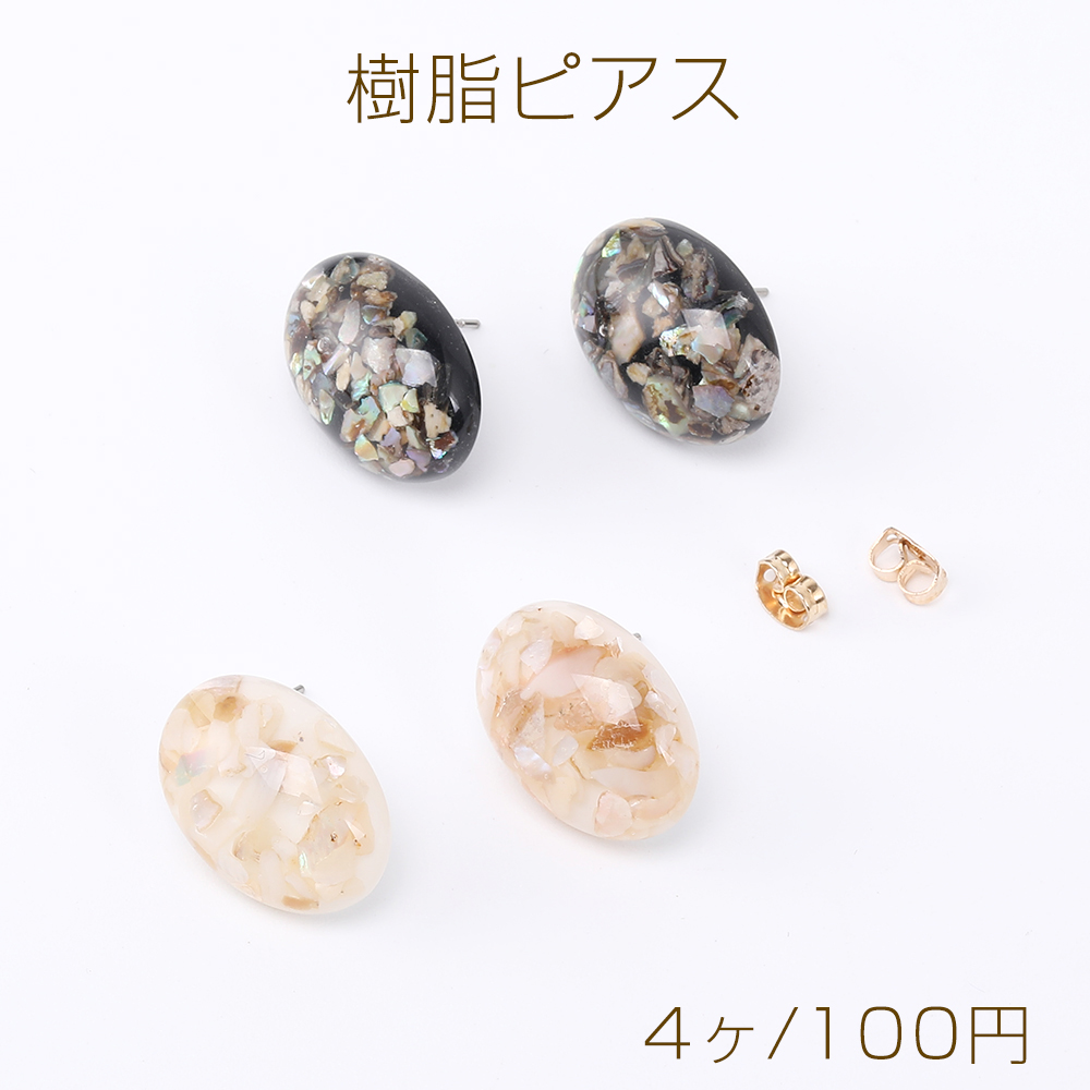 高品質樹脂ピアス オーバル シェルパウダー入り 15×20mm(4ヶ)
