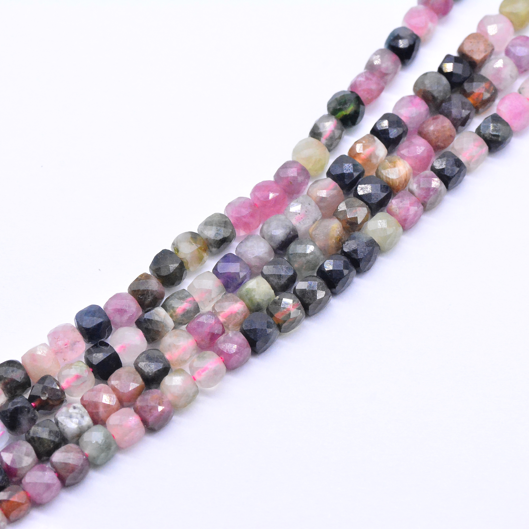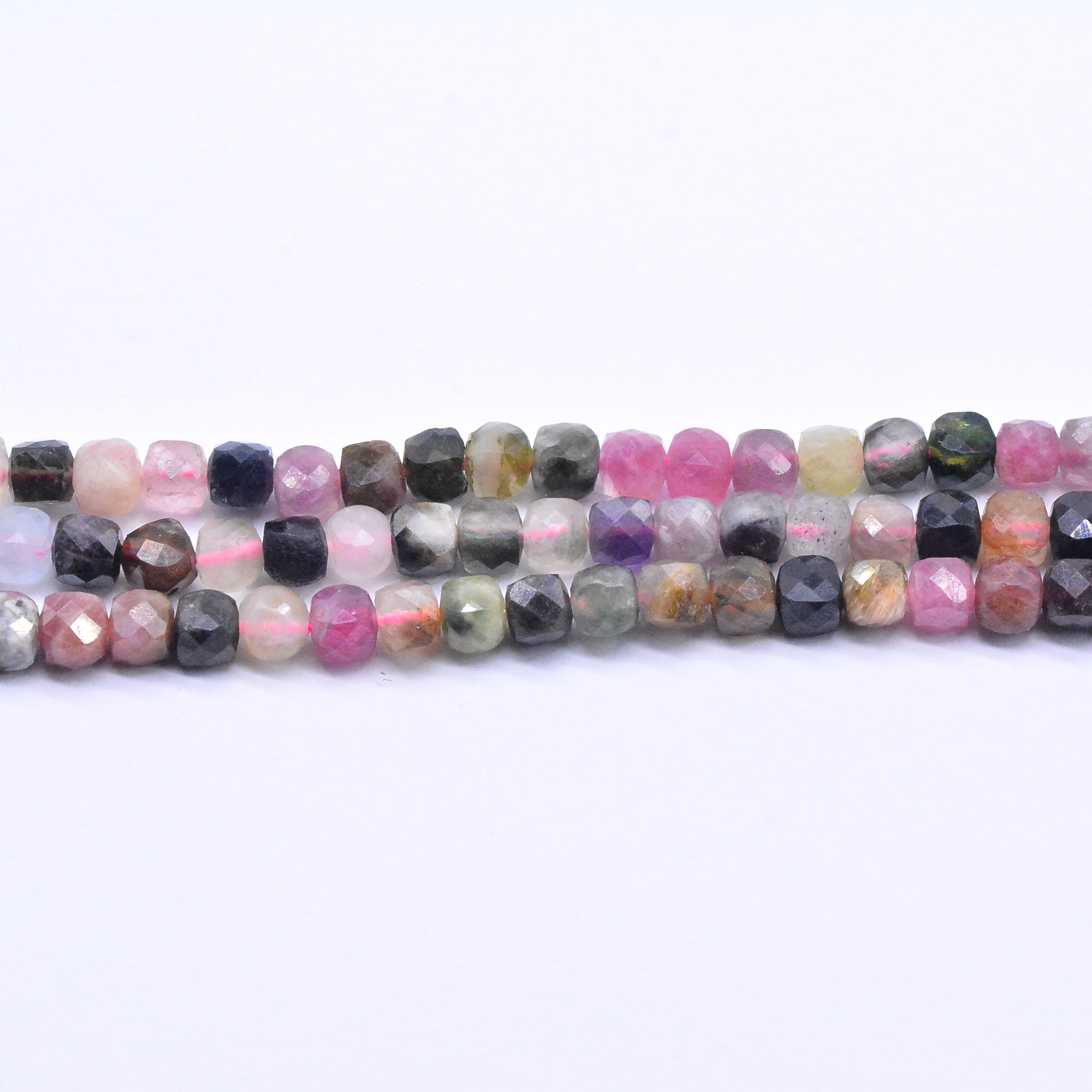 天然石ビーズカット正方形 カラーミックス 5×5mm【1連(約83ヶ)】