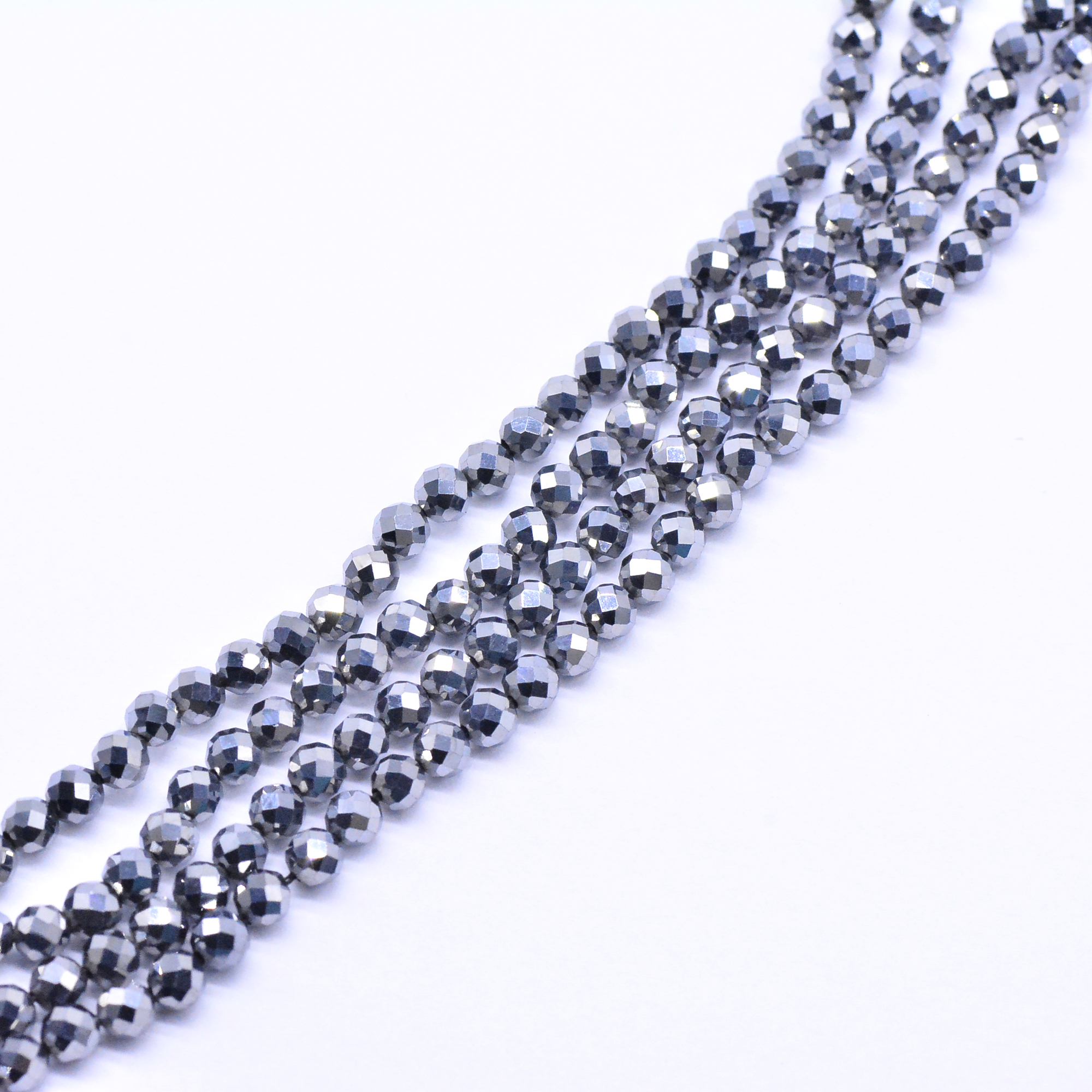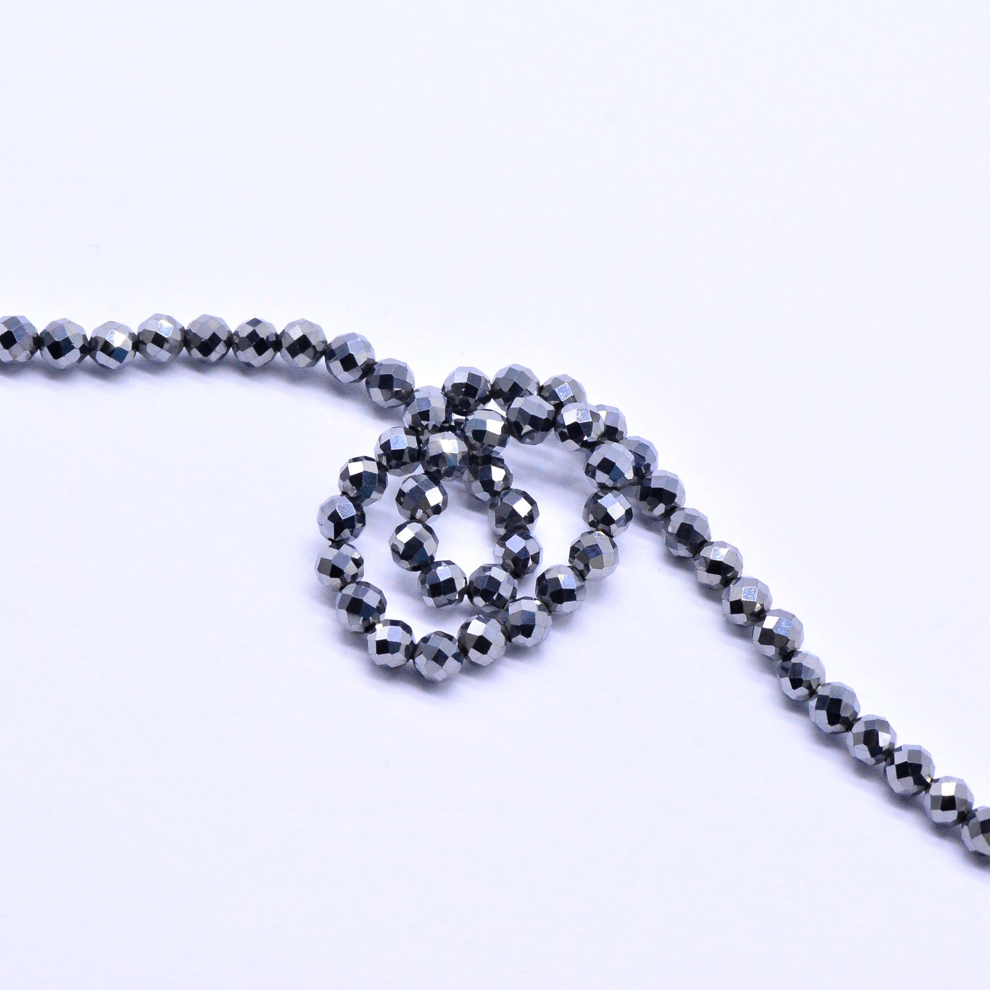 天然石ビーズカット丸型 シルバー 3.8-4.5mm【1連(約91ヶ)】