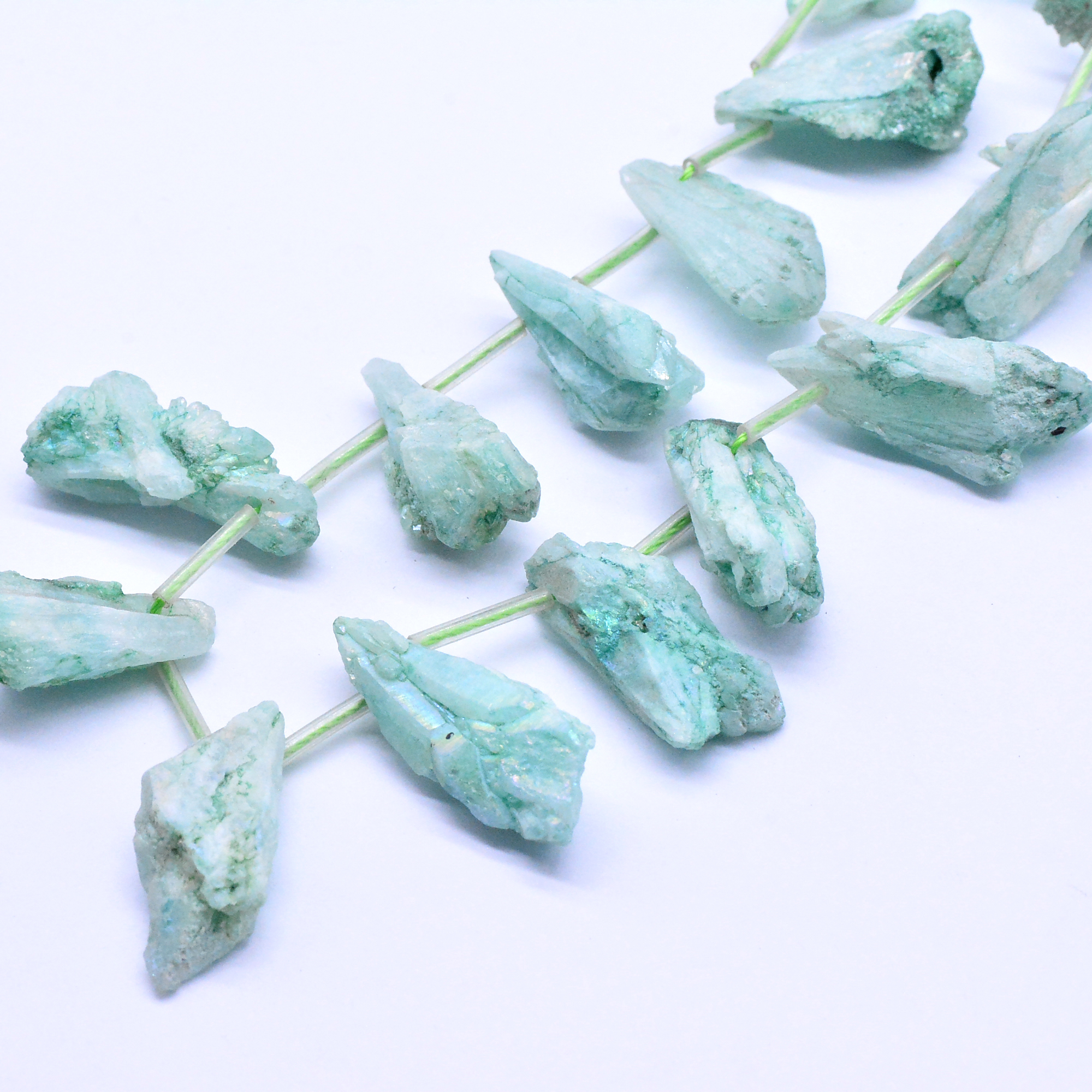 天然石ビーズ不規則 多面カット ナゲット ライトグリーン【1連(約21ヶ)】
