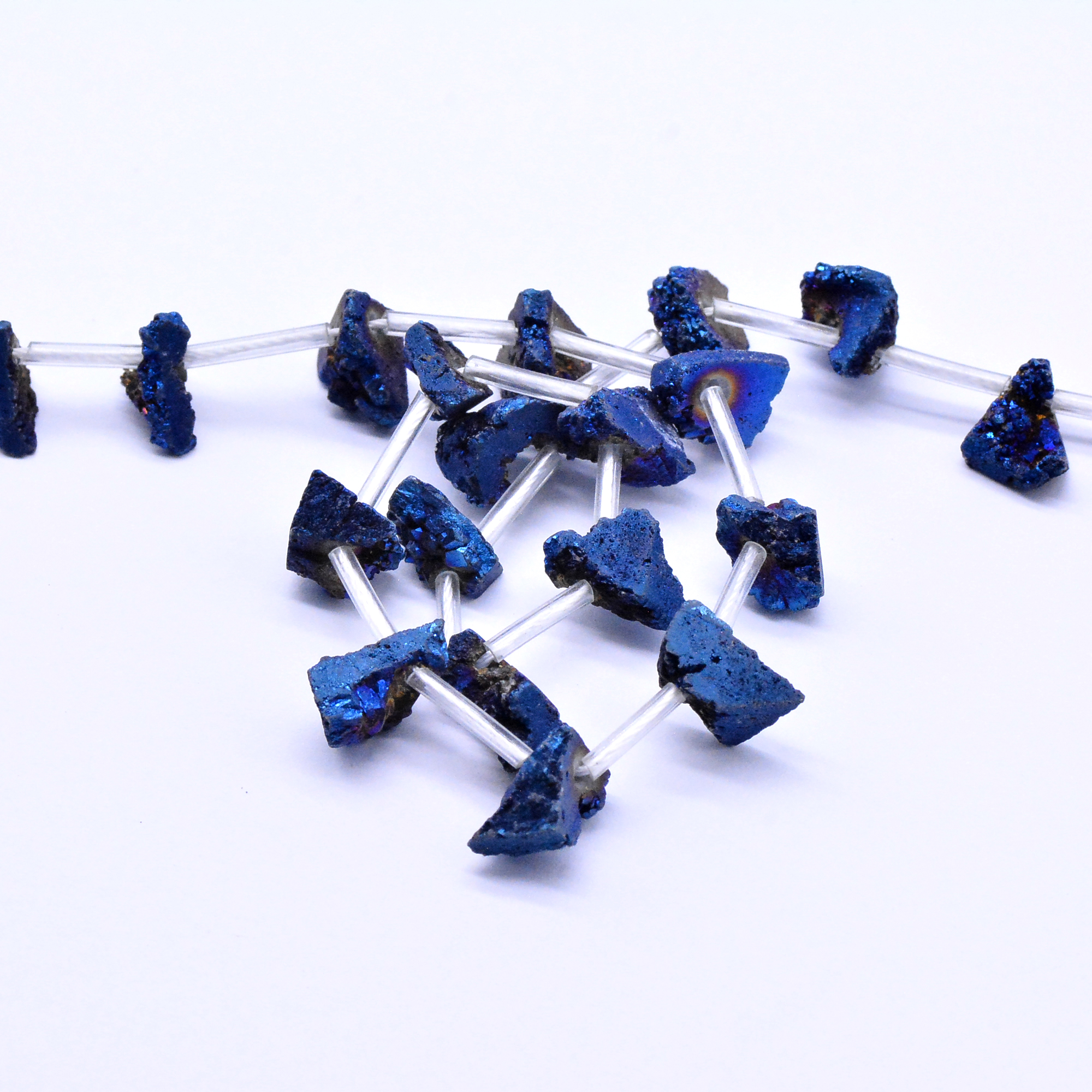 天然石ビーズスライスアゲートビーズ 不規則 ブルー【1連(約25ヶ)】