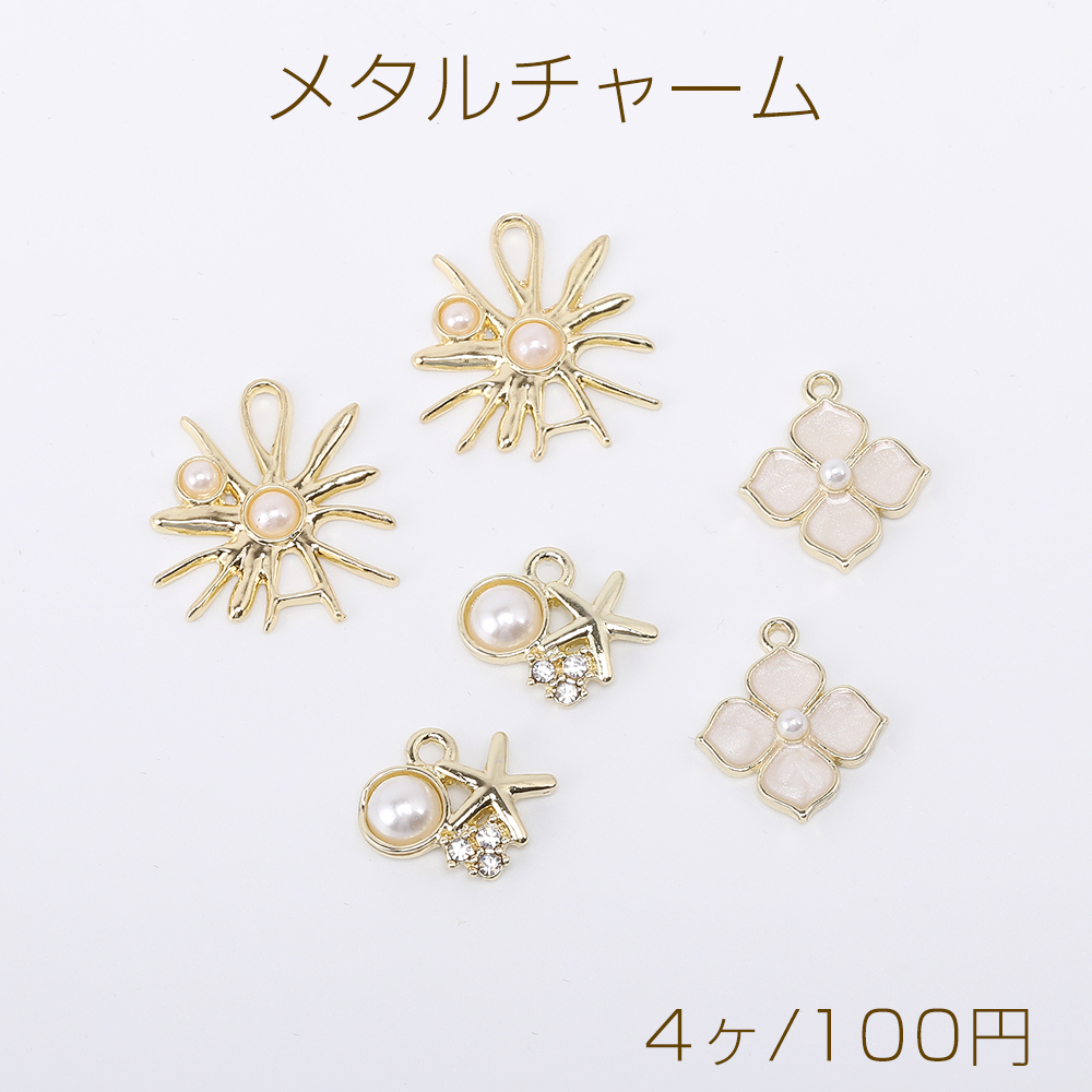 メタルチャーム パールチャーム ヒトデ/フラワーチャーム 1カン ゴールド(4ヶ)