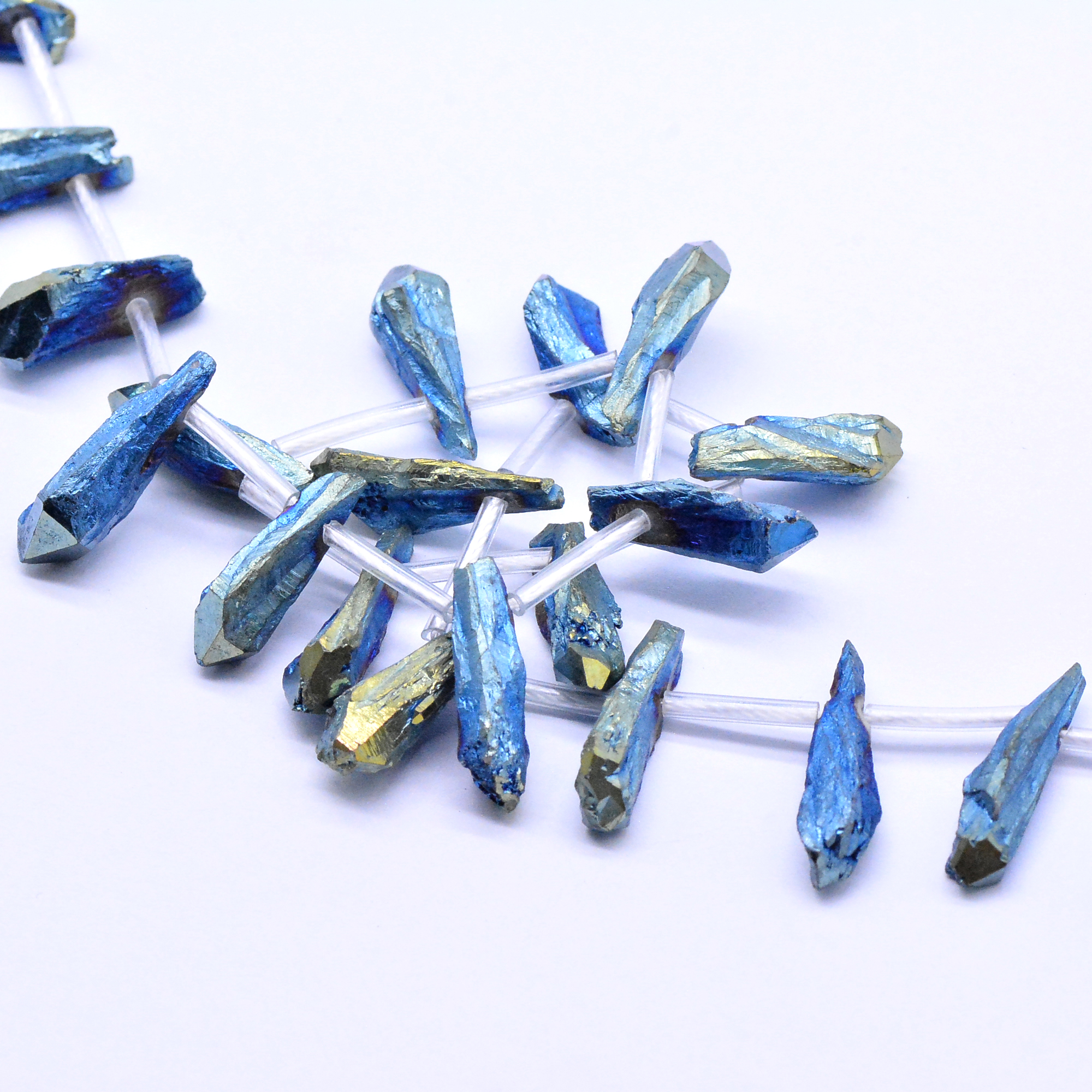 天然石ビーズ スライスアゲートビーズ 不規則 ABカラー ブルー【1連(約25ヶ)】