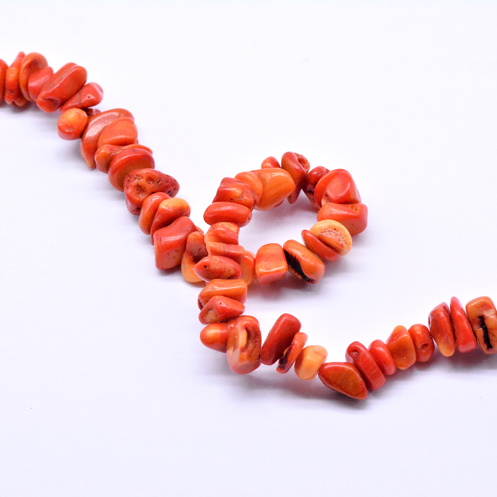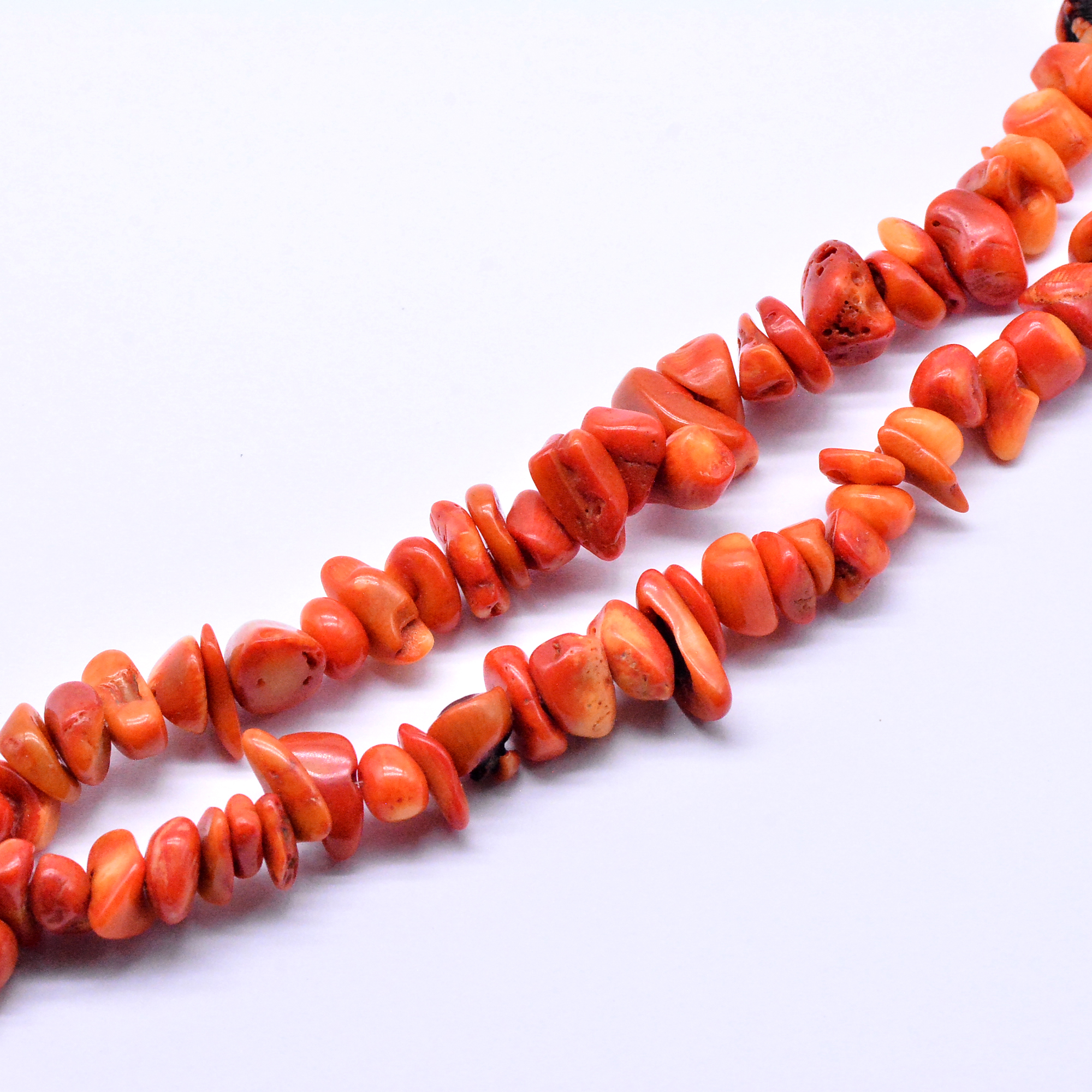 天然石ビーズ 不規則 水晶チップビーズオレンジレッド【10連(1連約85cm)】
