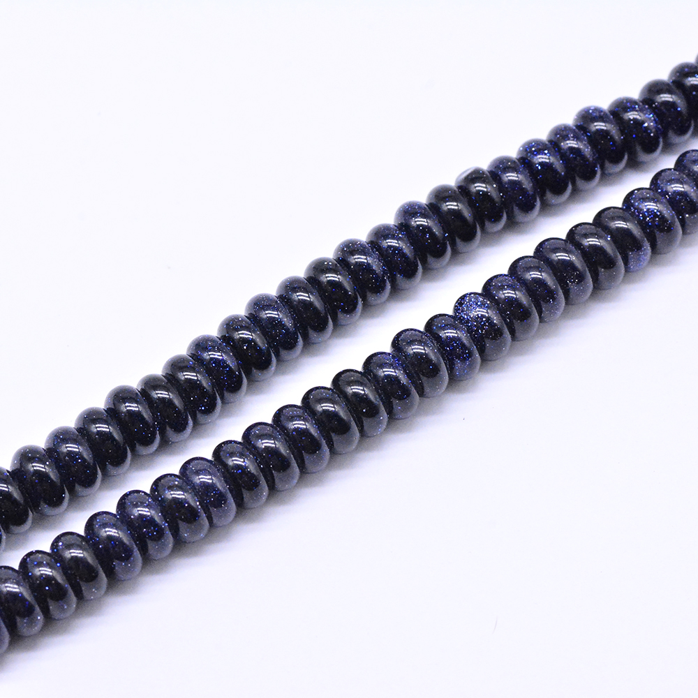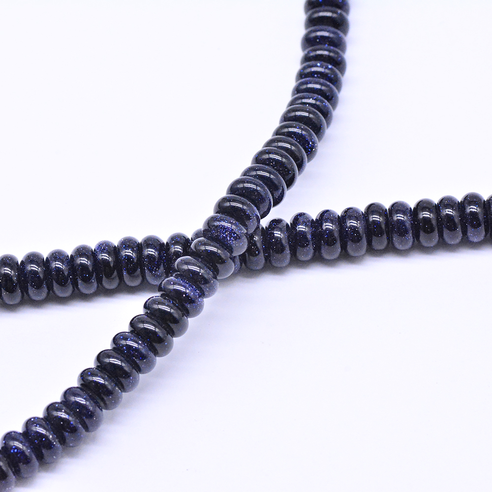 天然石ビーズ ソロバン 箔入 ネイビー 4×8mm 【1連(約103ヶ)】