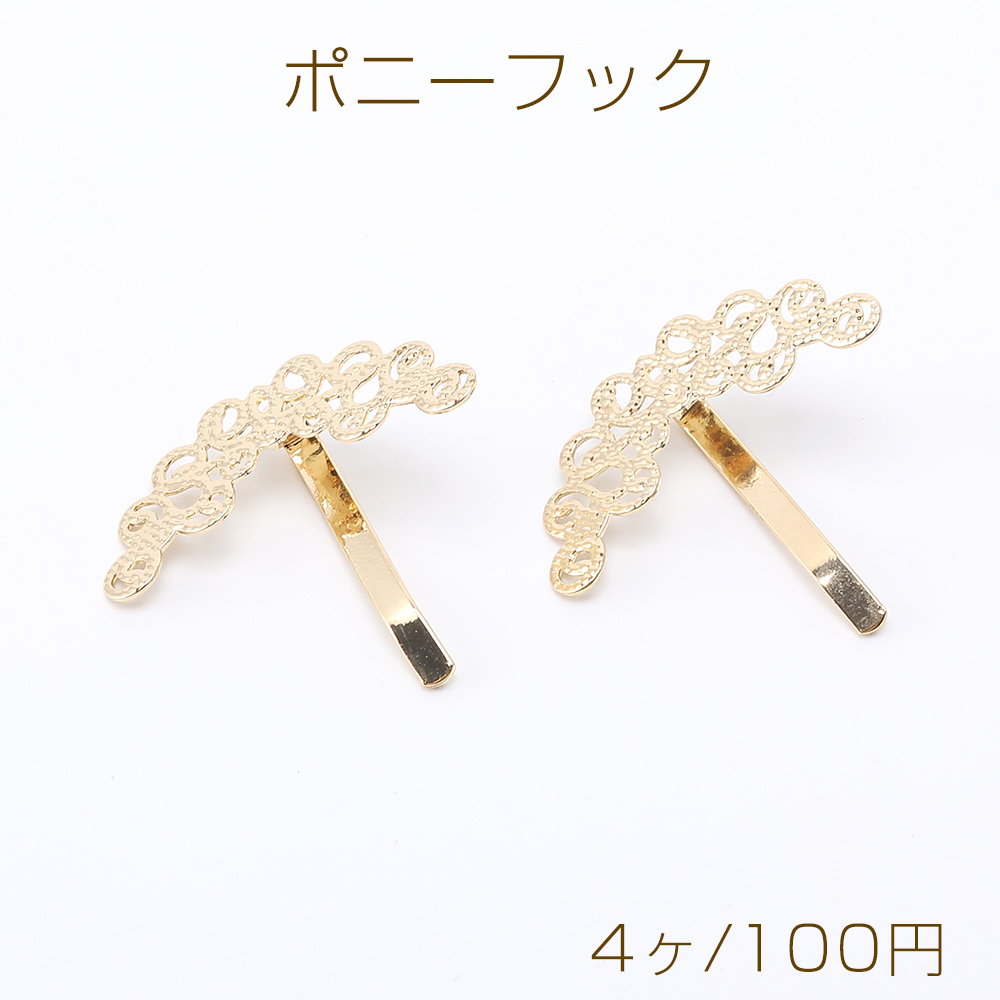 ポニーフック ヘアアクセサリー 透かしパーツ付き 14×32mm ゴールド(4ヶ)