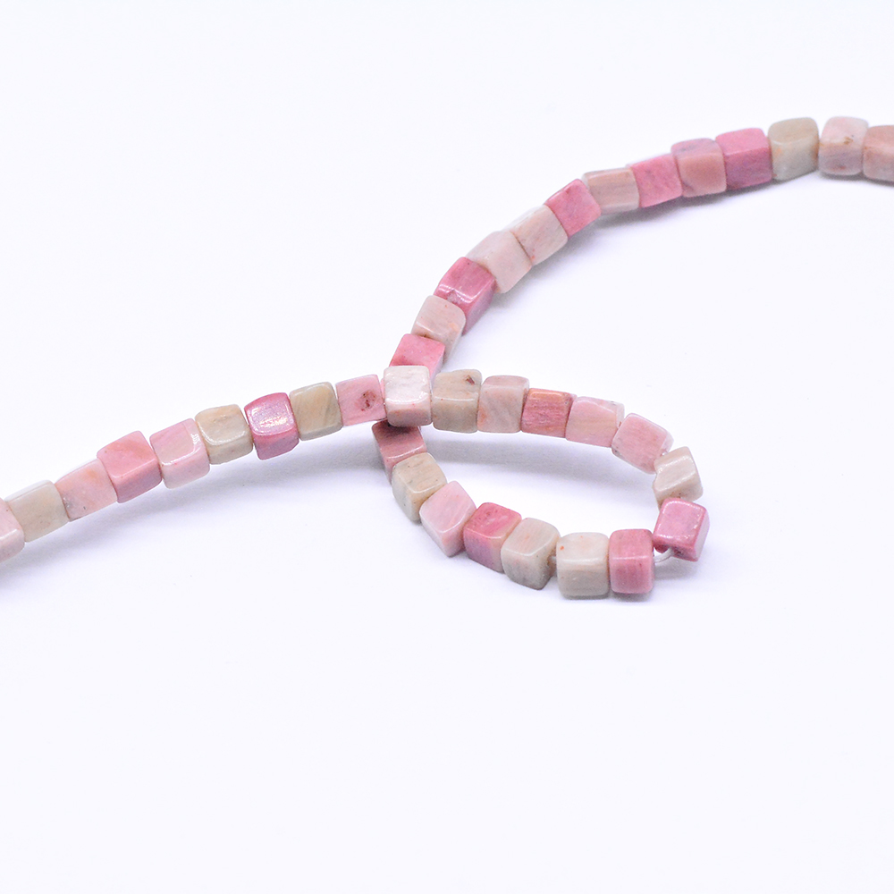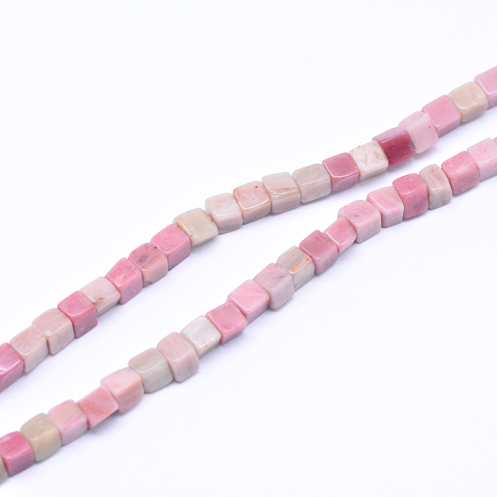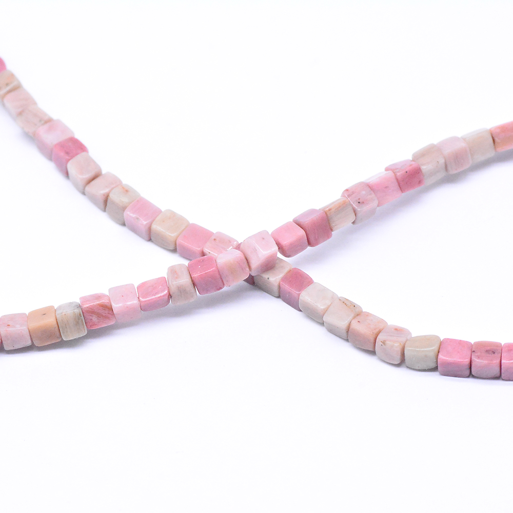 天然石ビーズ キューブ ピンク 4×4mm 【1連(約90ヶ)】